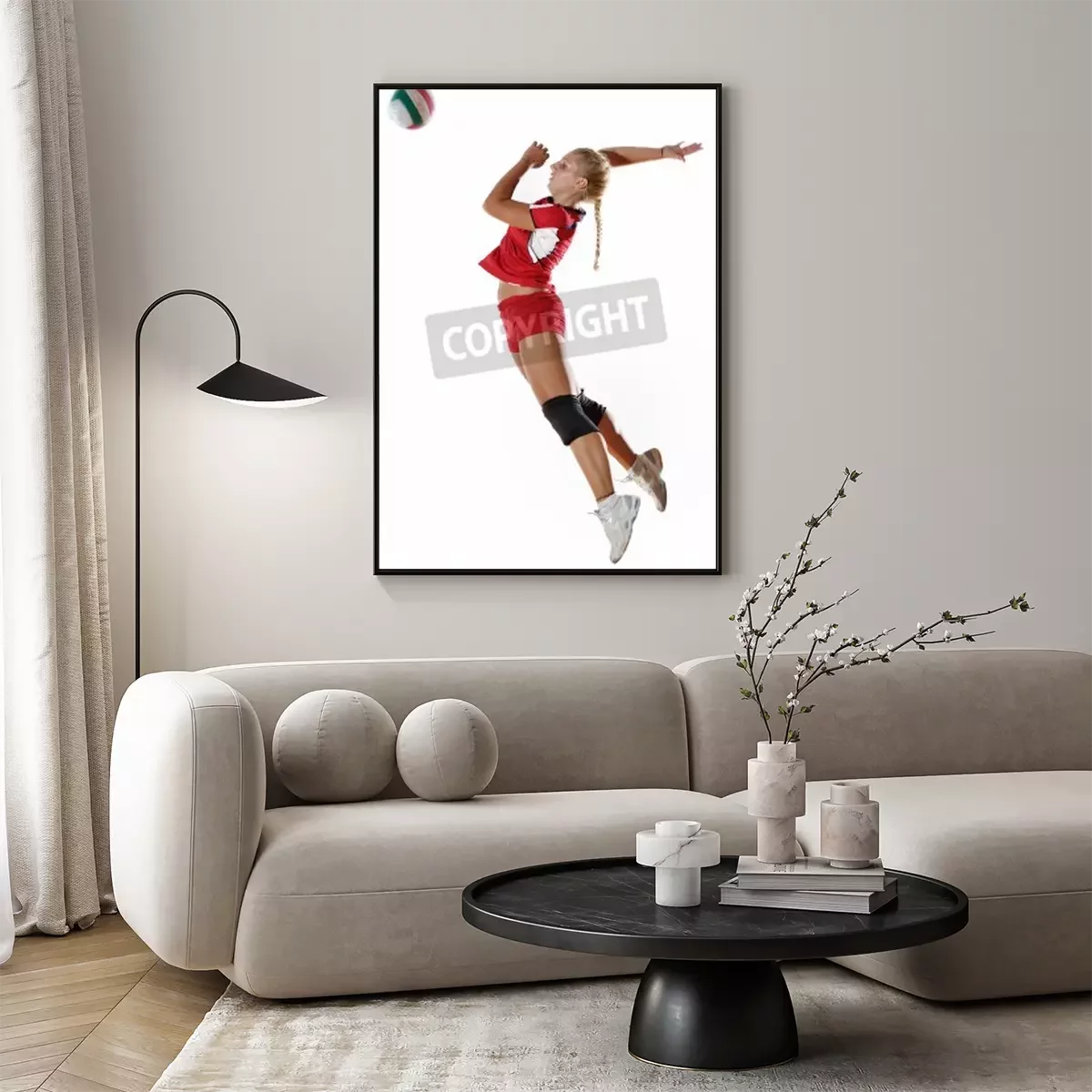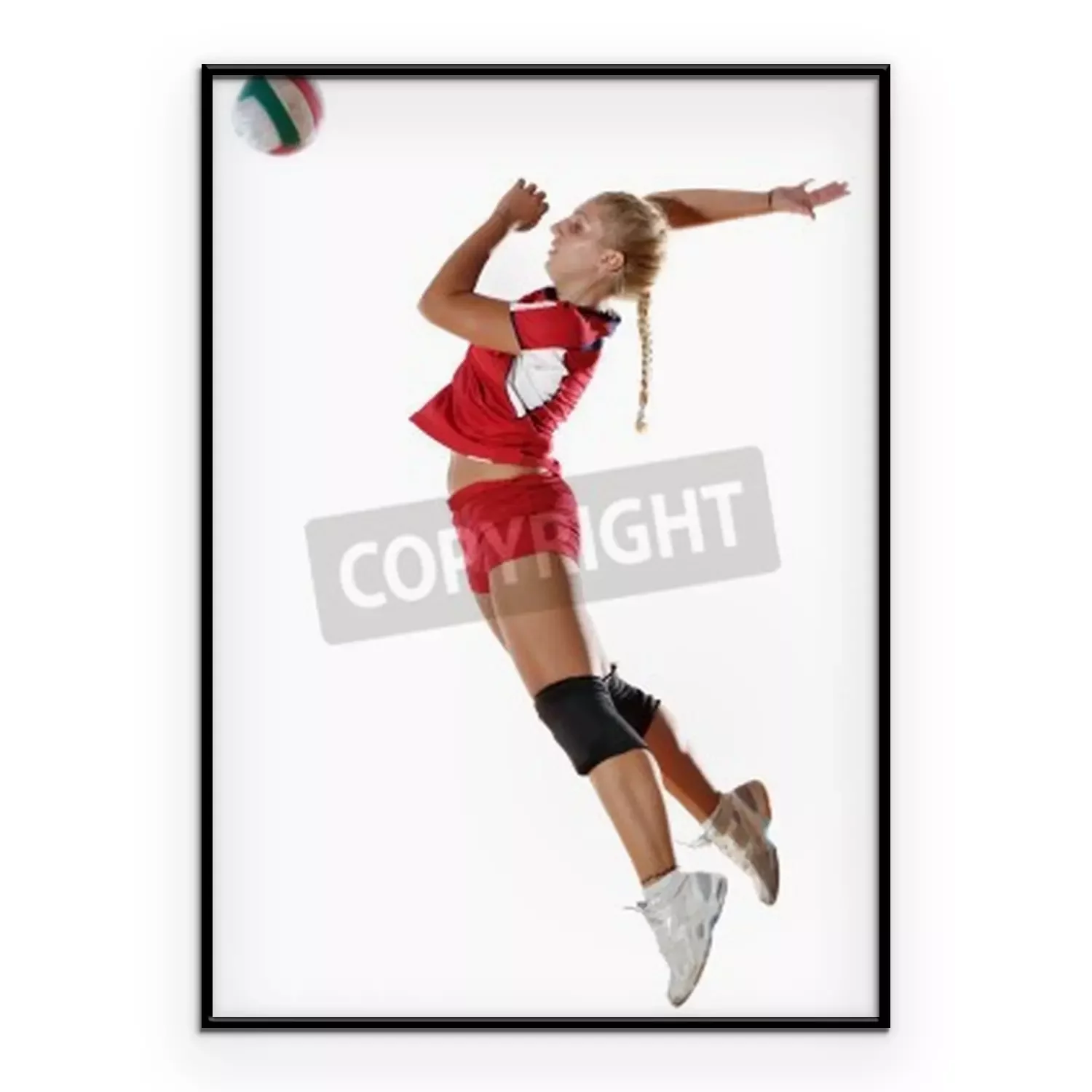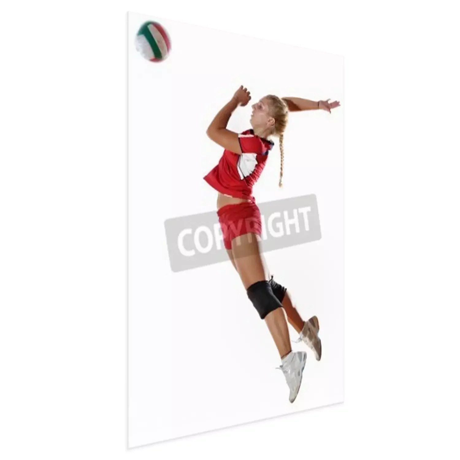 Poster: volleybal spel sport met neautoful jong meisje oslated onver witte achtergrond