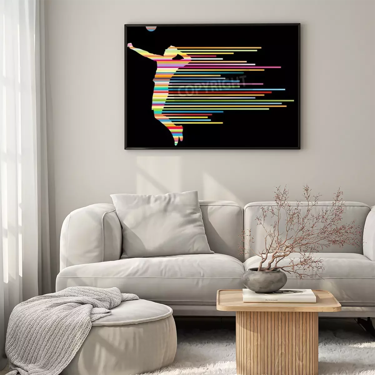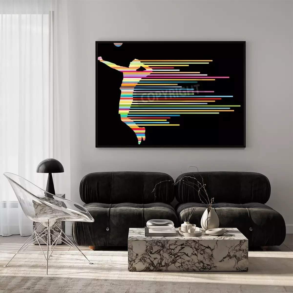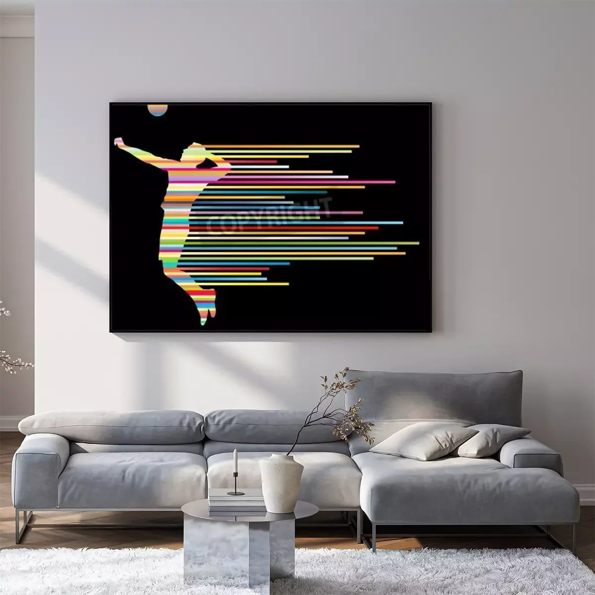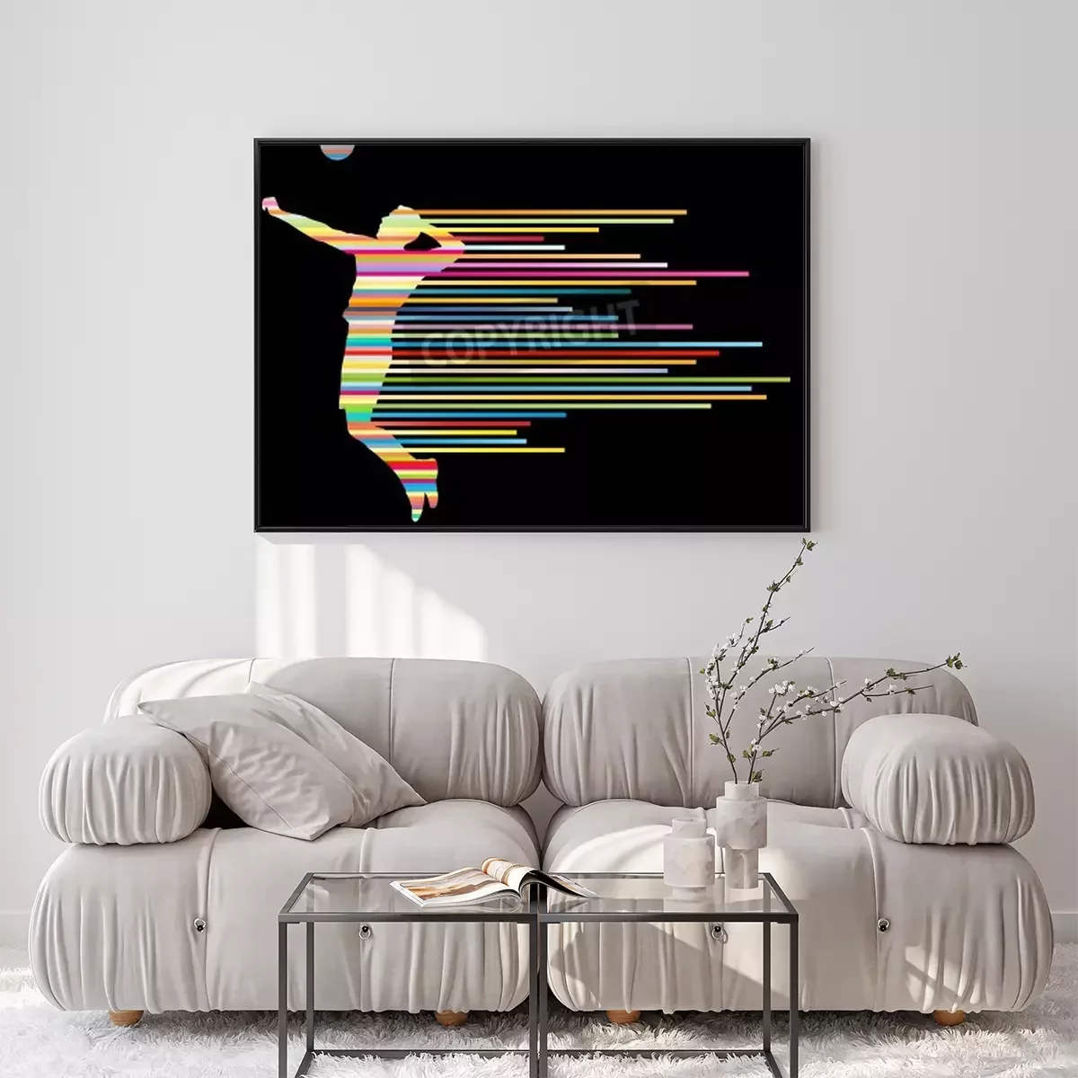 Poster: Volleybal speler vector silhouet achtergrond, concept, gemaakt van strepen