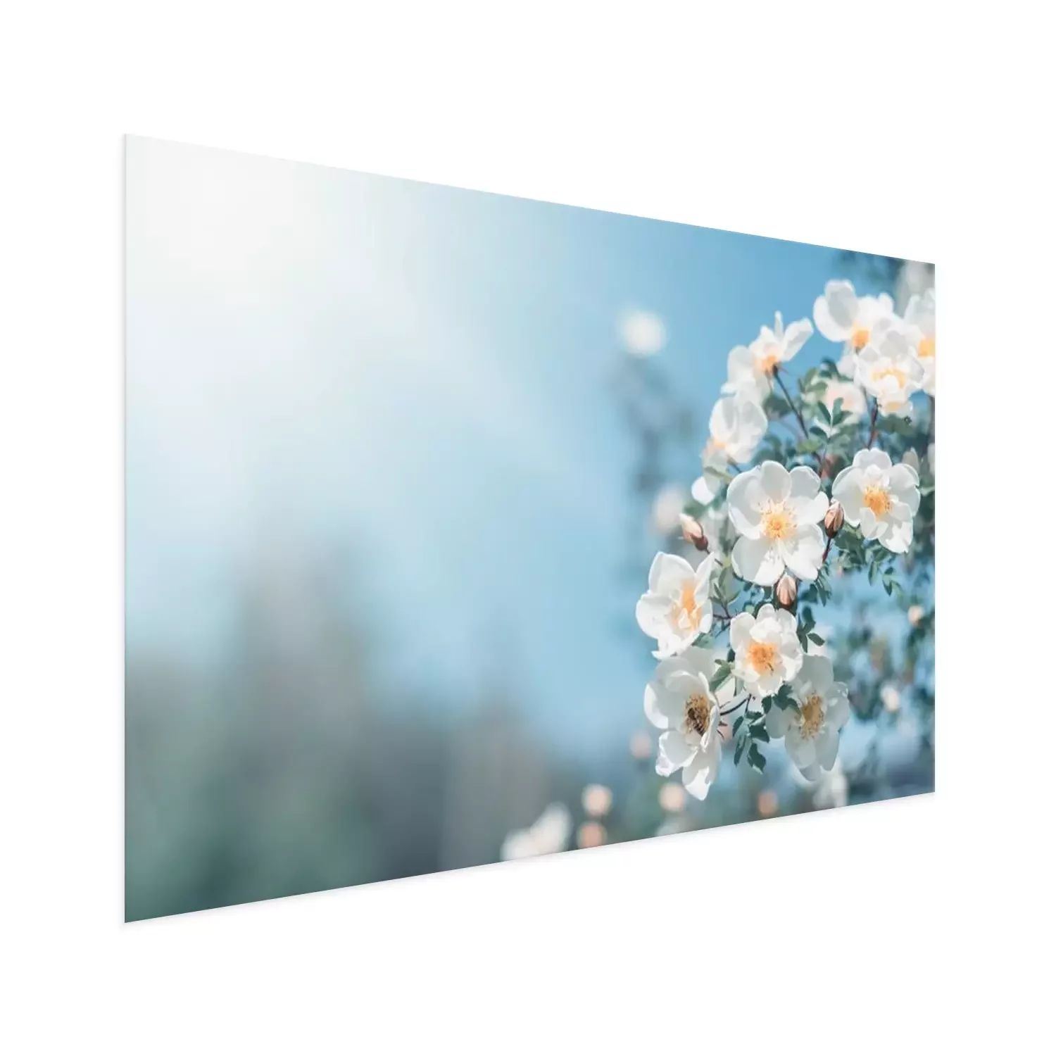 Poster: Voorjaarstakje met witte bloemen