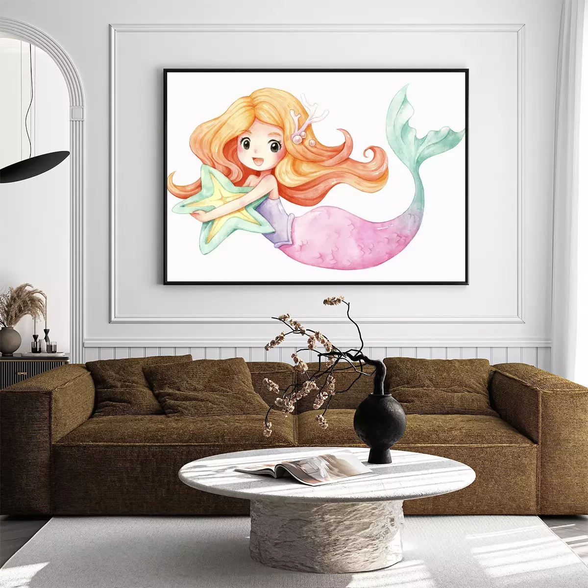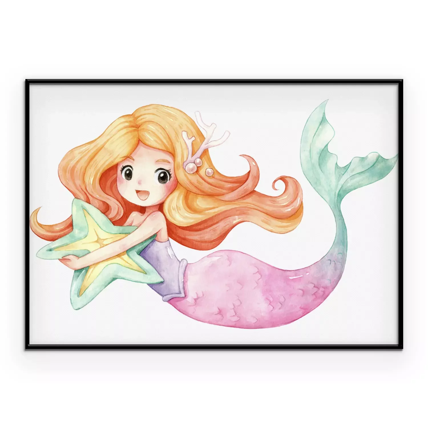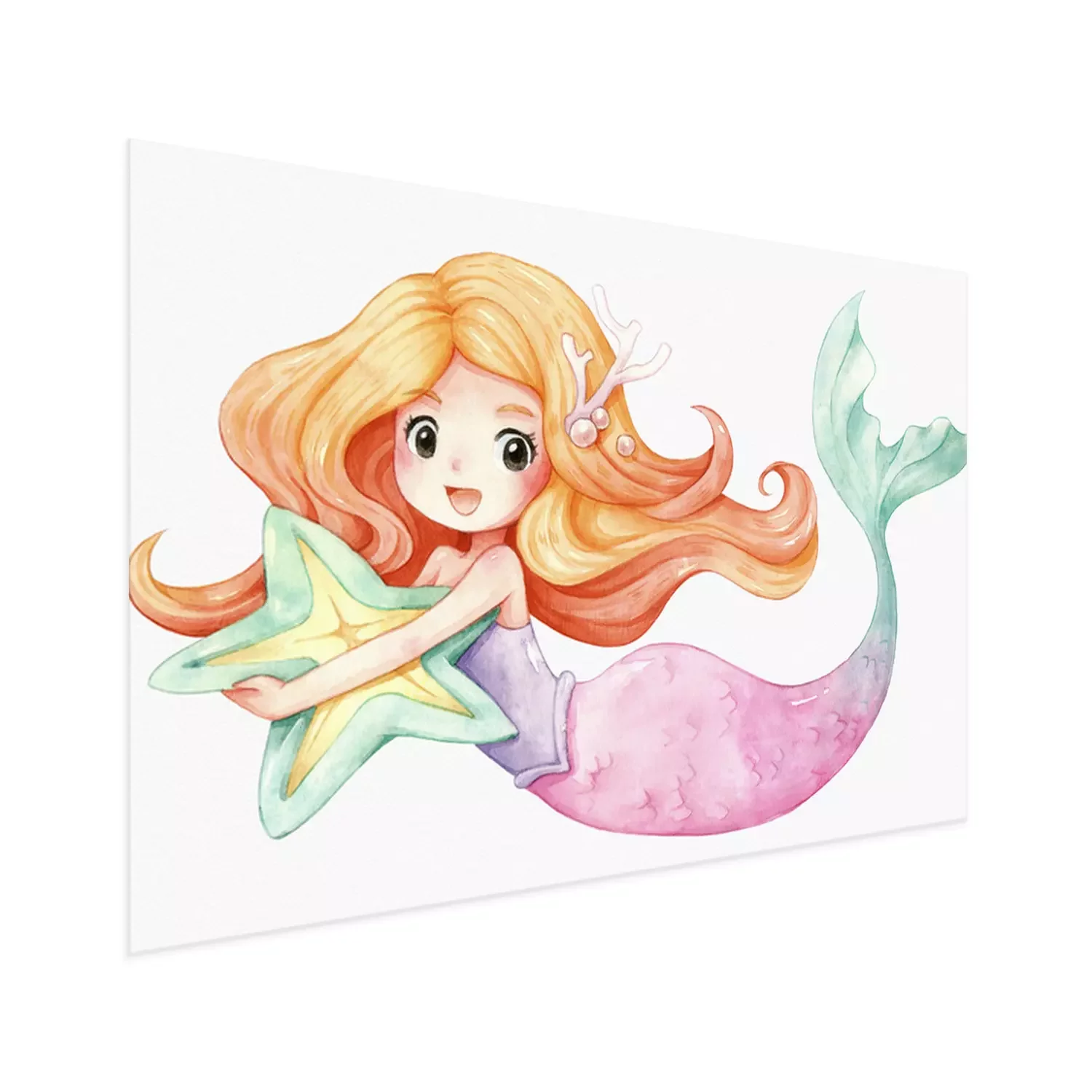 Poster: Vrolijke zeemeermin met een zeester in haar handen