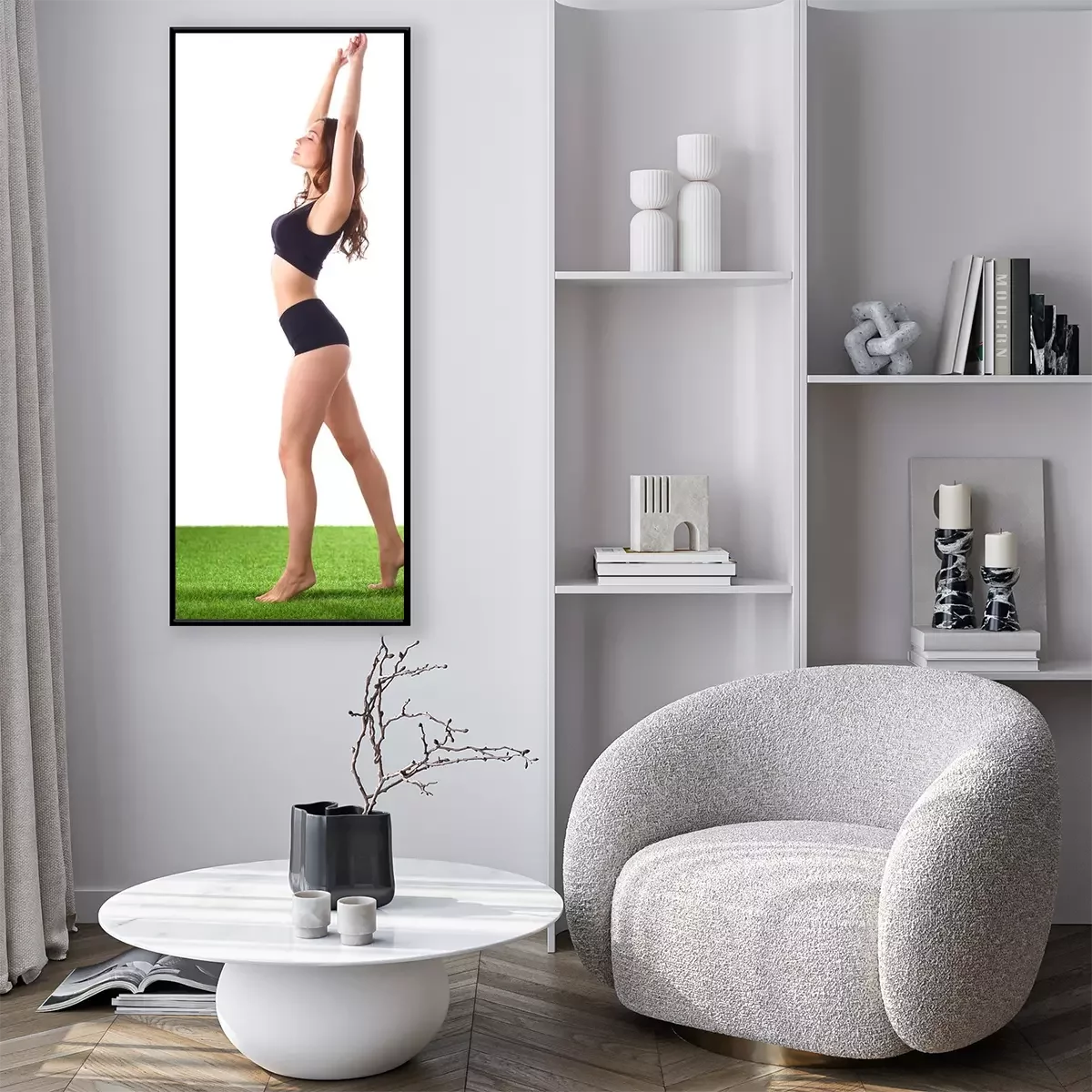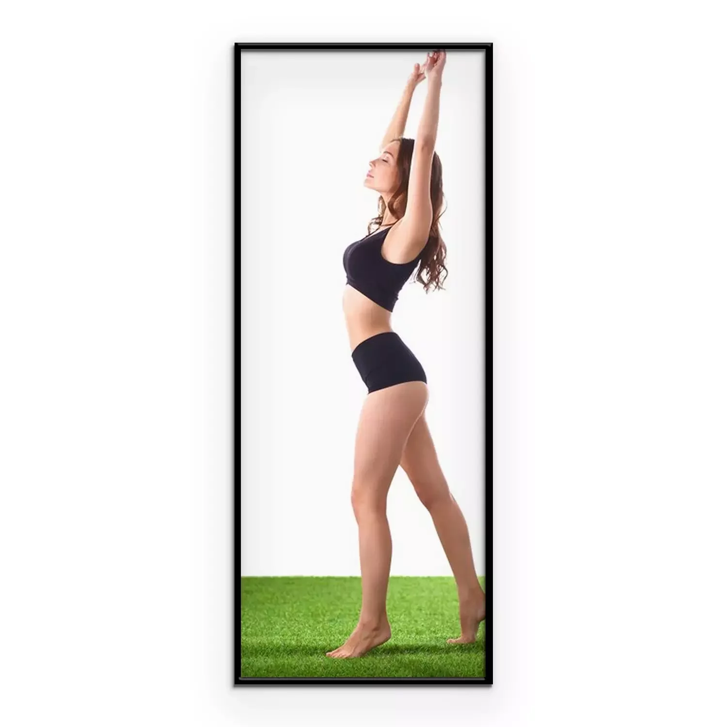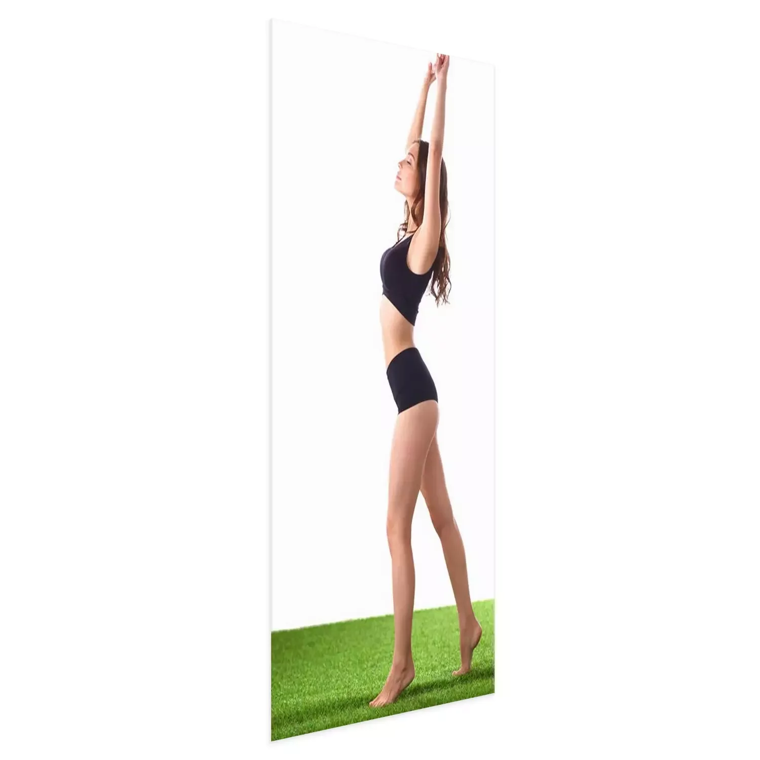 Poster: Vrouw doet rekoefeningen op het groene gras