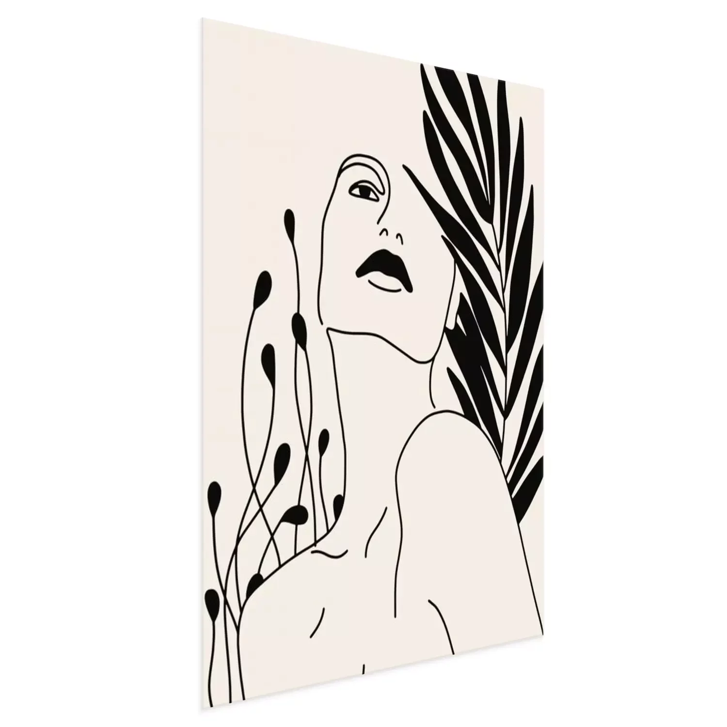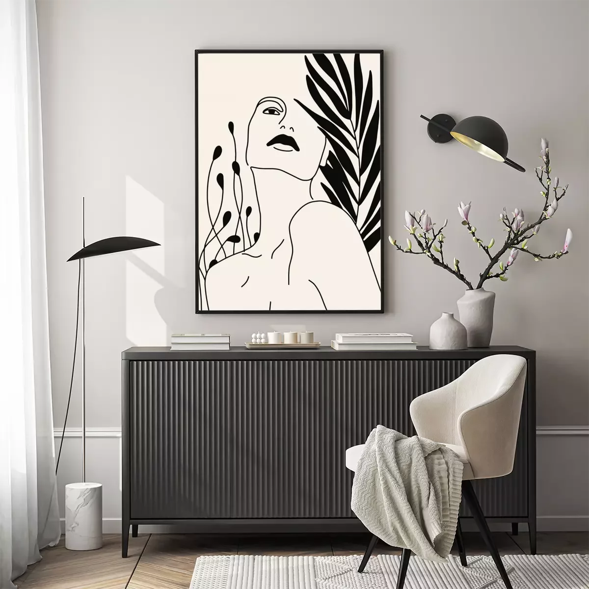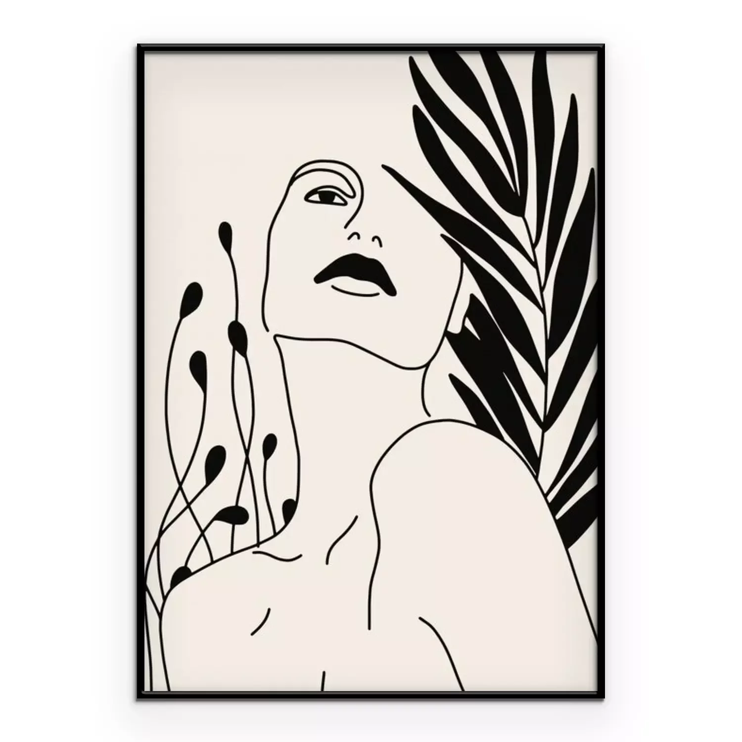Poster: Vrouw en bladeren minimalistische afbeelding in zwart