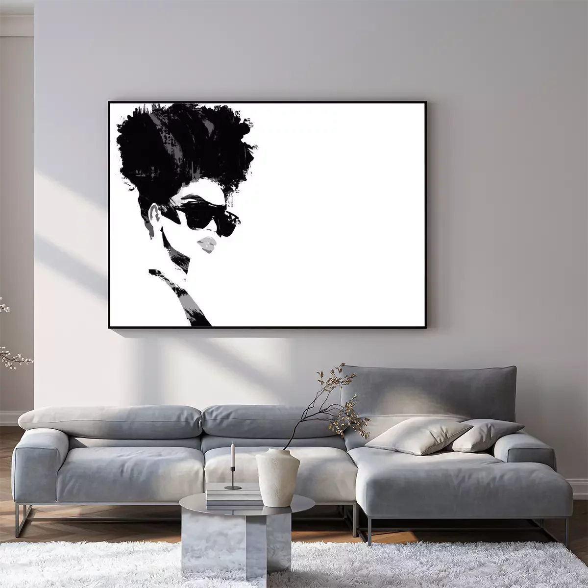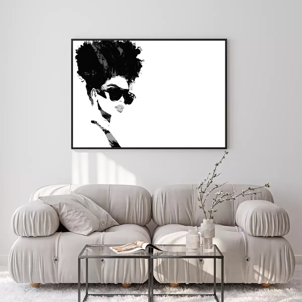 Poster: Vrouw in glazen met een afro