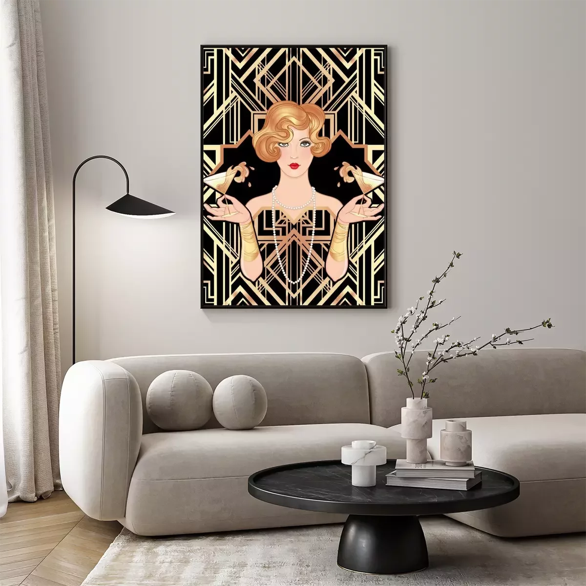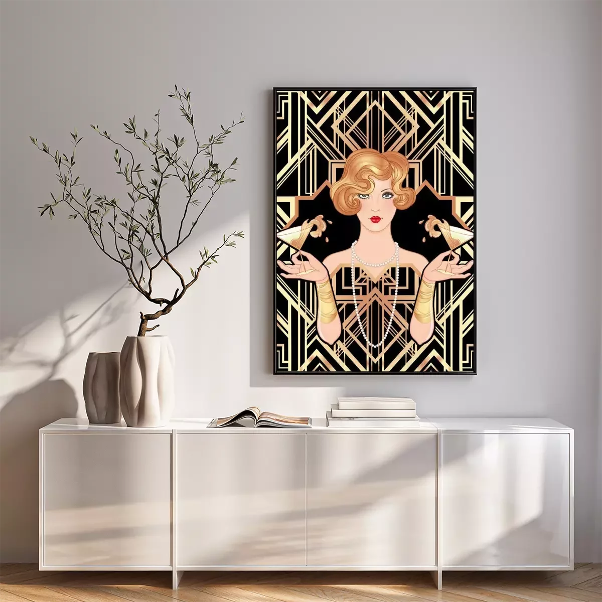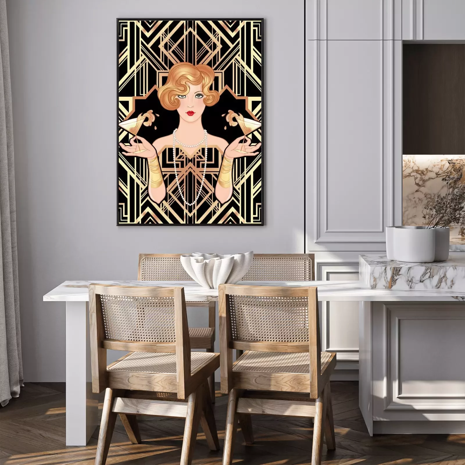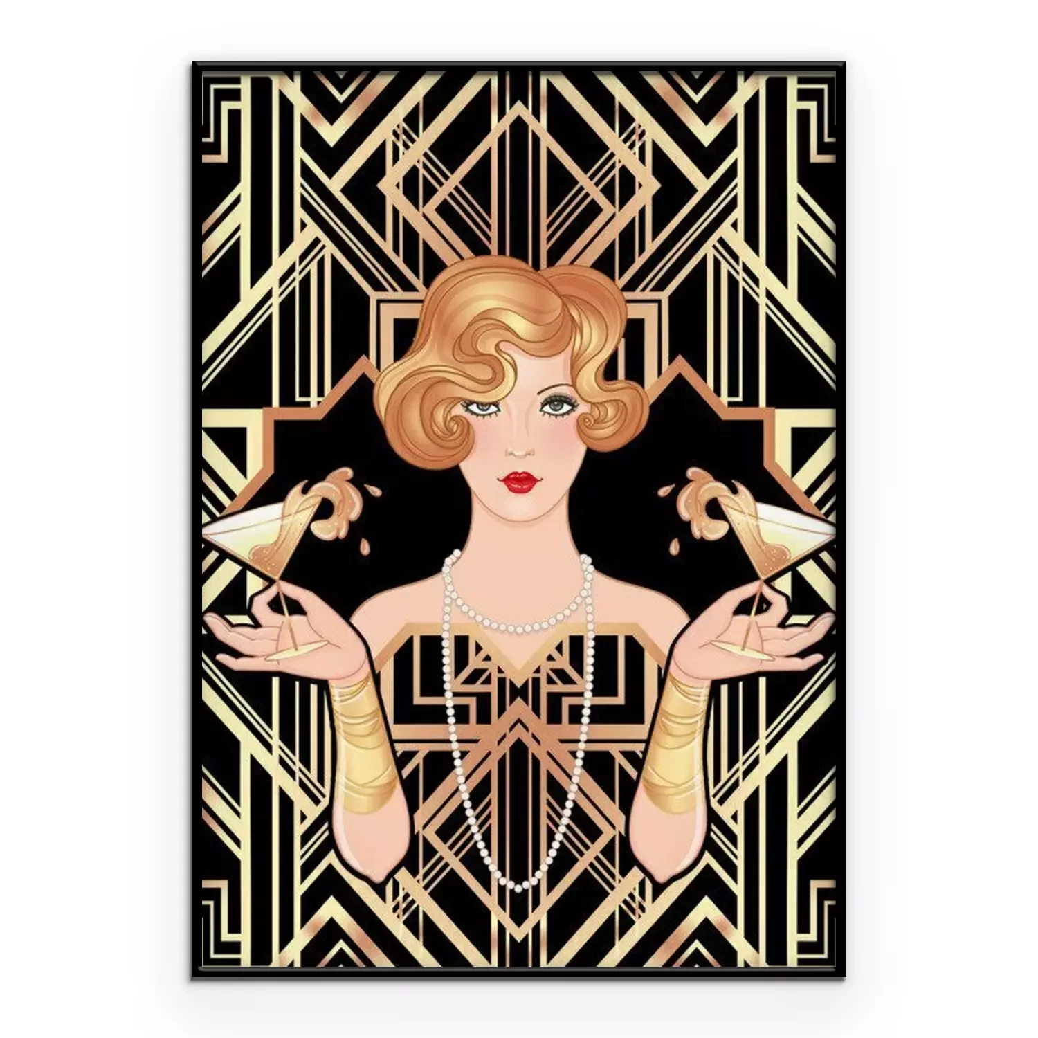 Poster: Vrouw met twee glazen in haar handen retro graphics
