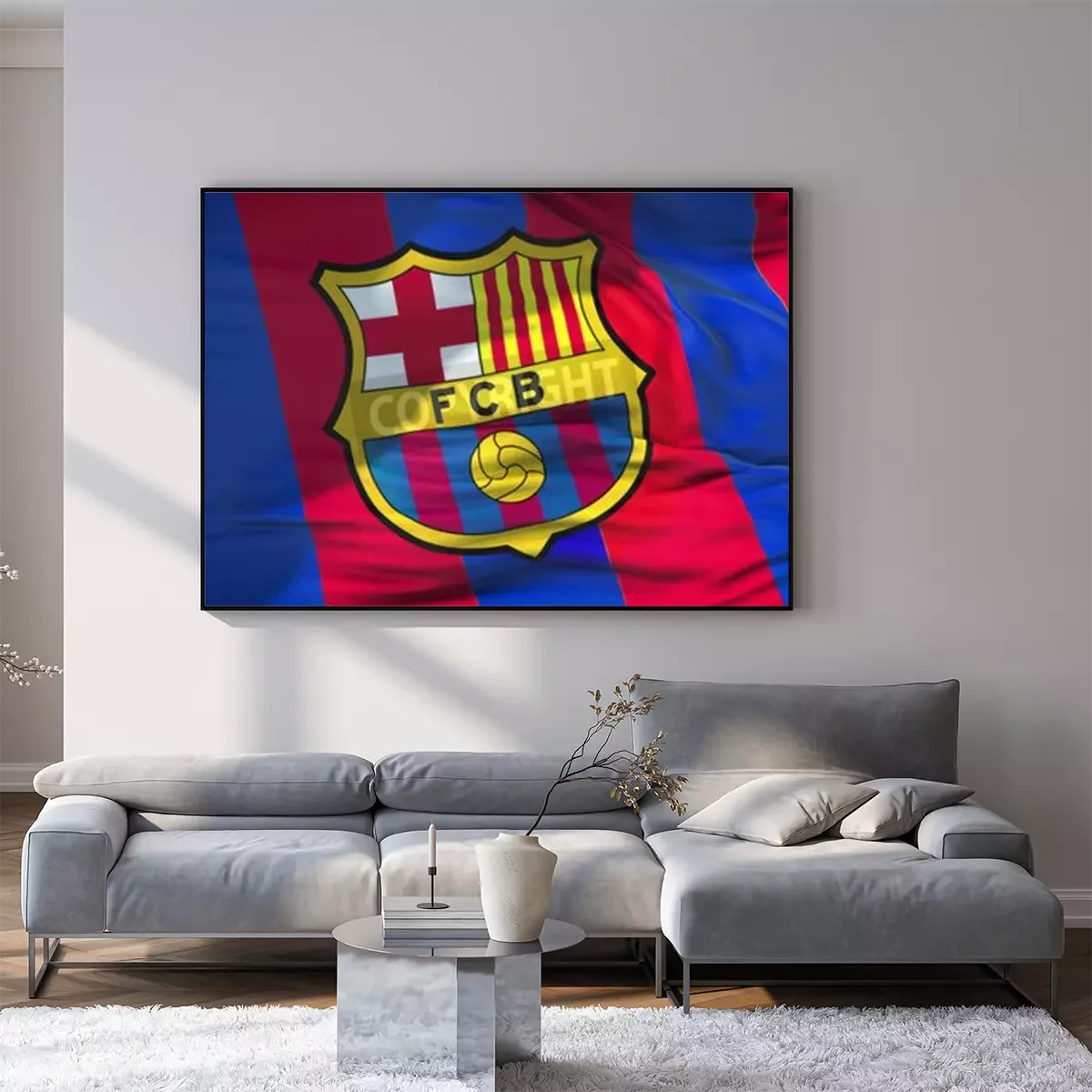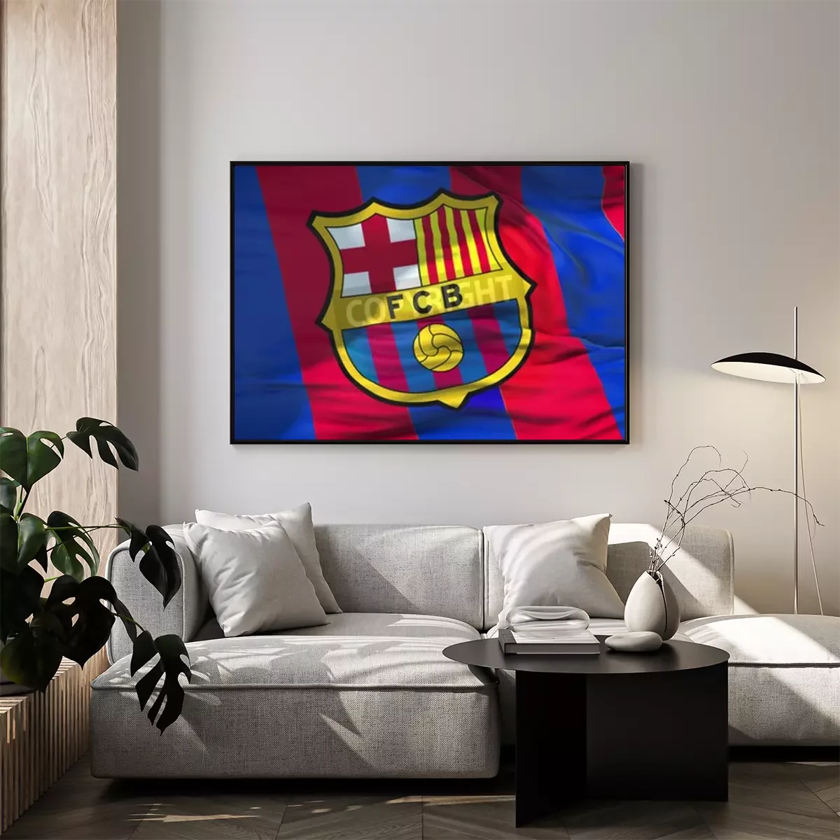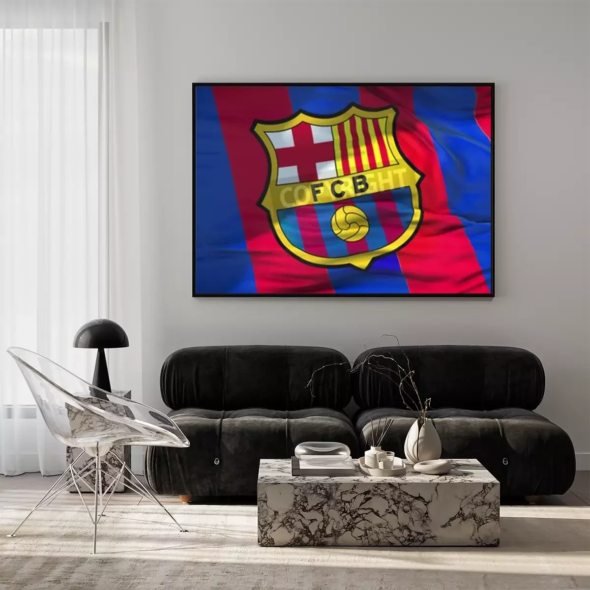 Poster: wapperende vlag van de voetbalclub van Barcelona