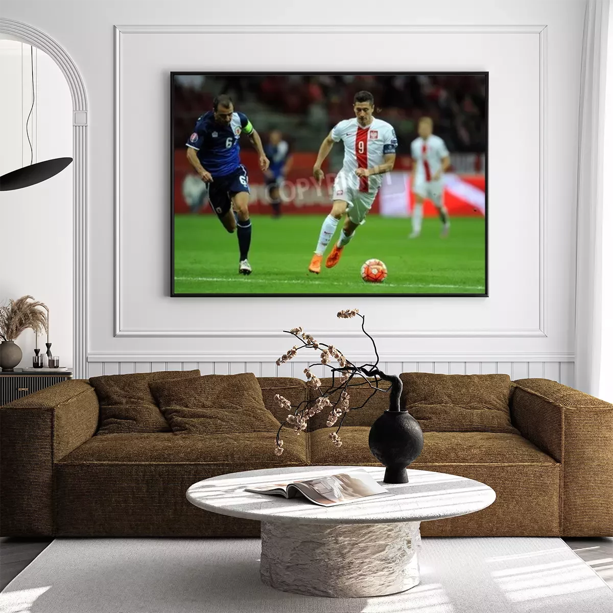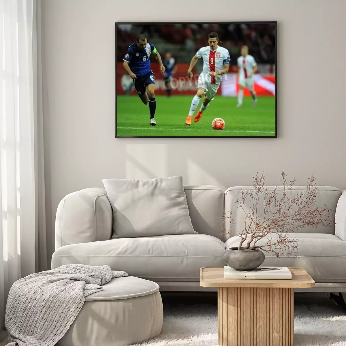 Poster Warschau, Polen - 7 september 2015: EURO 2016 France Football Euro Cup Qualifiers Polen vs Gibraltarop Roy Chipolina Robert Lewandowski