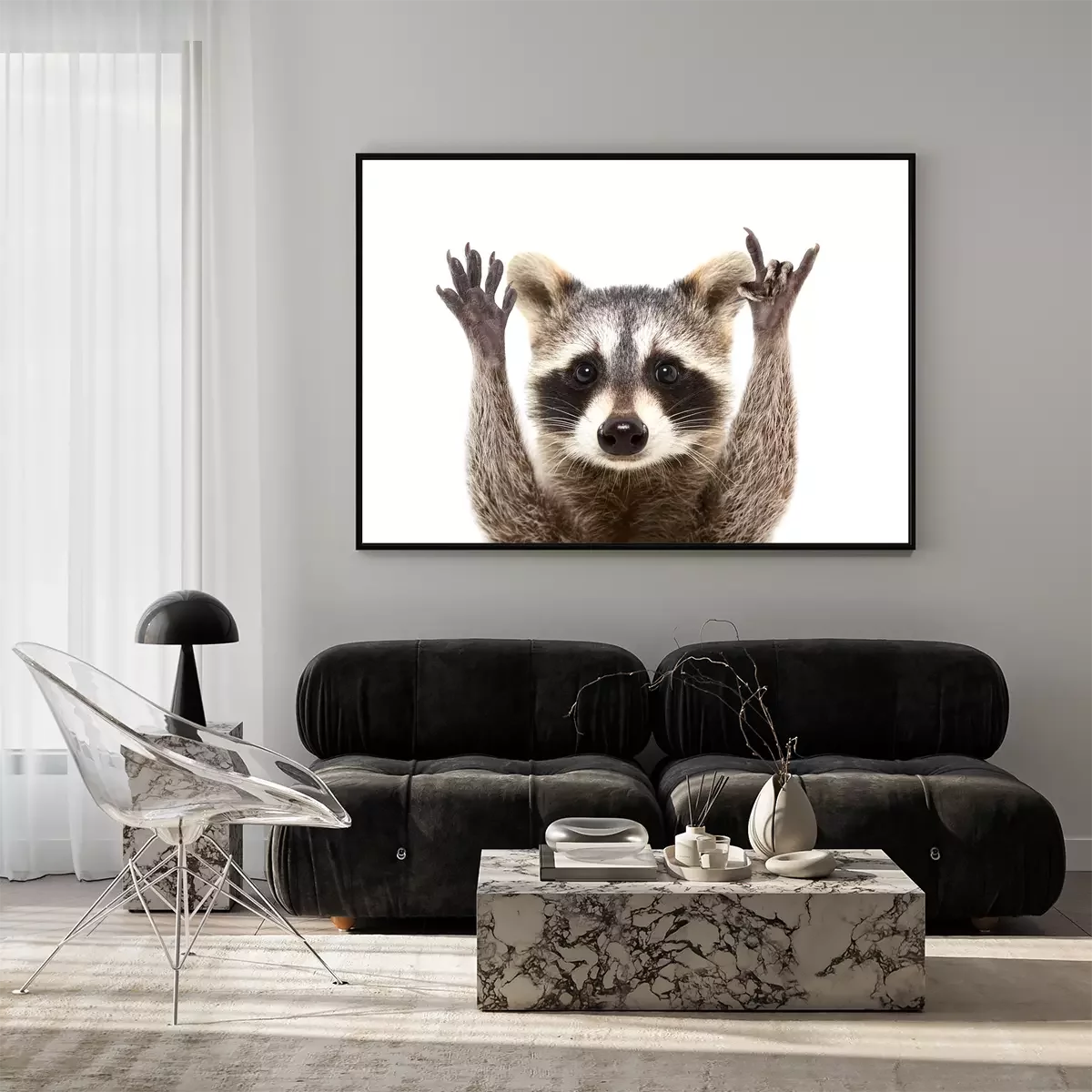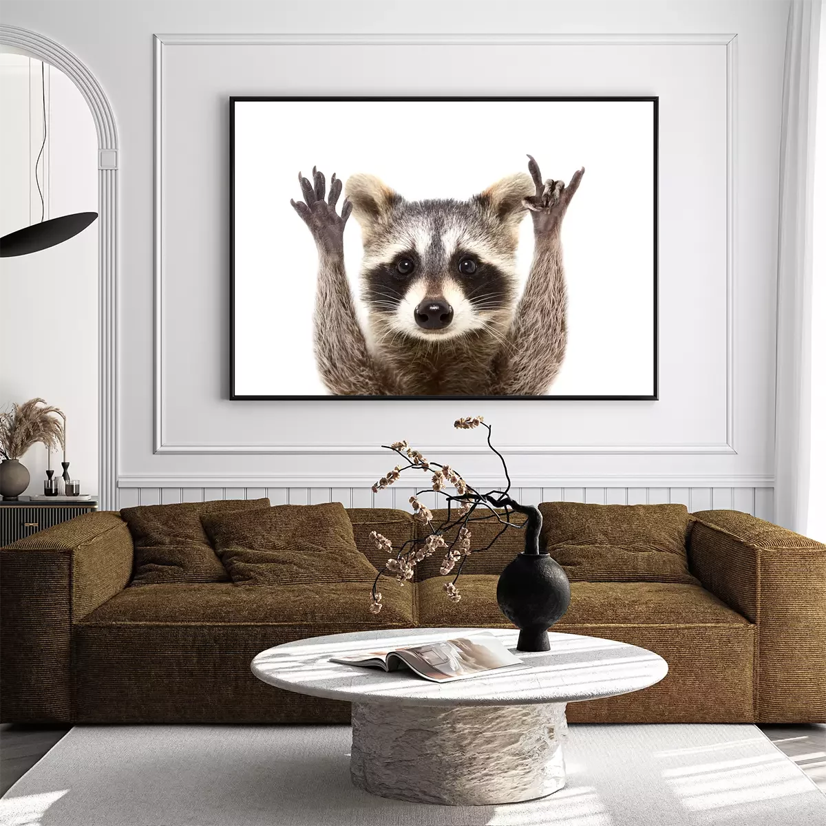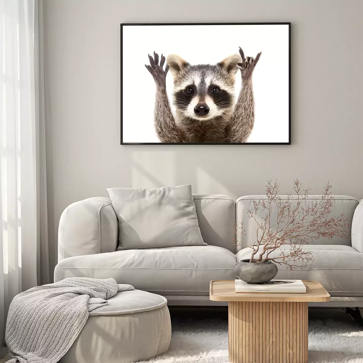 Poster Wasbeer op een witte achtergrond