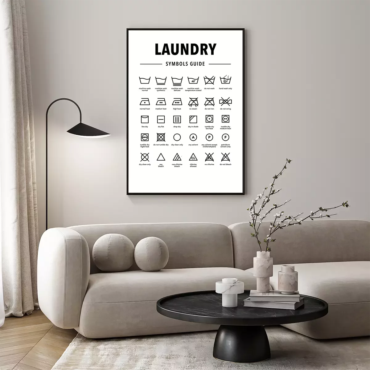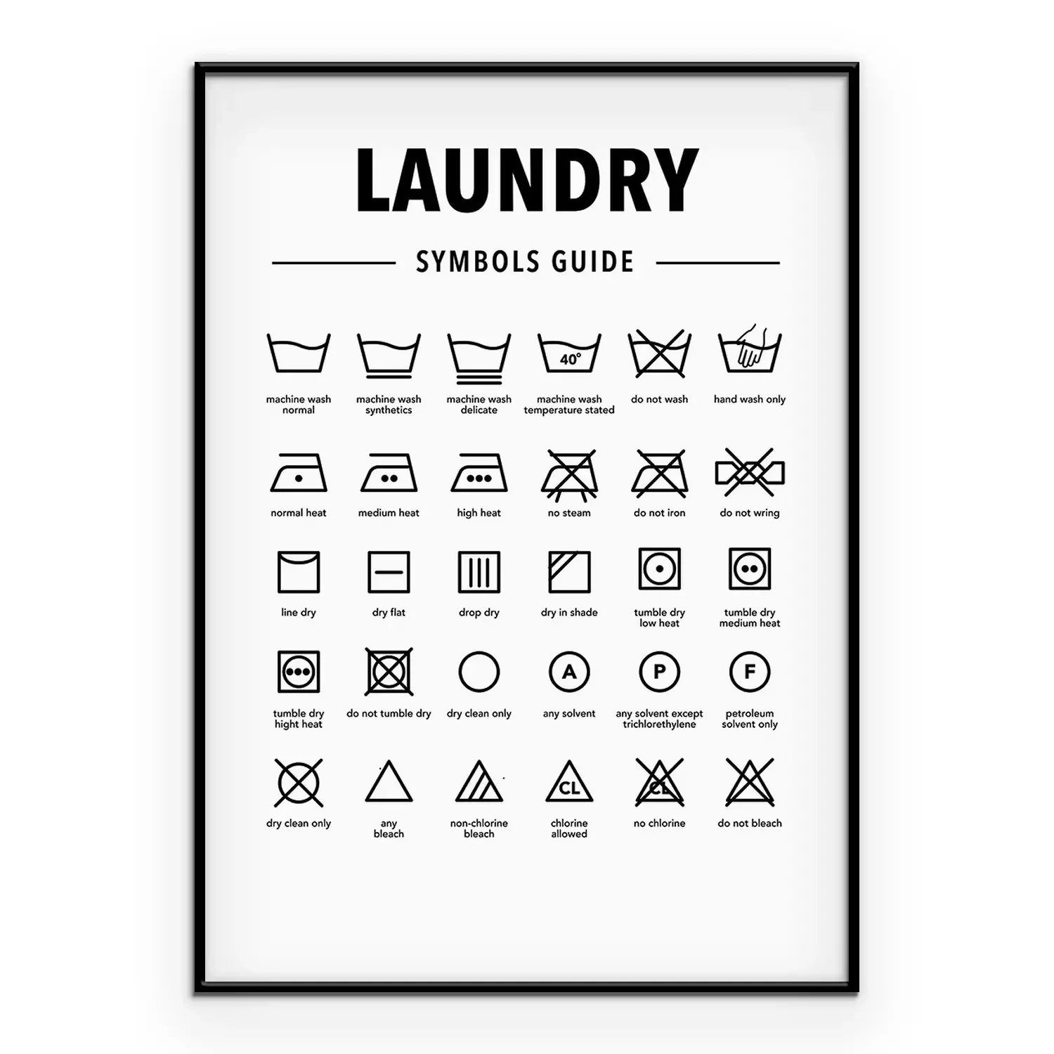 Poster: Wasinstructies met symbolen op een witte achtergrond