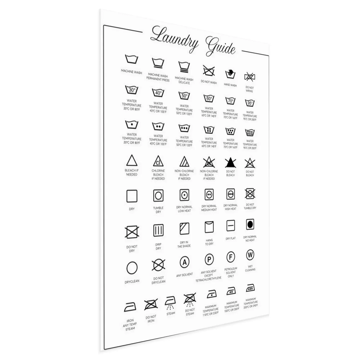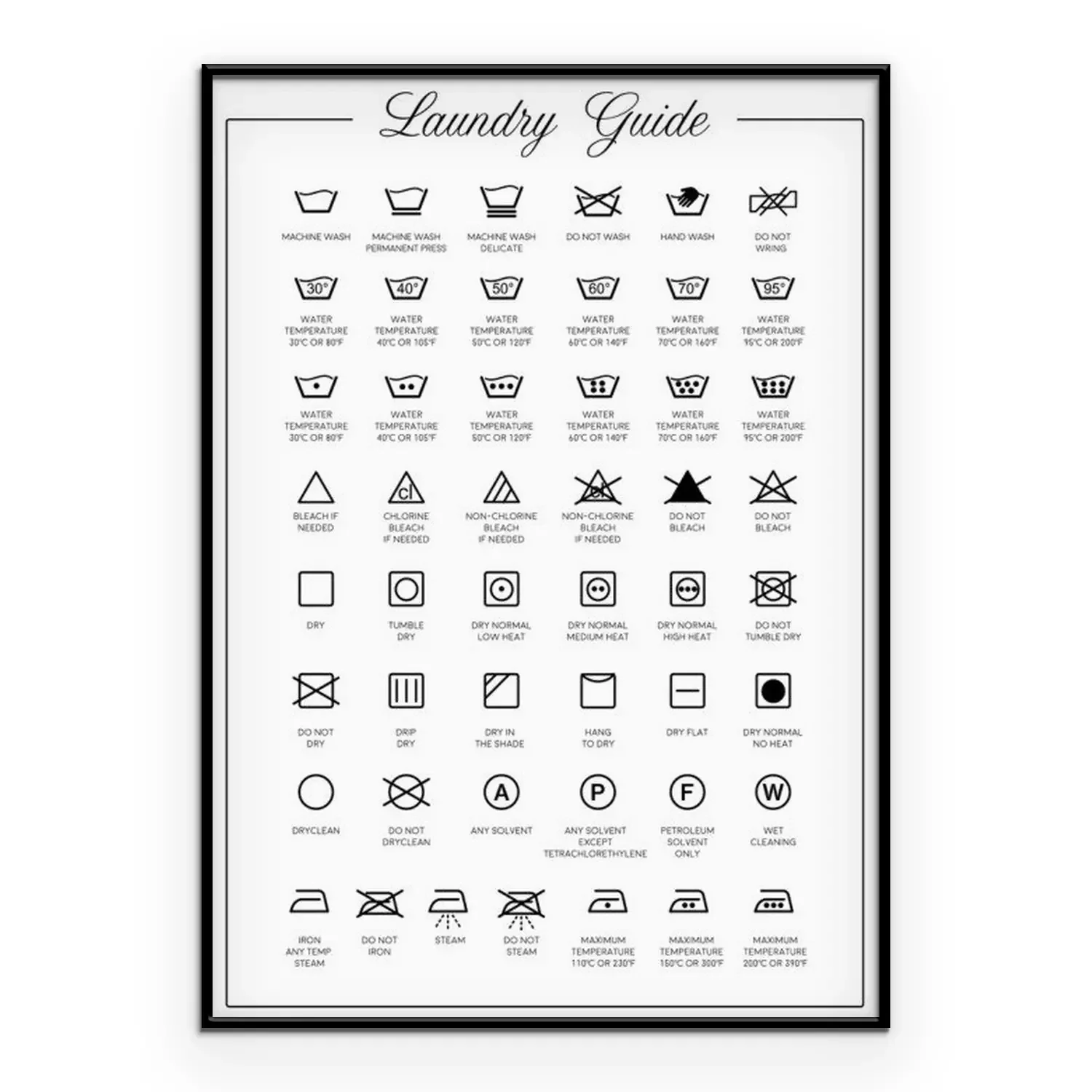Poster: Wasserij gids vector iconen, symbolen collectie