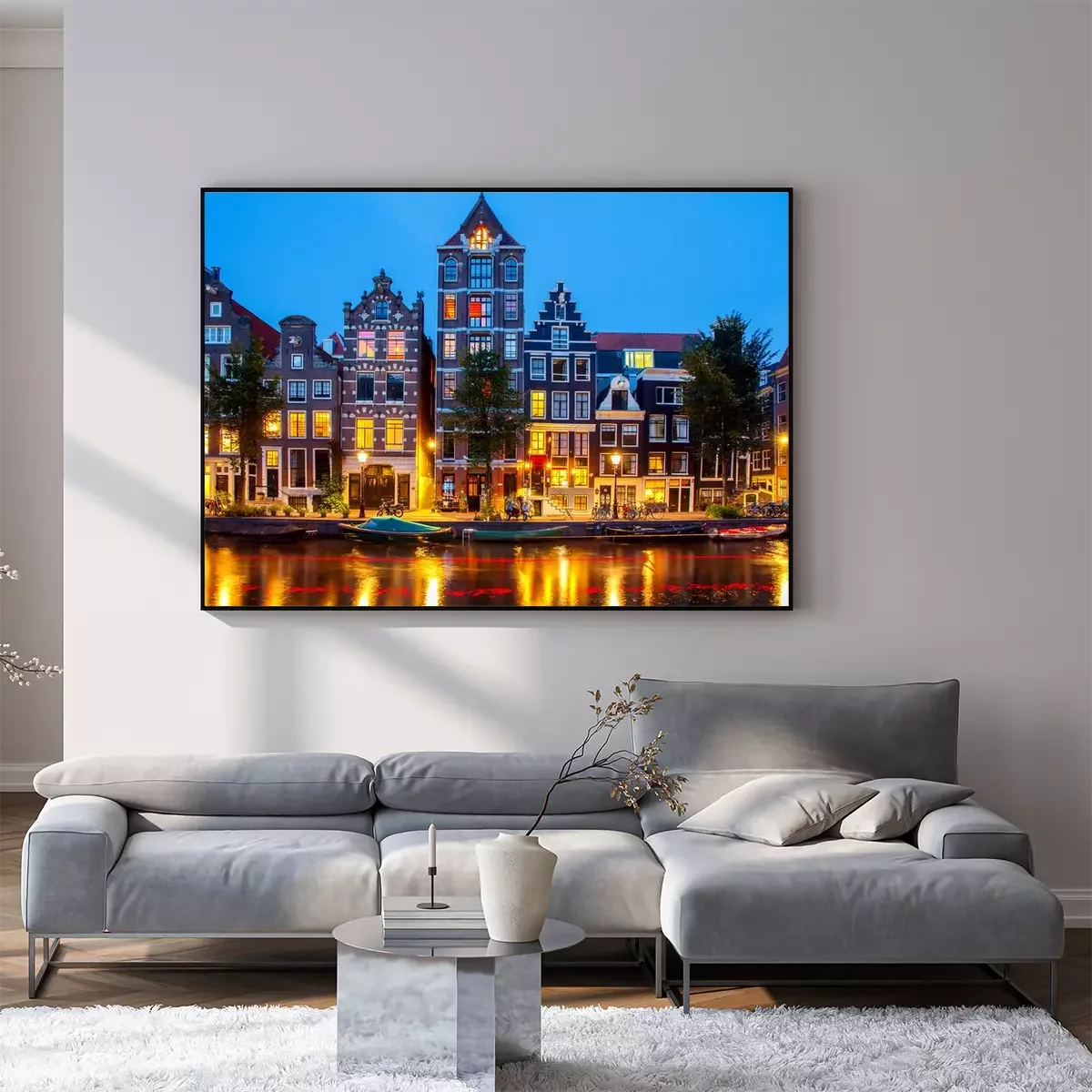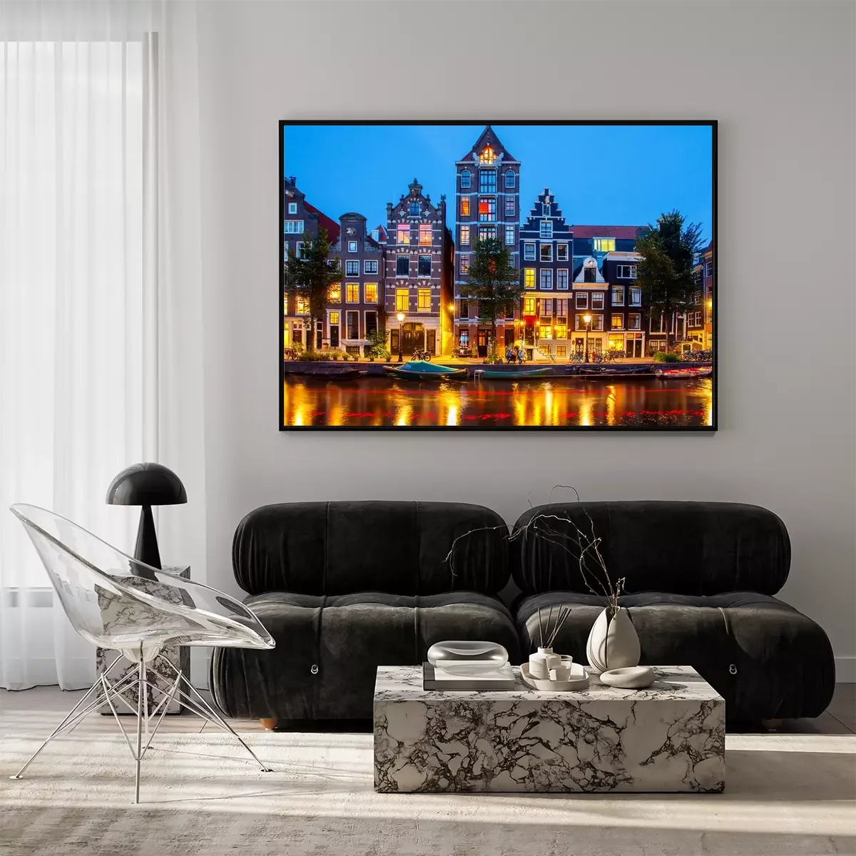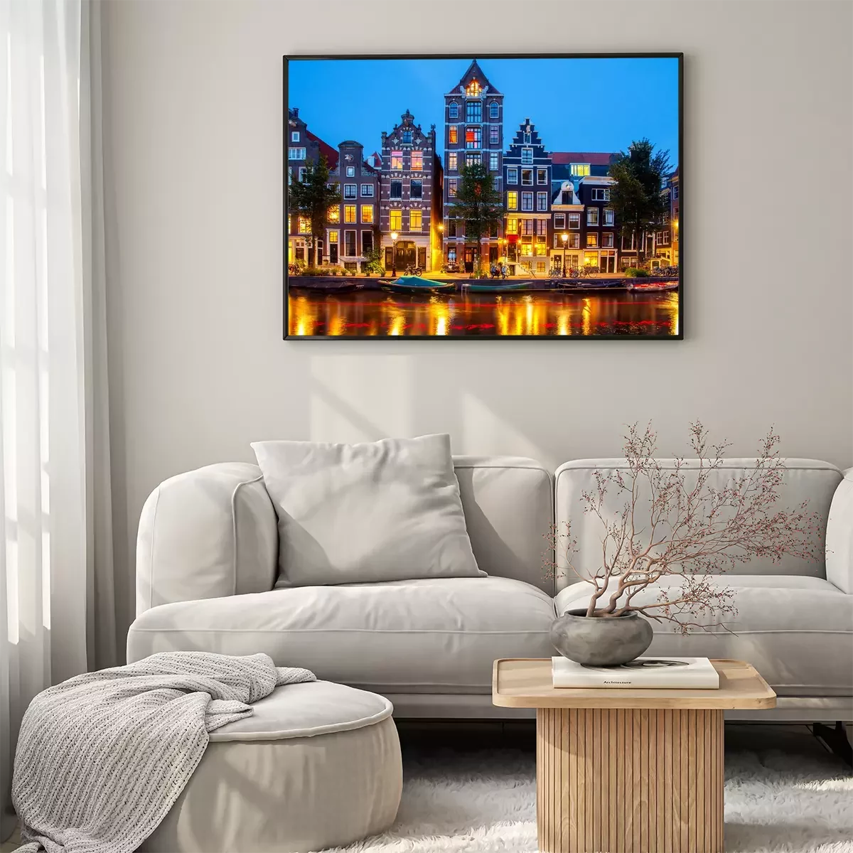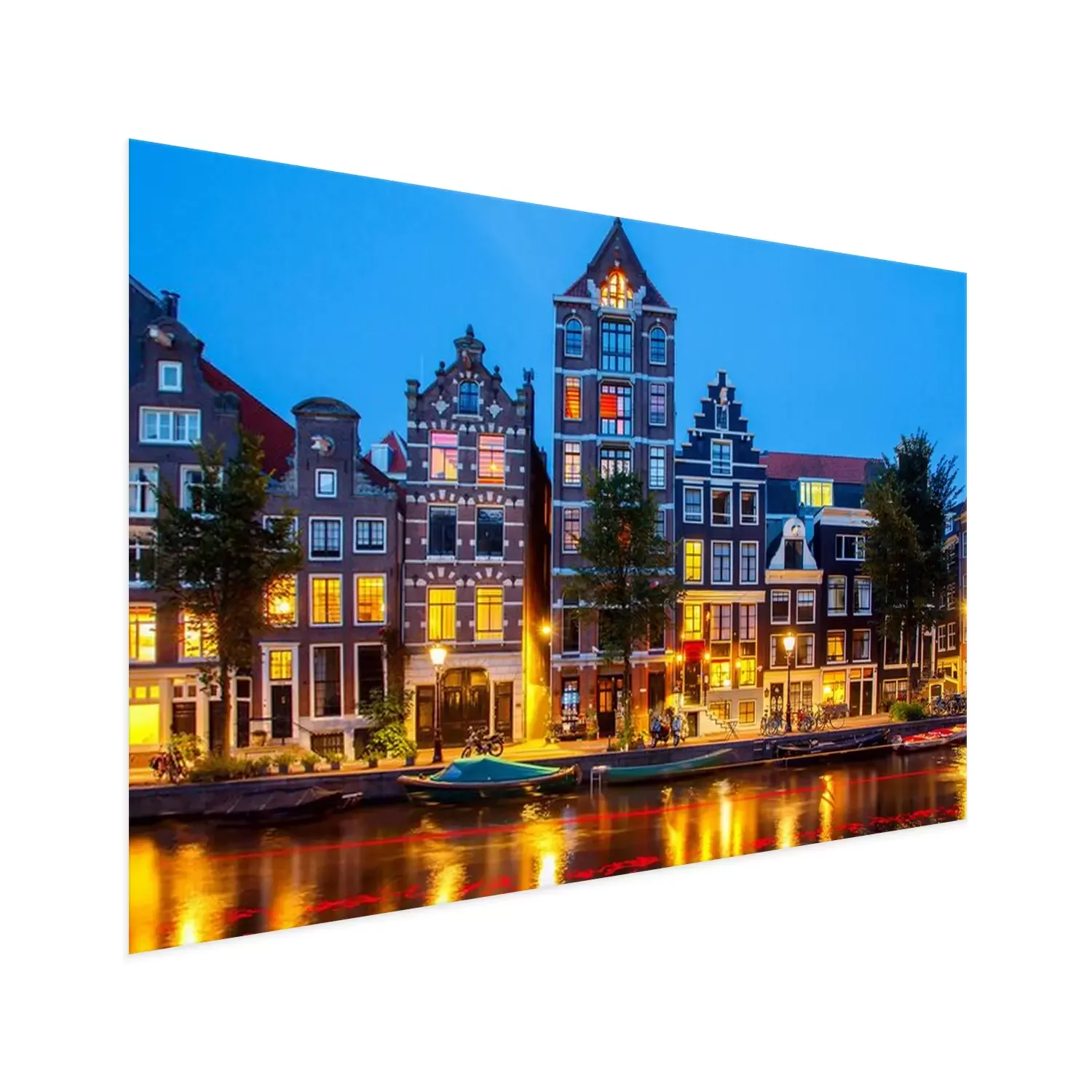Poster: Wasserkanal in Amsterdam bei Nacht