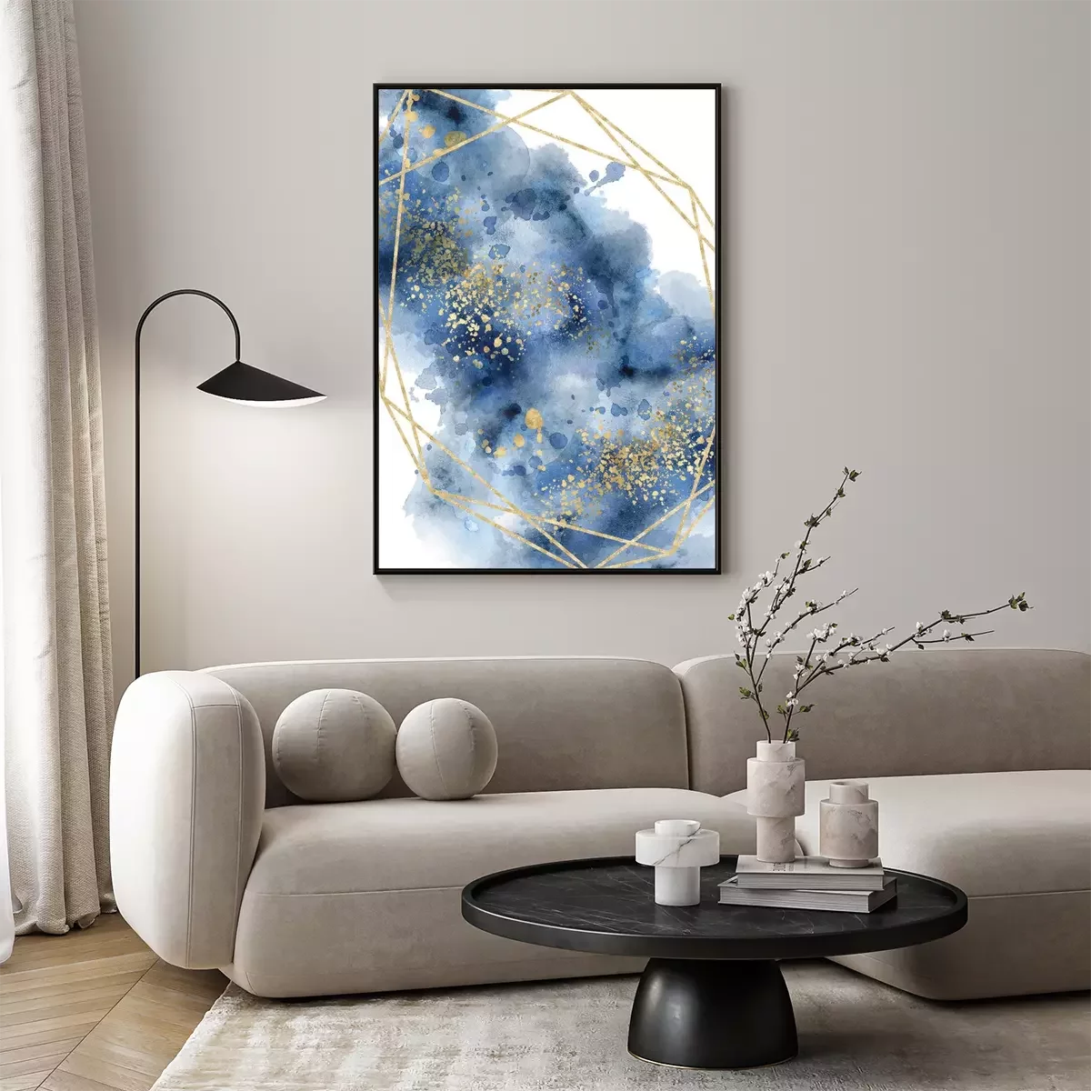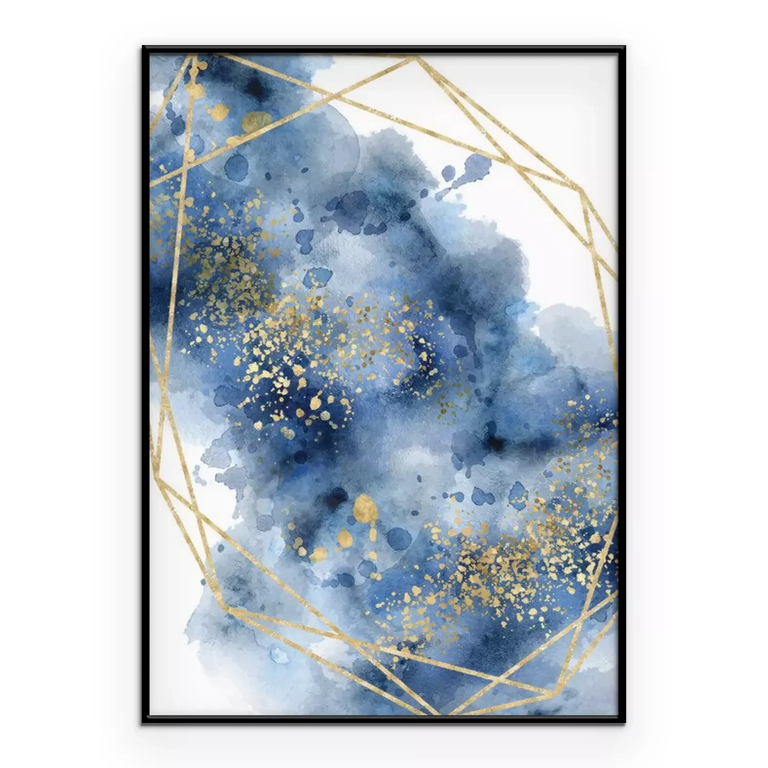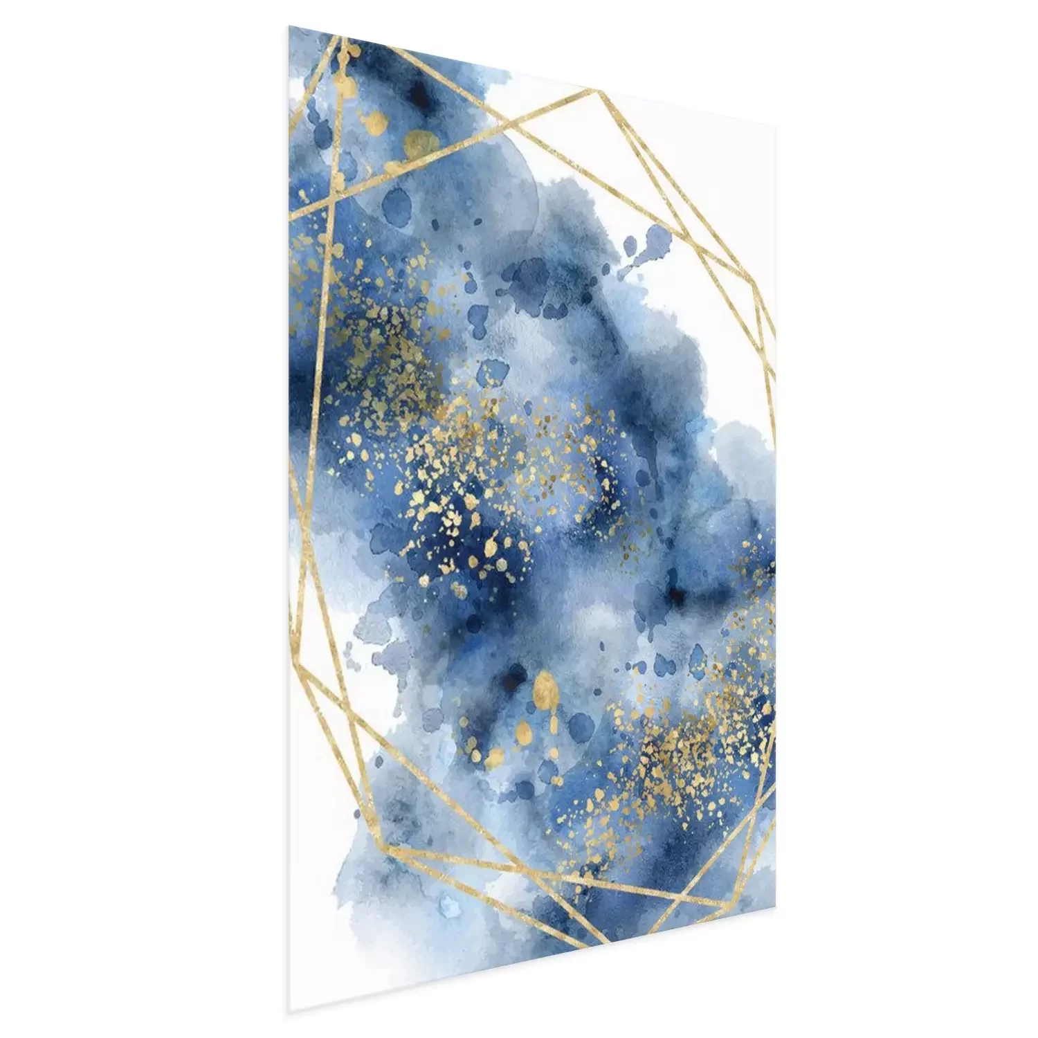 Poster: Watercolor abstract aquamarine, background, watercolour blue and gold texture Vector illustration