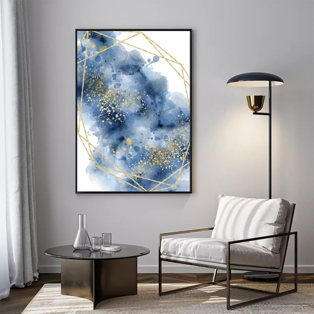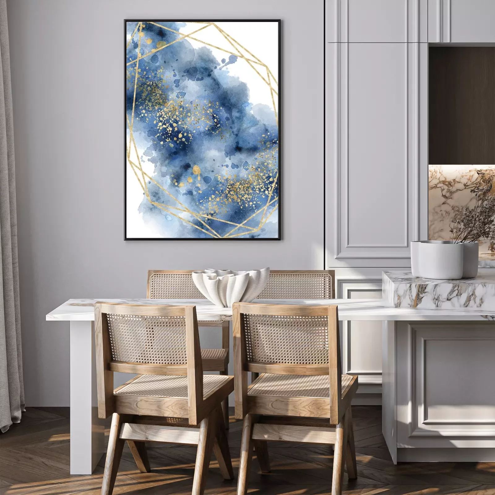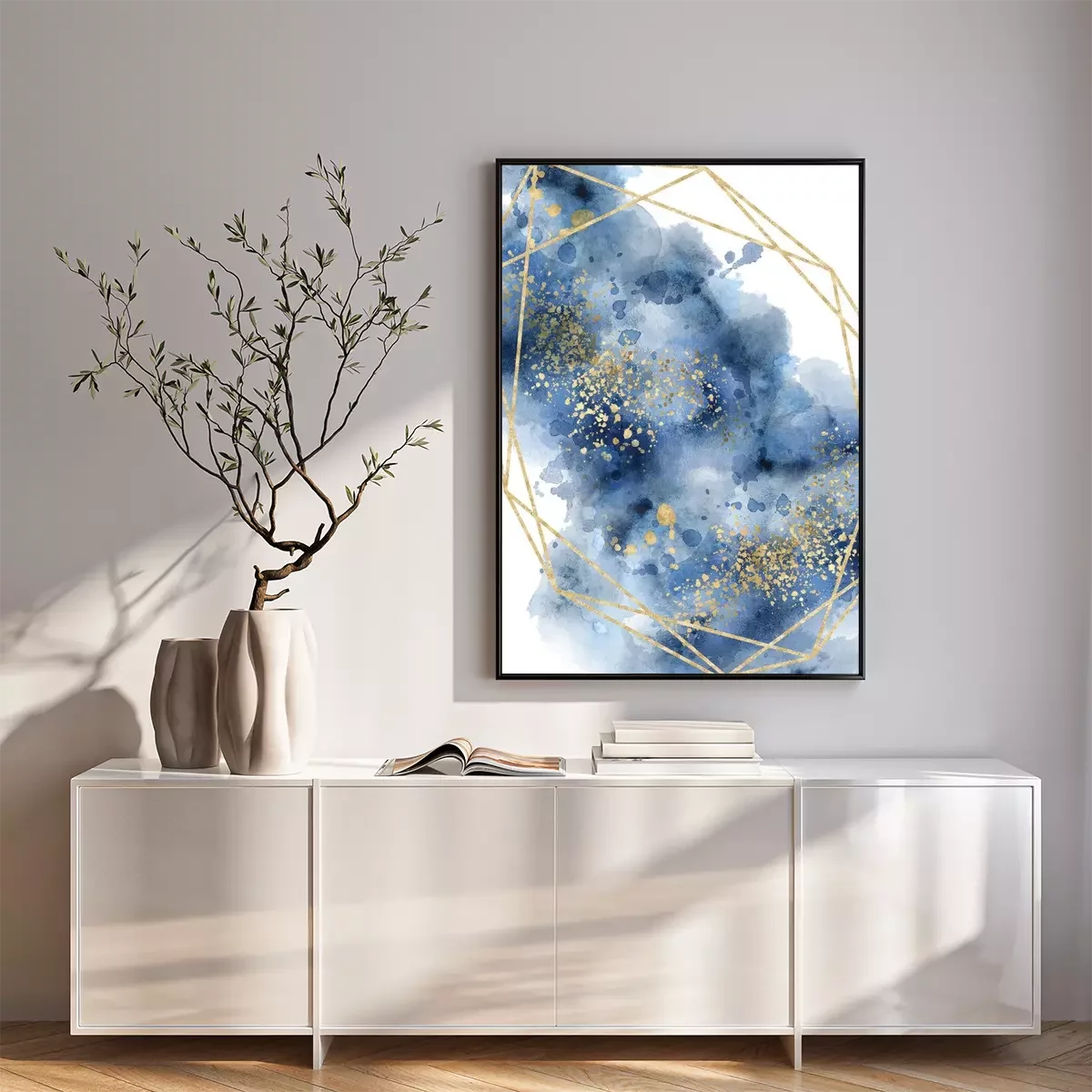 Poster: Watercolor abstract aquamarine, background, watercolour blue and gold texture Vector illustration