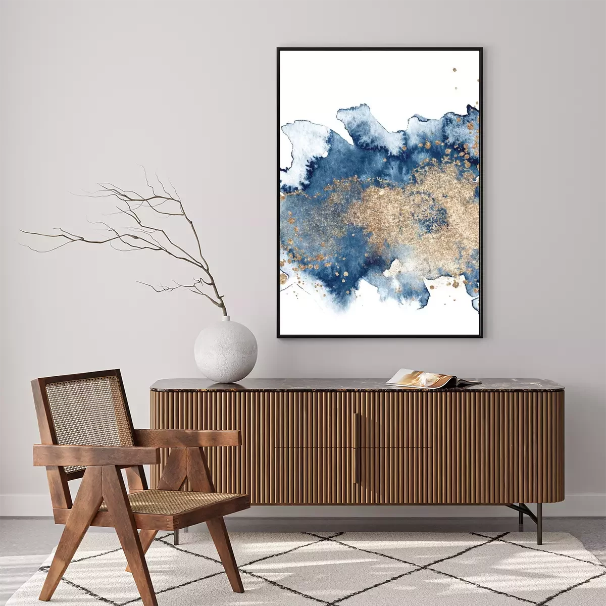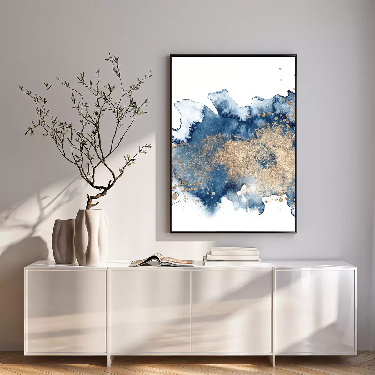 Poster: Watercolor abstract classic blue and gold, background, hand drawn watercolour texture