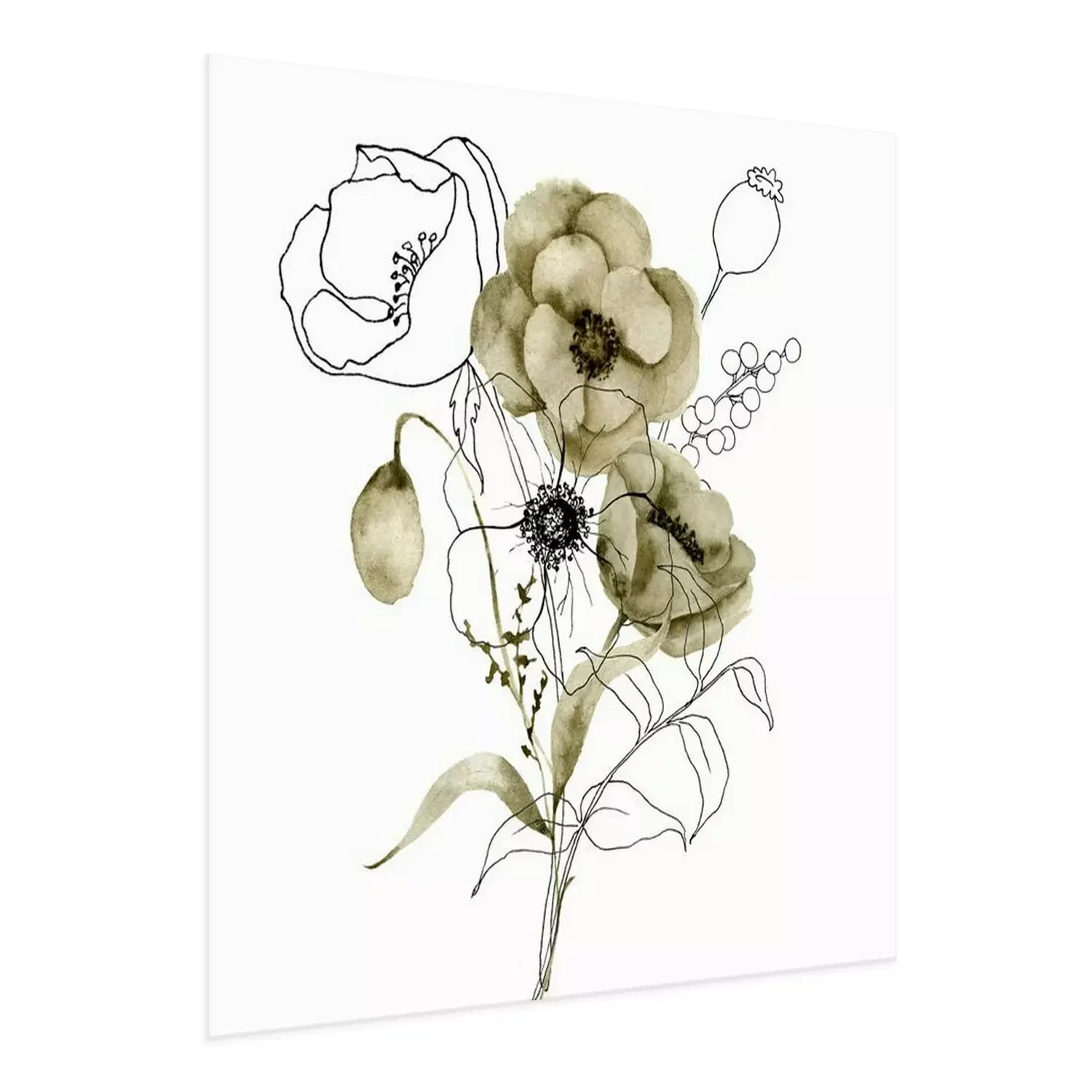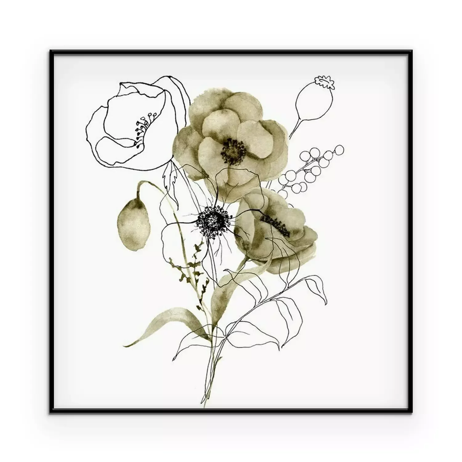 Poster: Watercolor and sketch greenery and anemone bouquet. Hand painted flowers and berries with eucalyptus leaves and branch isolated on white background for design, print or fabric.