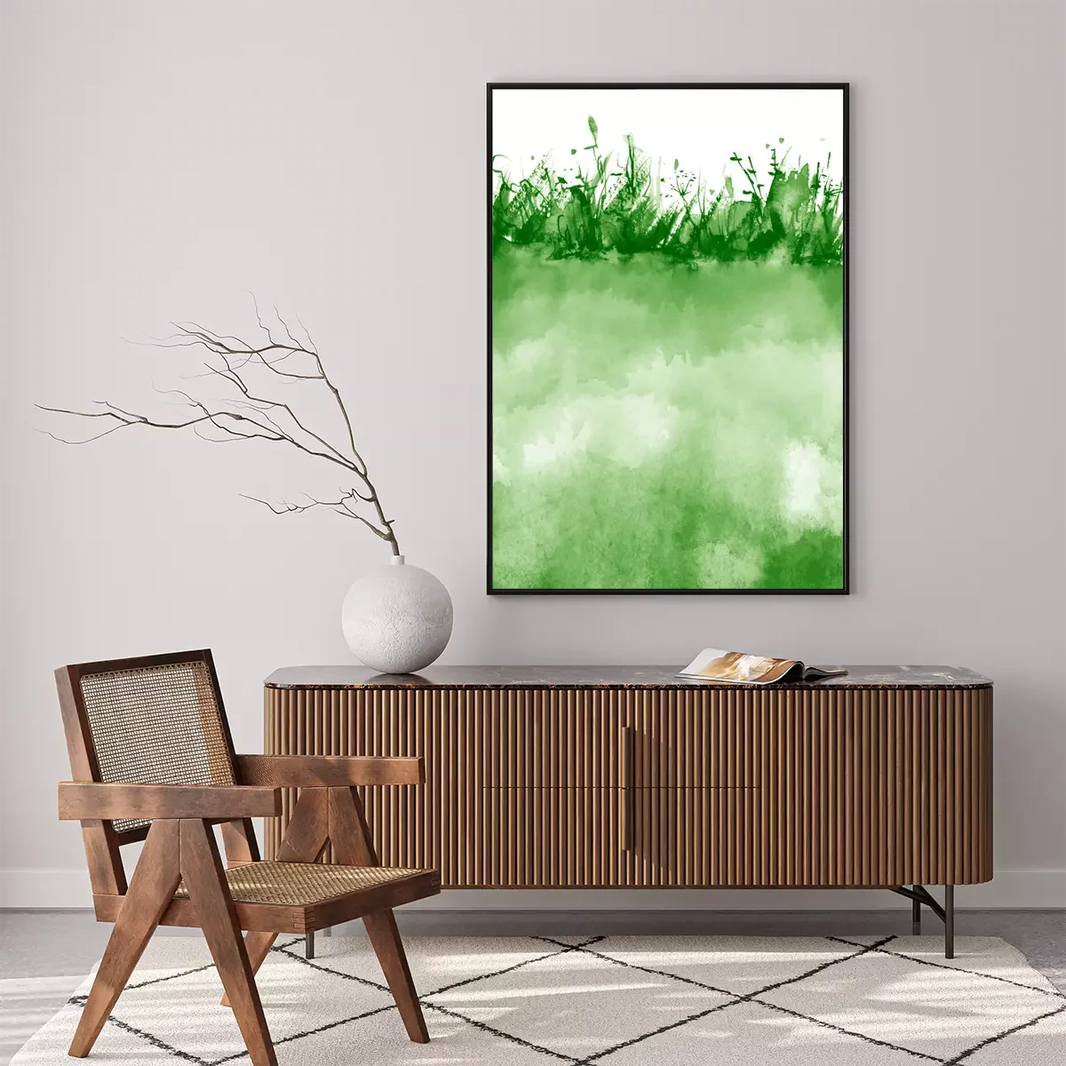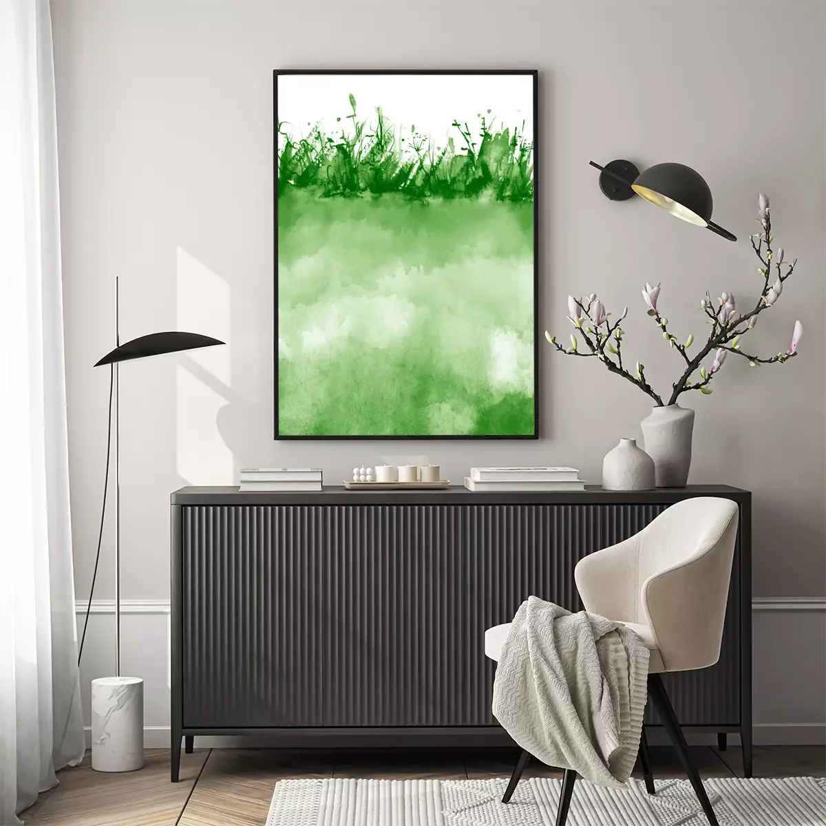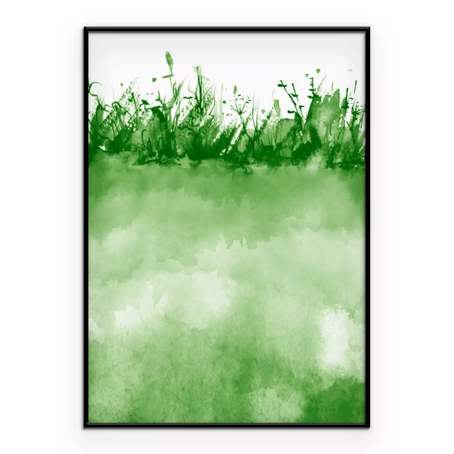 Poster: Watercolor illustration. background with vintage floral pattern - grass, wild plants of green color. Watercolor card, postcard, invitation. green watercolor natural, organic, bio, eco label