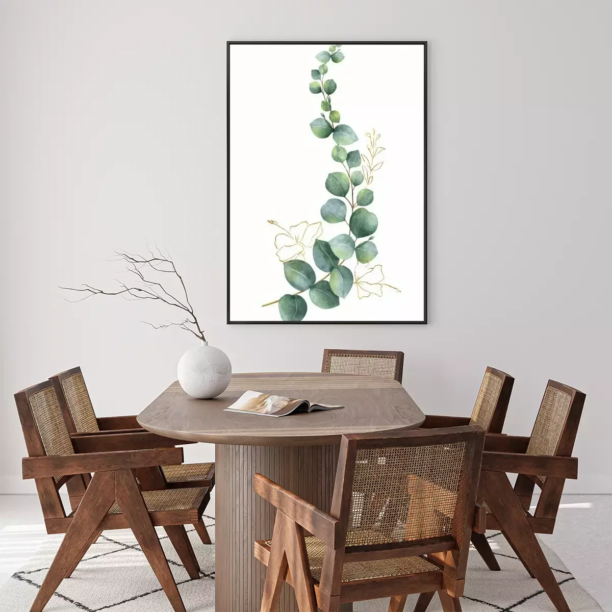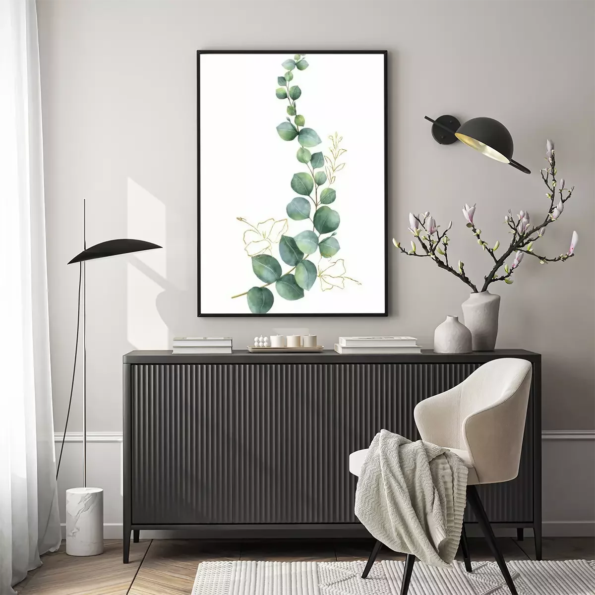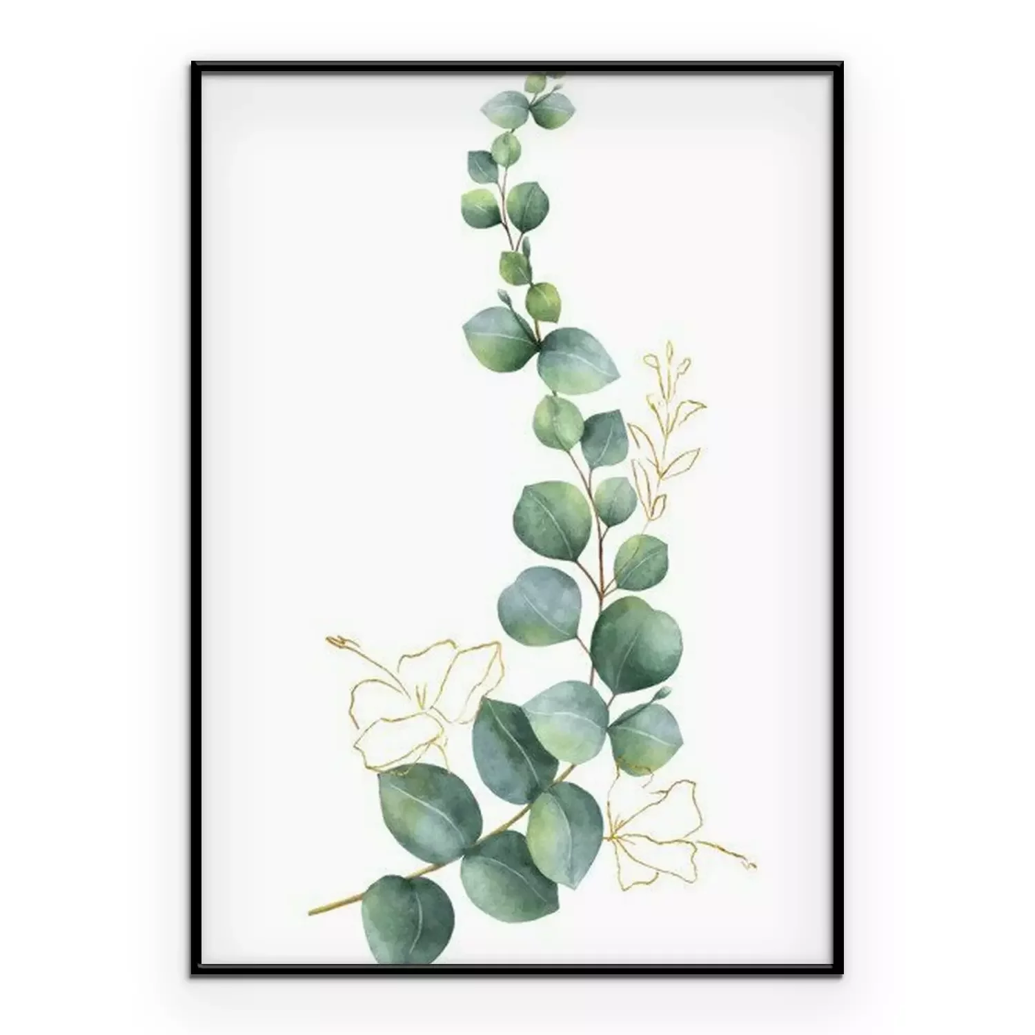 Poster Watercolor vector wreath with green eucalyptus leaves and gold elements