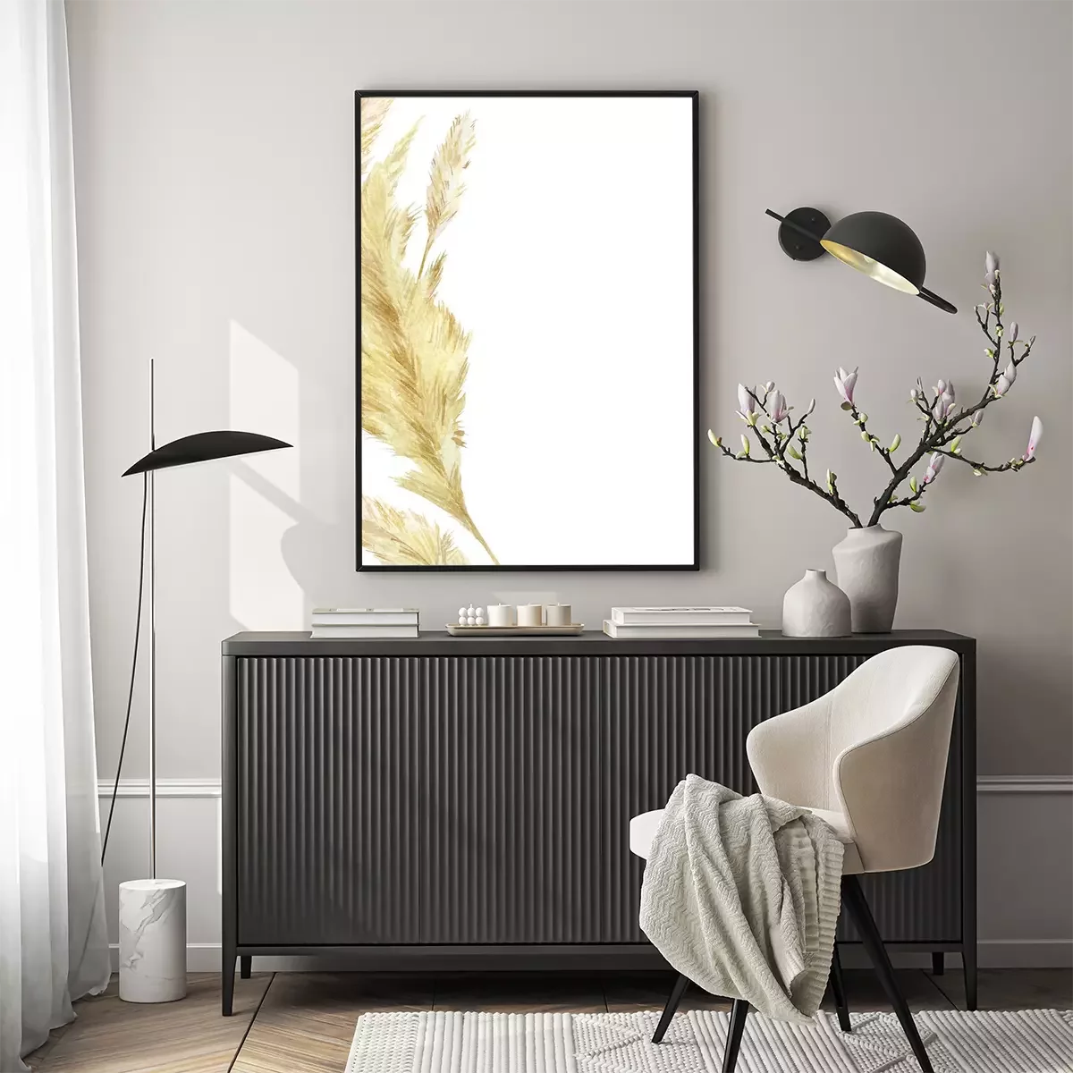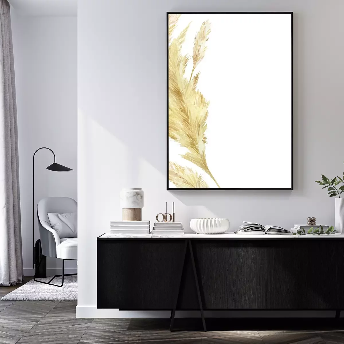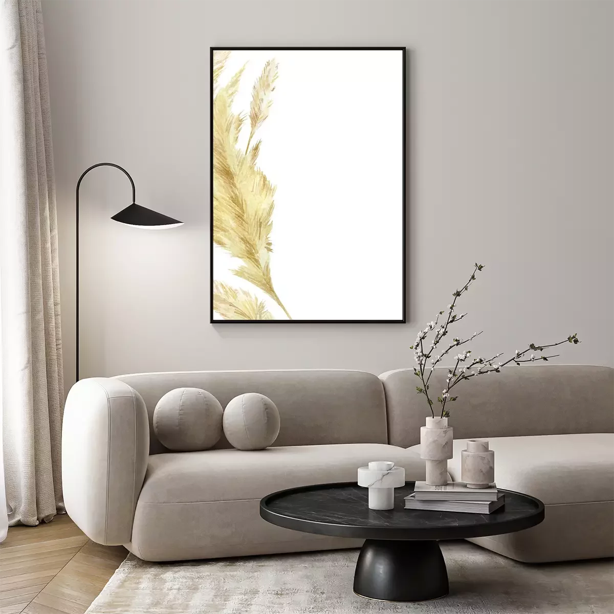 Poster: Watercolor wild floral wedding invintation. Pampas graas element for design card boho and modern style. Panicle Cortaderia selloana South America, feathery flower head plumes.