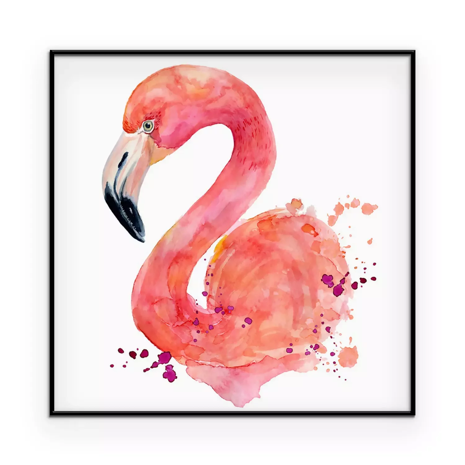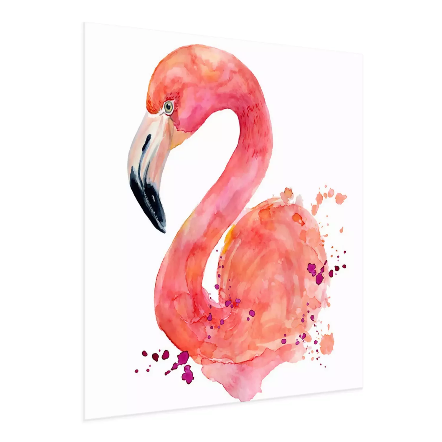 Poster: Waterverfflamingo op een witte achtergrond
