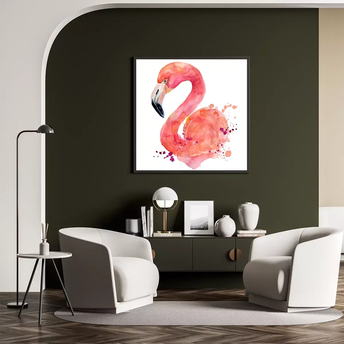 Aquarel flamingo's en vogelveren
