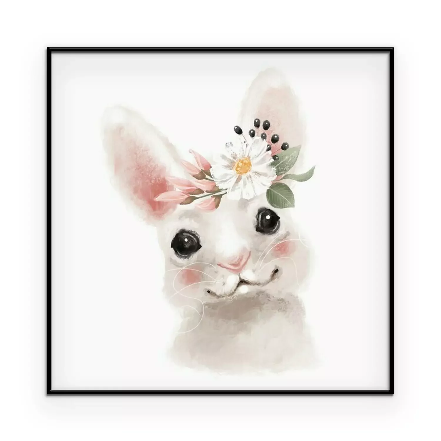 Poster: Waterverfkonijntje met een bloem op het hoofd