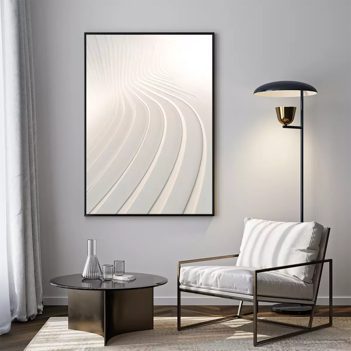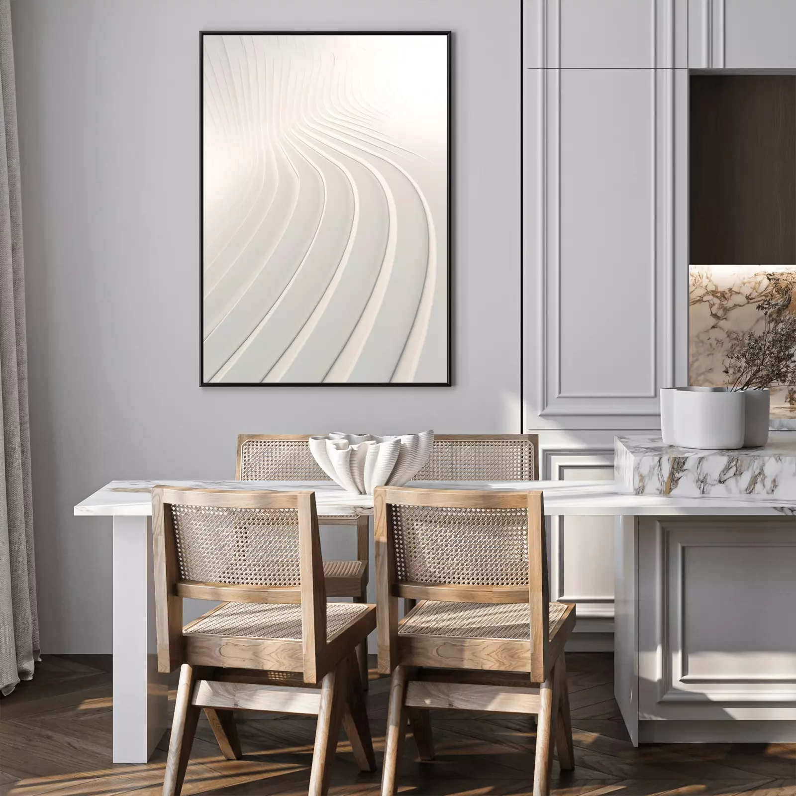 Poster: Wave bend white abstract background surface. Digital illustration. 3d rendering