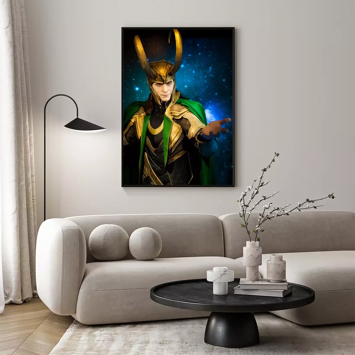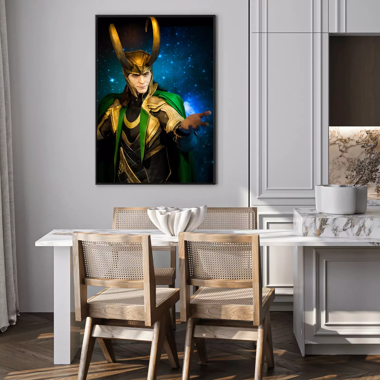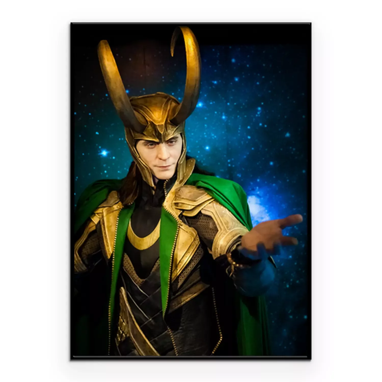 Poster: Wax figure of Loki fictional character from American comic books in Madame Tussauds Wax museum in Amsterdam, Netherlands