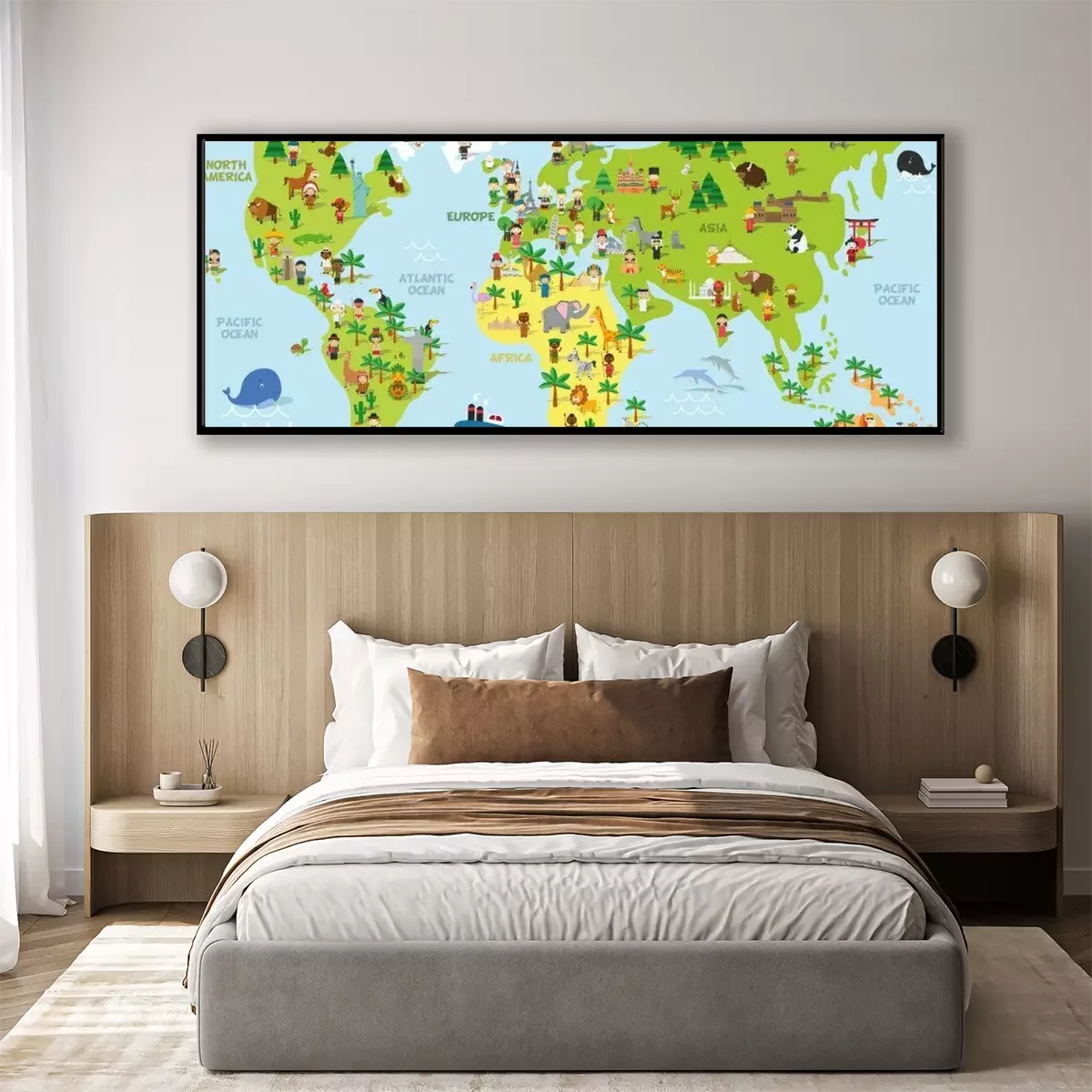 Poster: Wereldkaart met dieren die op continenten leven