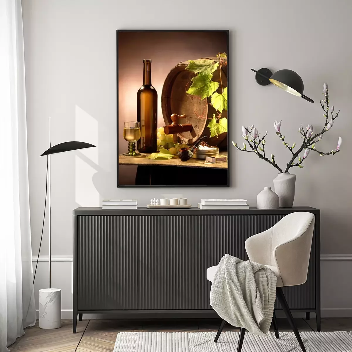 Poster Wijnmakerij met witte wijn