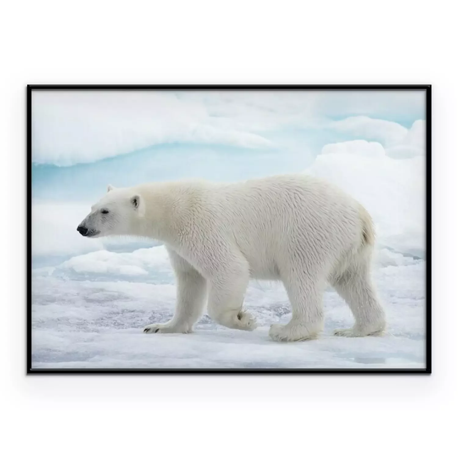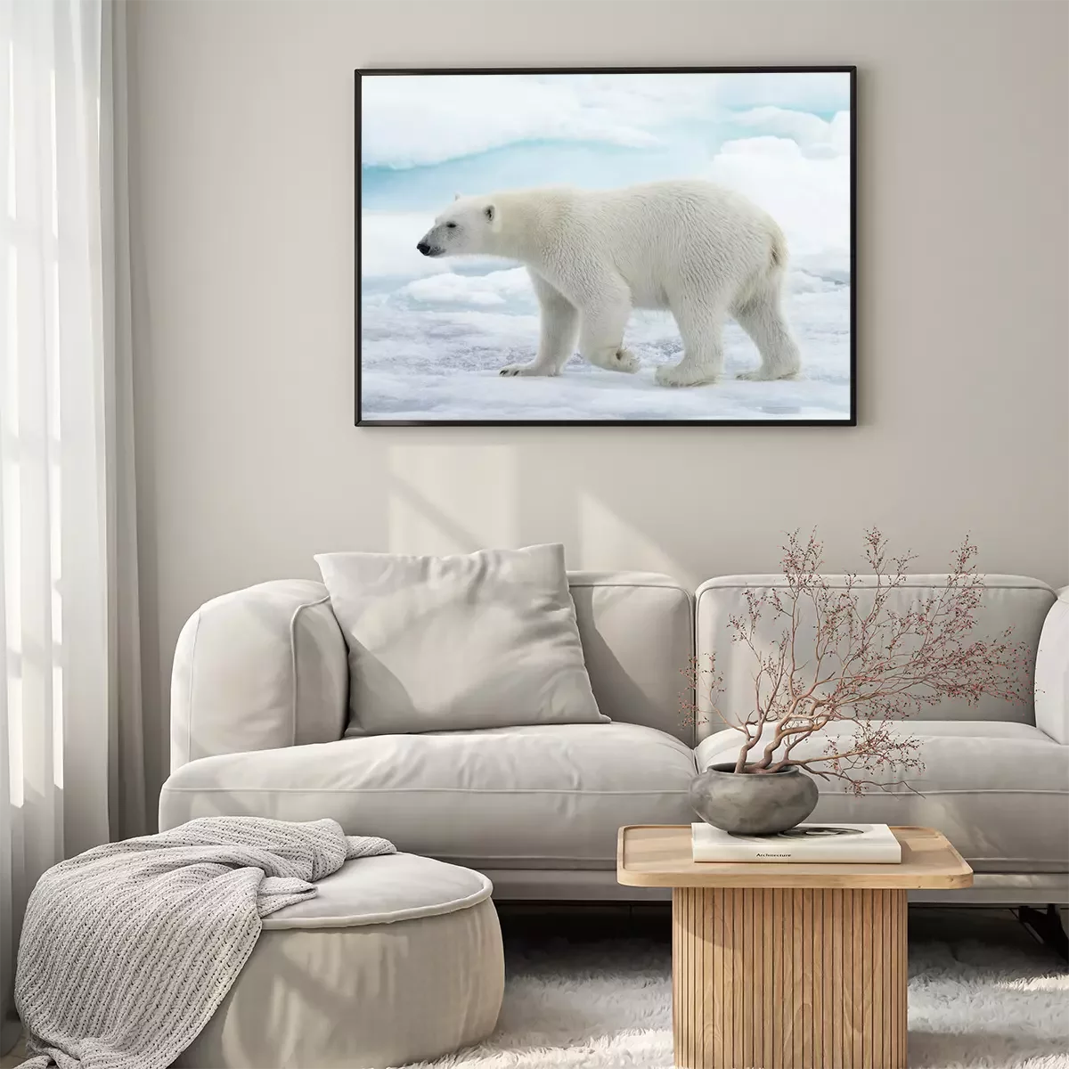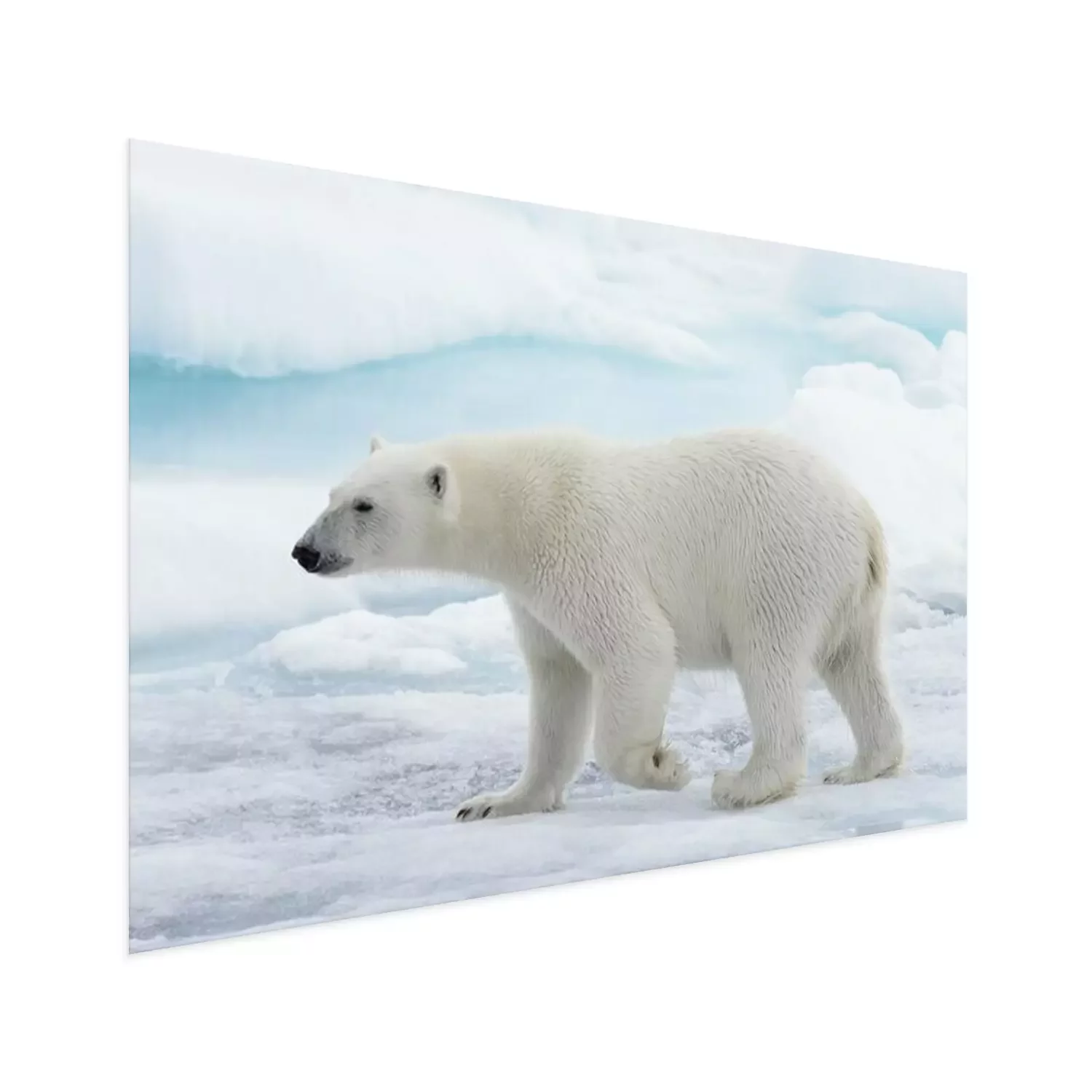 Poster: Wilde ijsbeer die in water op pakijs gaat in Noordpooloverzees