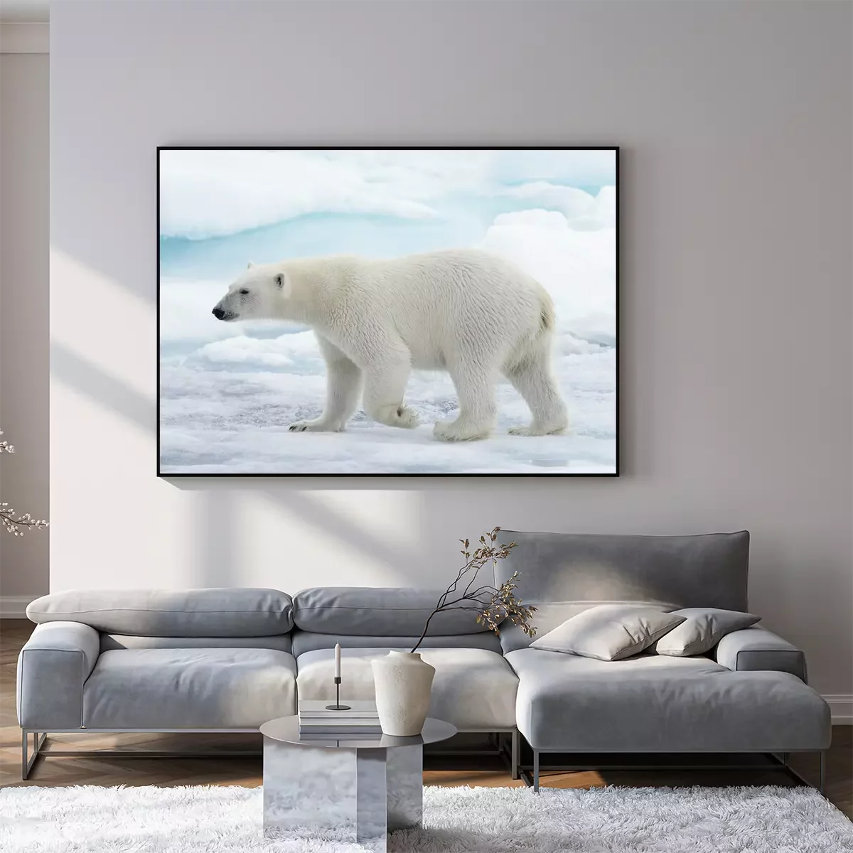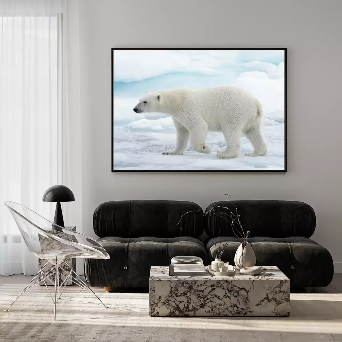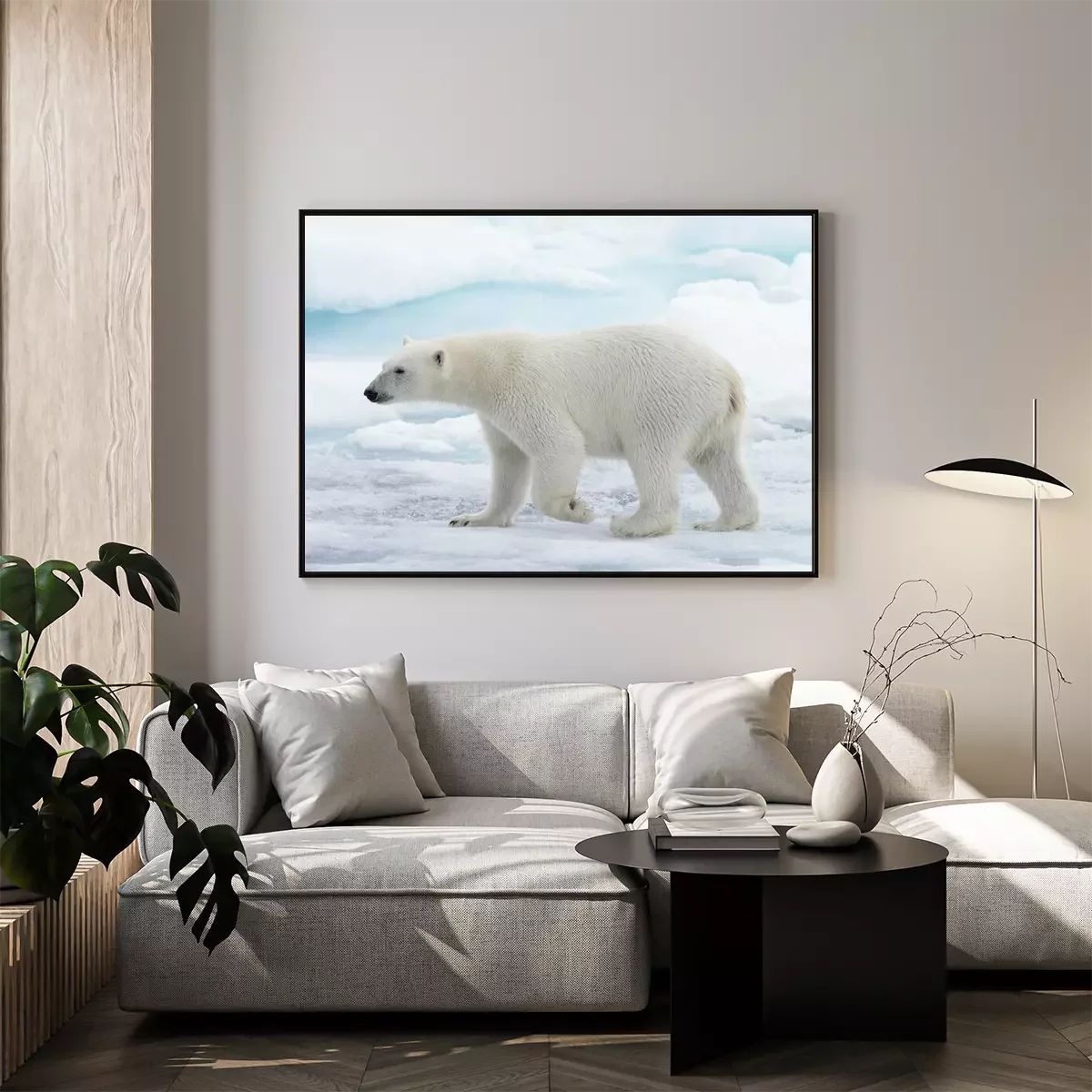 Poster: Wilde ijsbeer die in water op pakijs gaat in Noordpooloverzees