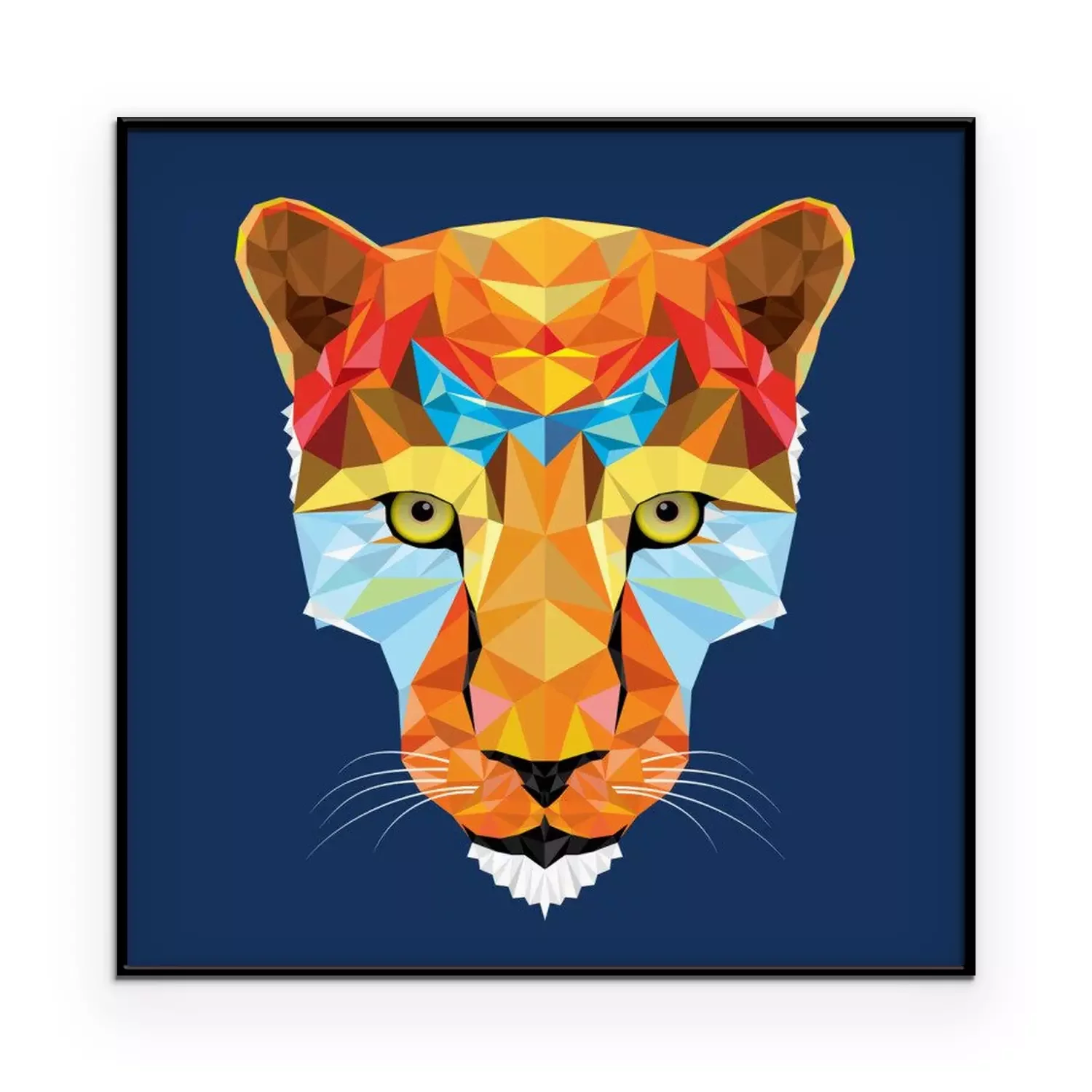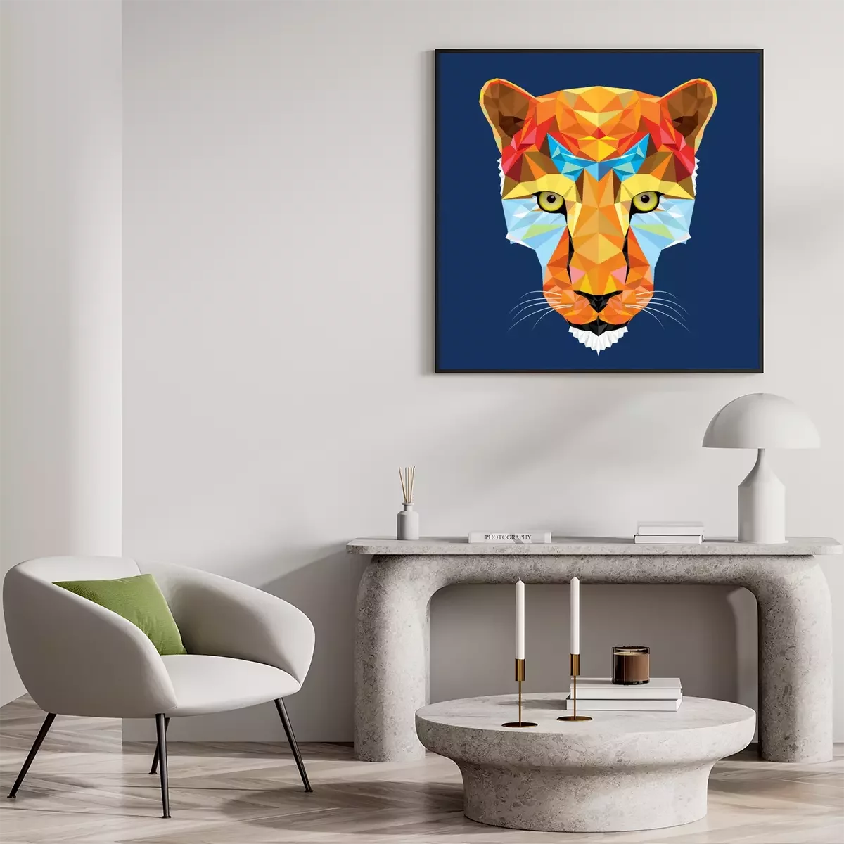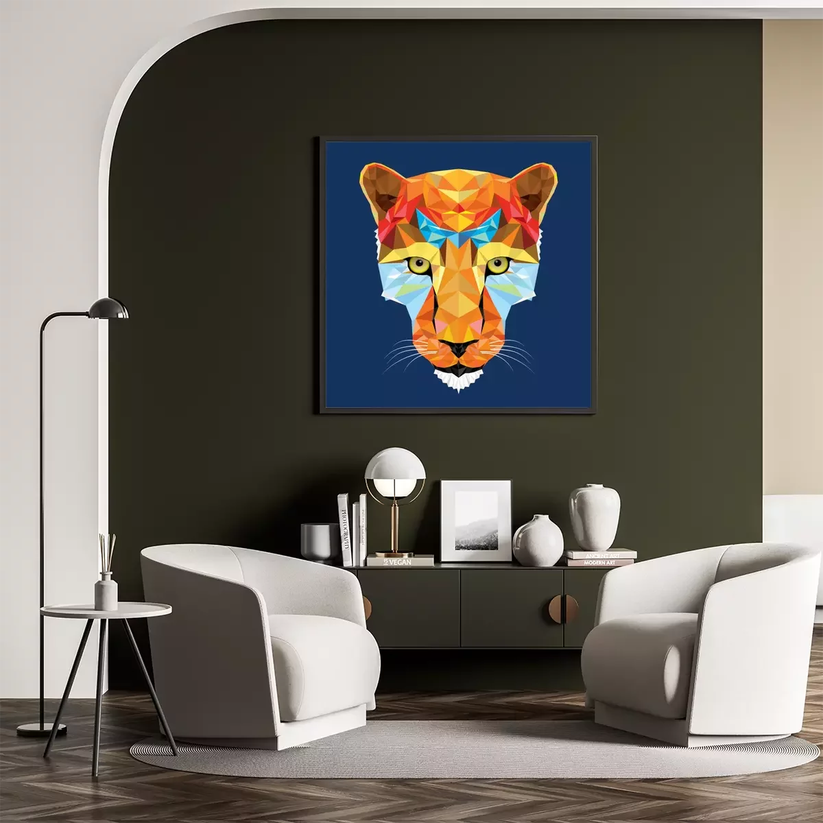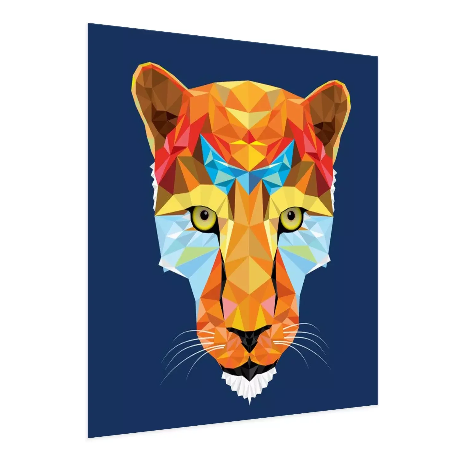 Poster: wilde kat luipaard in geometrisch patroon, vector