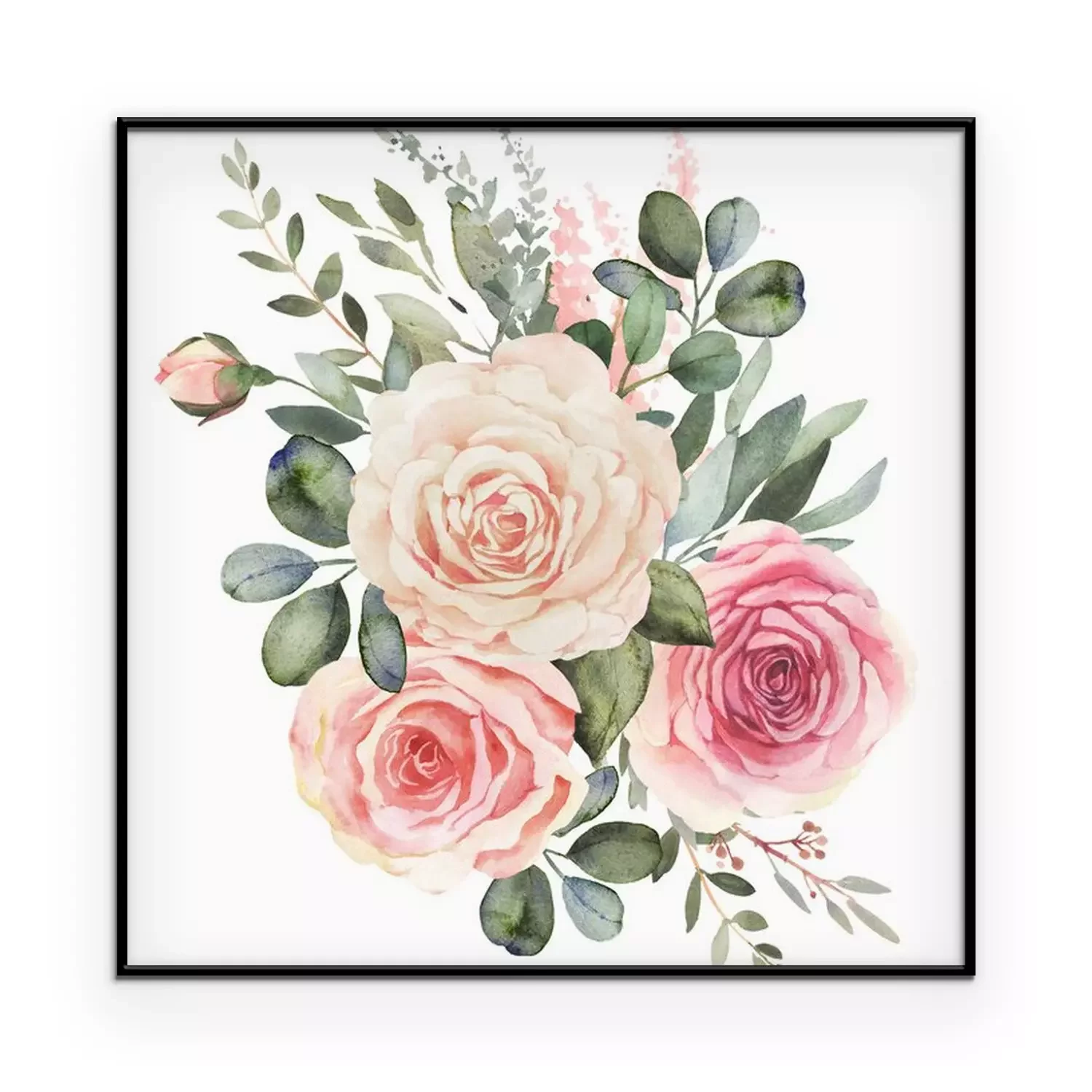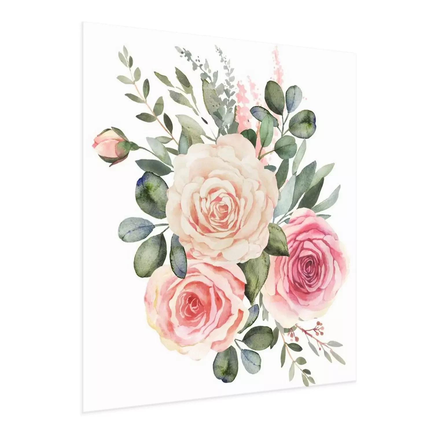 Witte rozen, thee en roze geschilderd met waterverf