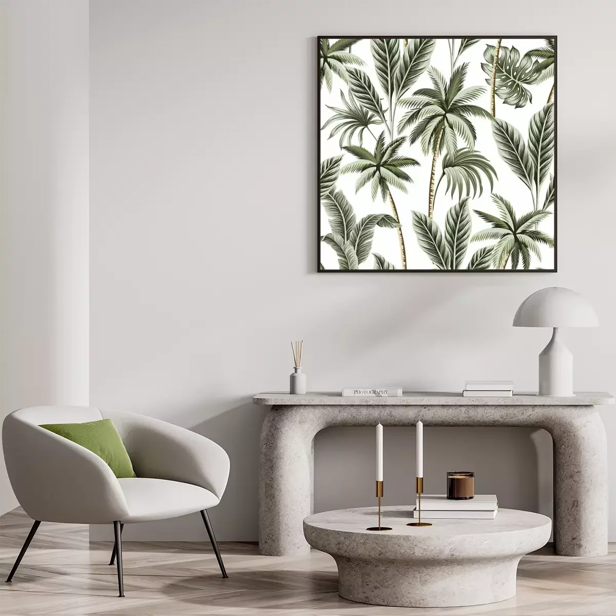 Tropical floral dried palm leaves seamless pattern white background. Exotic jungle wallpaper.