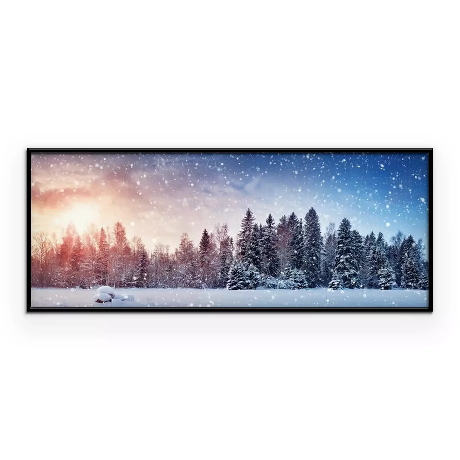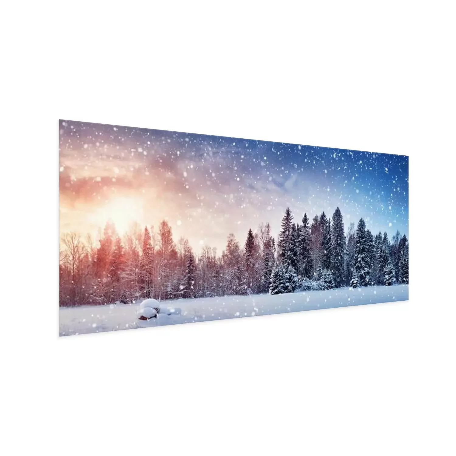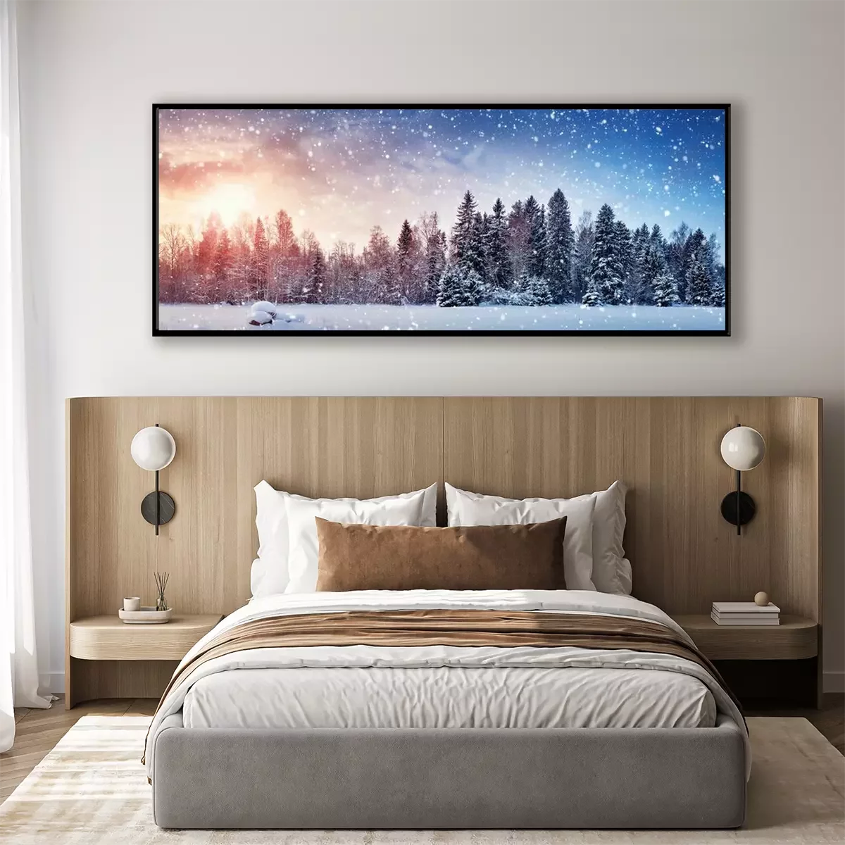 Pine bomen bedekt met sneeuw op ijzige avond. Prachtig winterpanorama