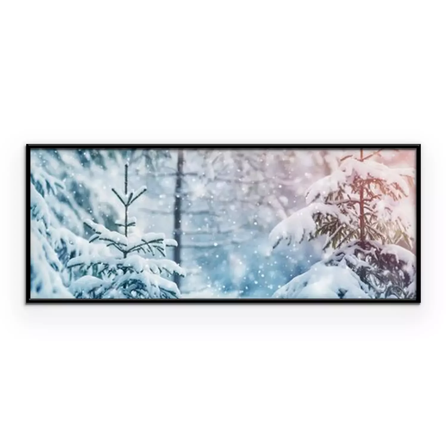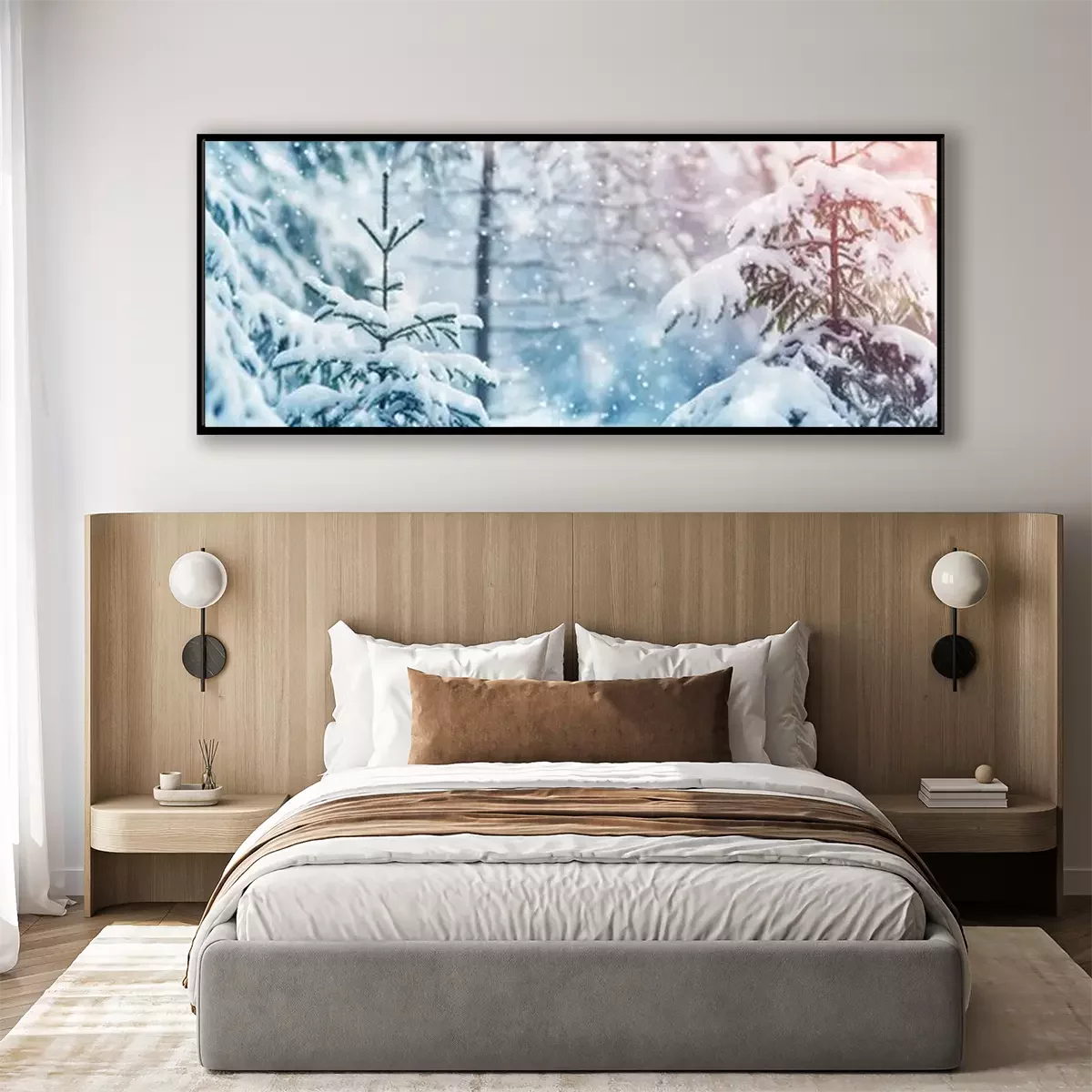 Pine bomen bedekt met sneeuw op ijzige avond. Prachtig winterpanorama