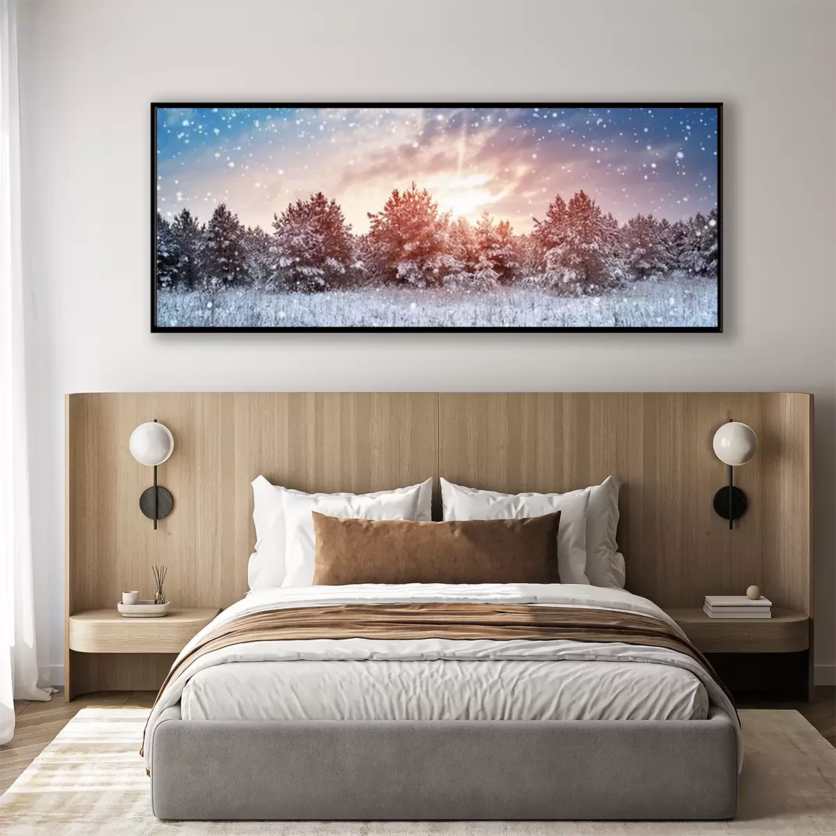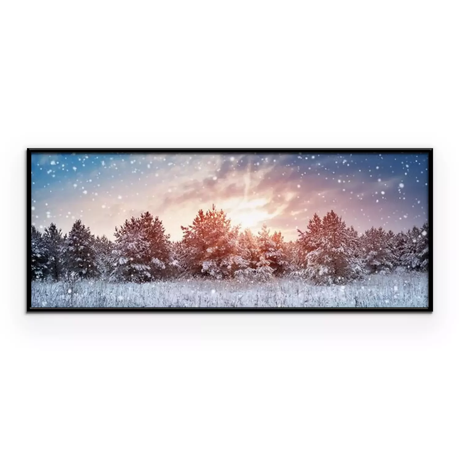 Pine bomen bedekt met sneeuw op ijzige avond. Prachtig winterpanorama