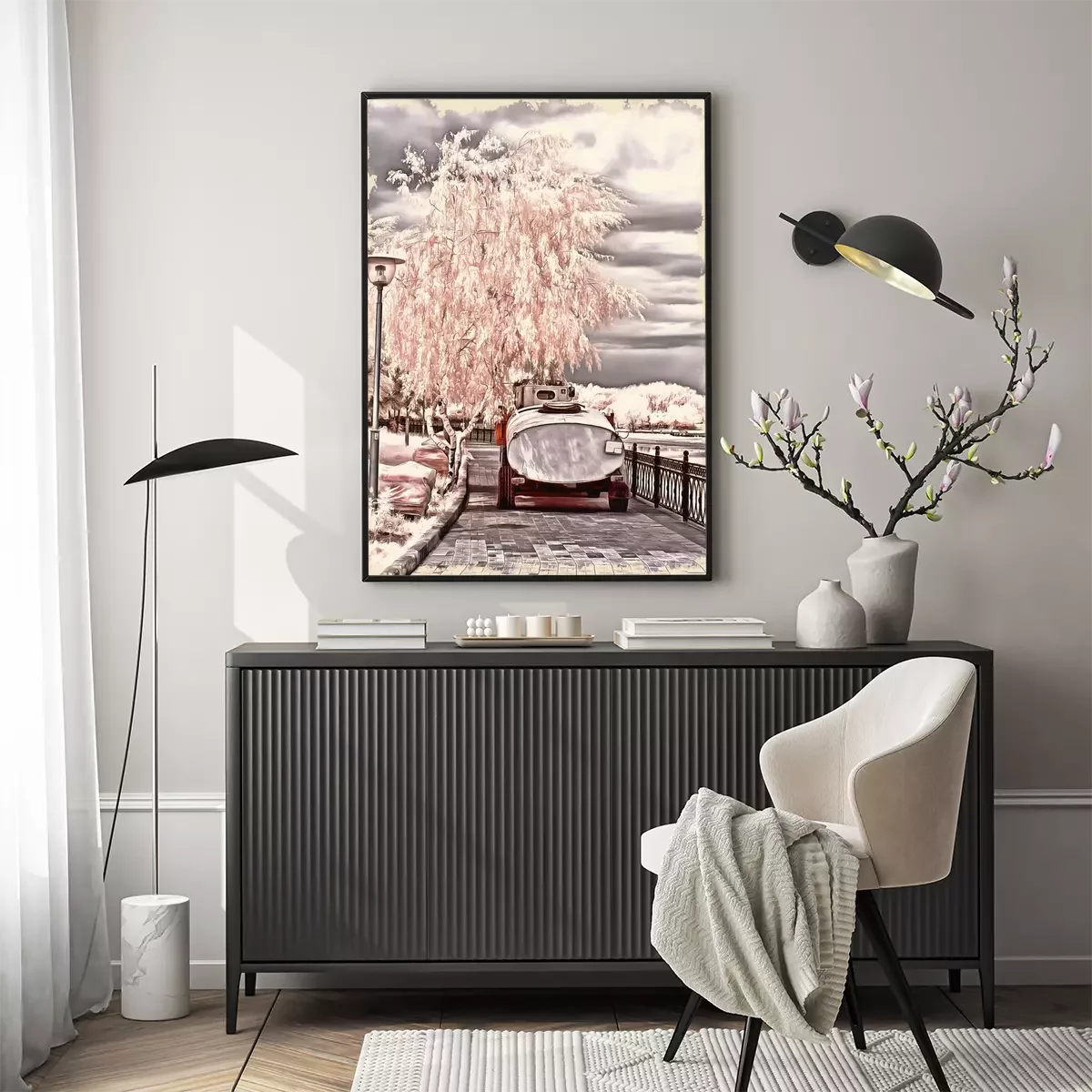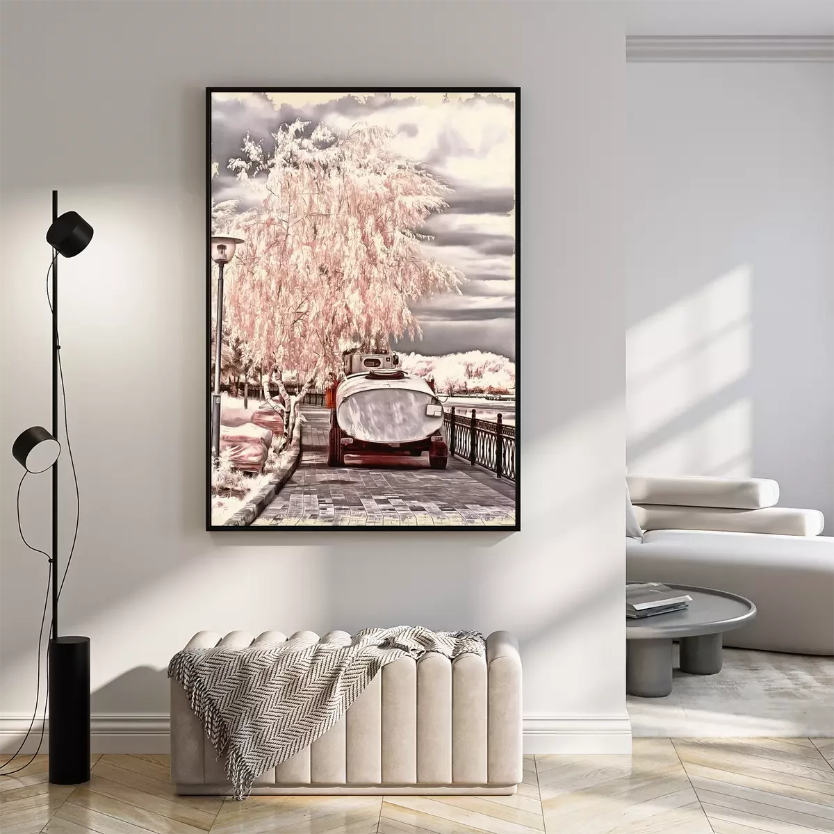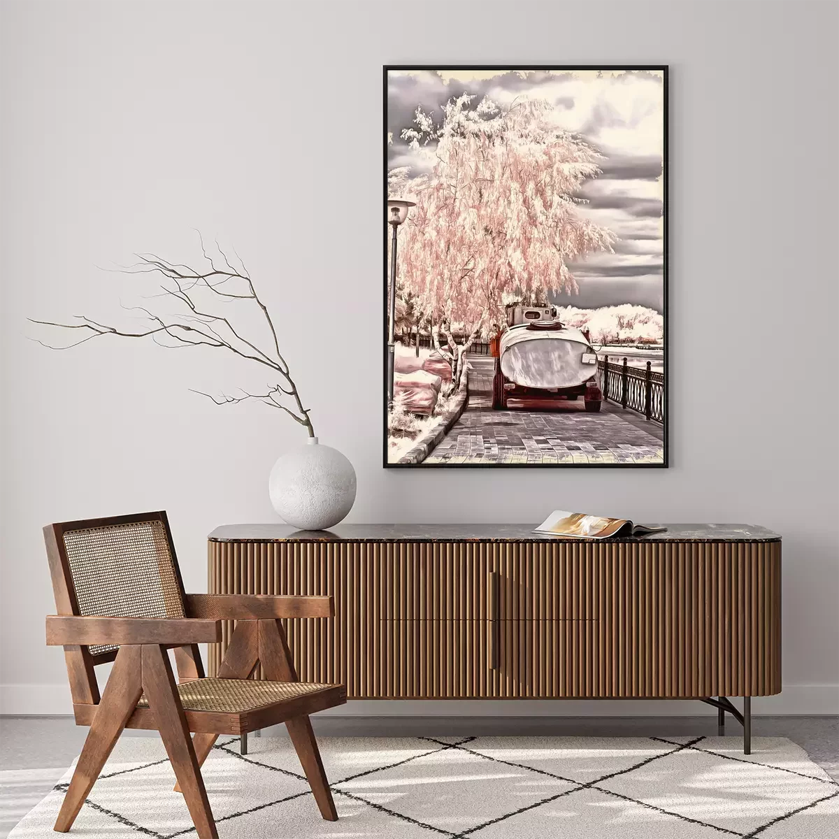 Poster: Winterse berken in lichte kleuren