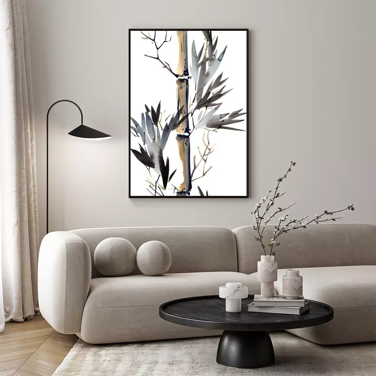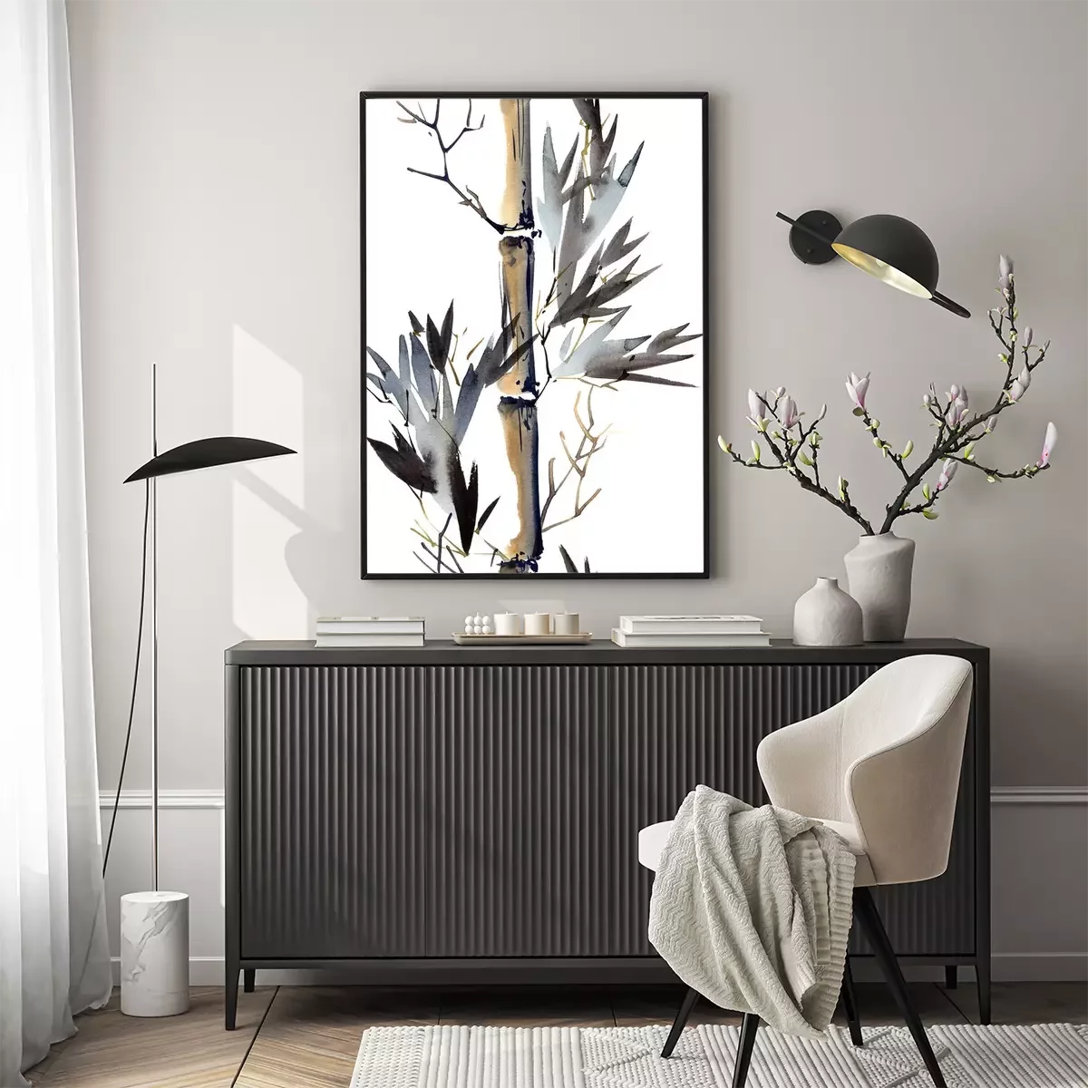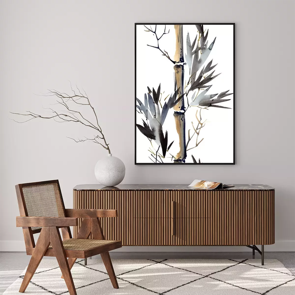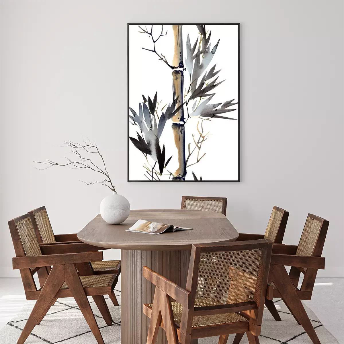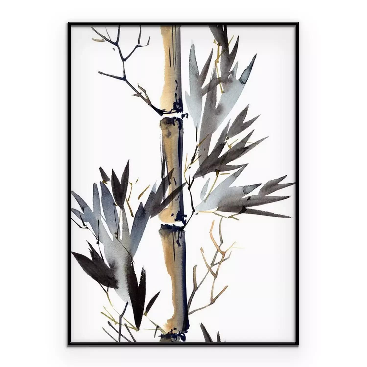 Poster: Wit achtergrond bedekt met aquarel bamboestengels