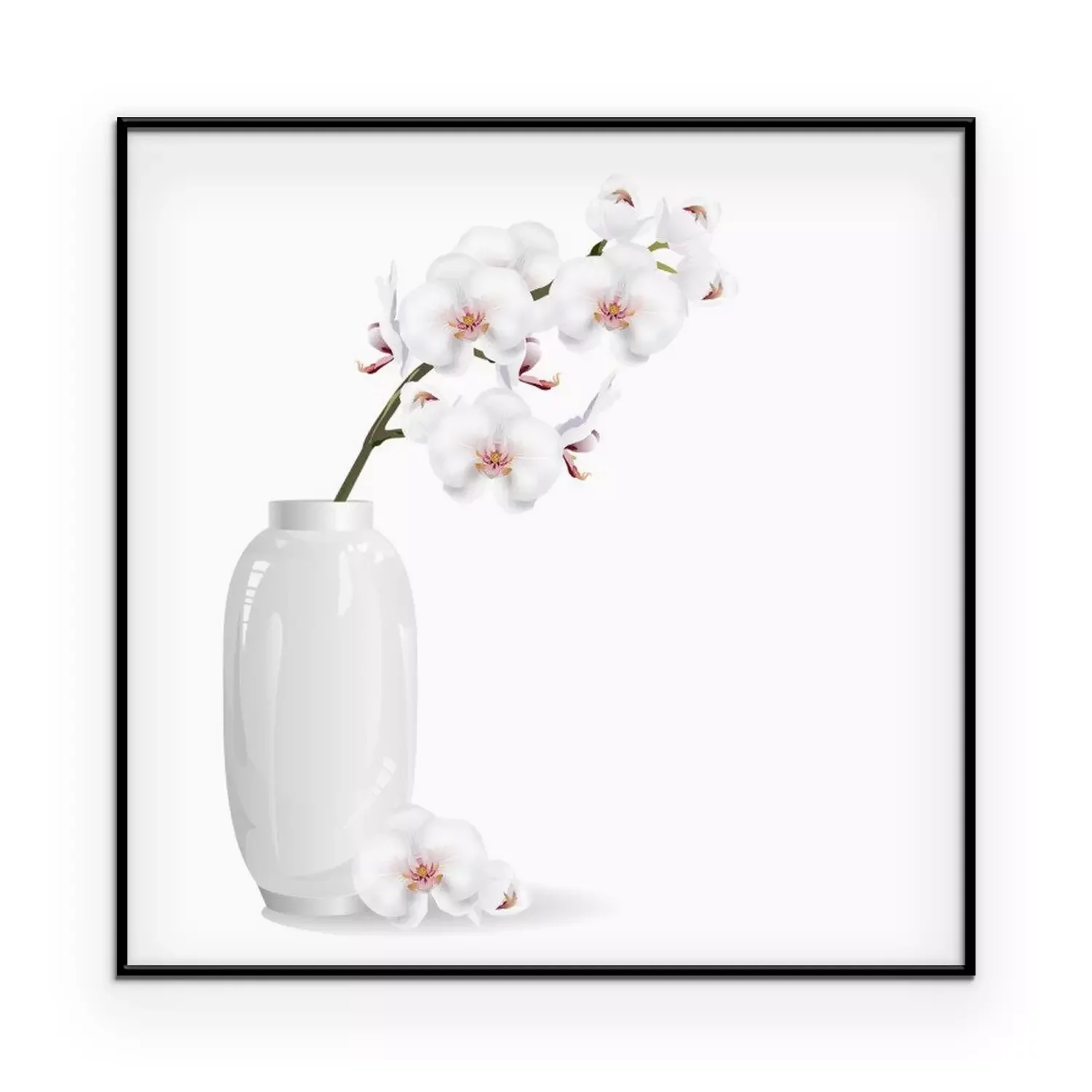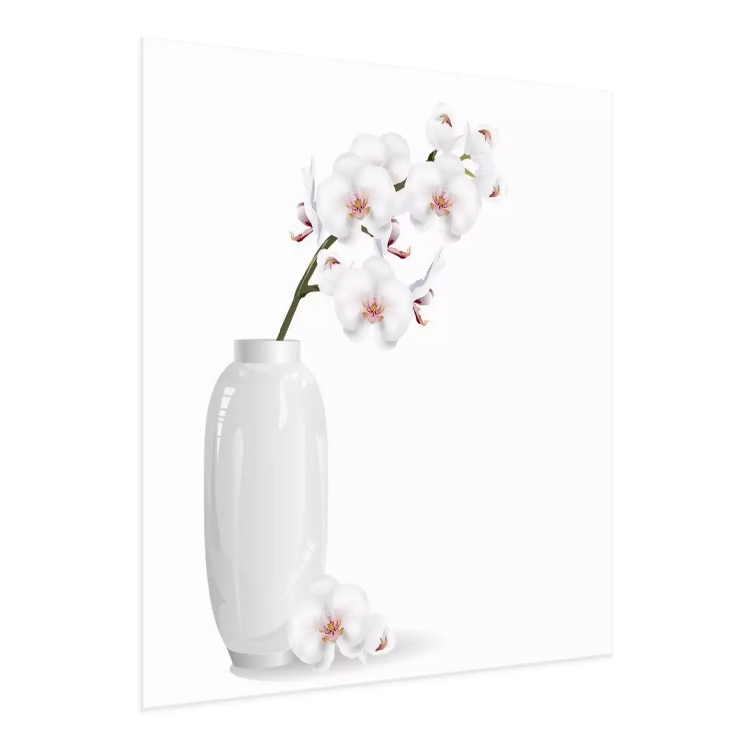 Poster: Wit orchideeëntakje in een glimmende vaas