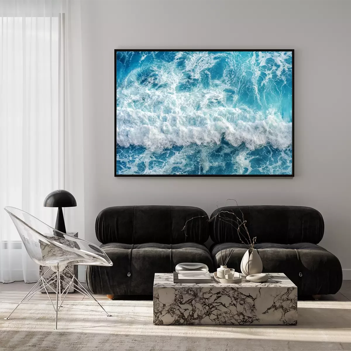 Poster: Wit schuim op de zee