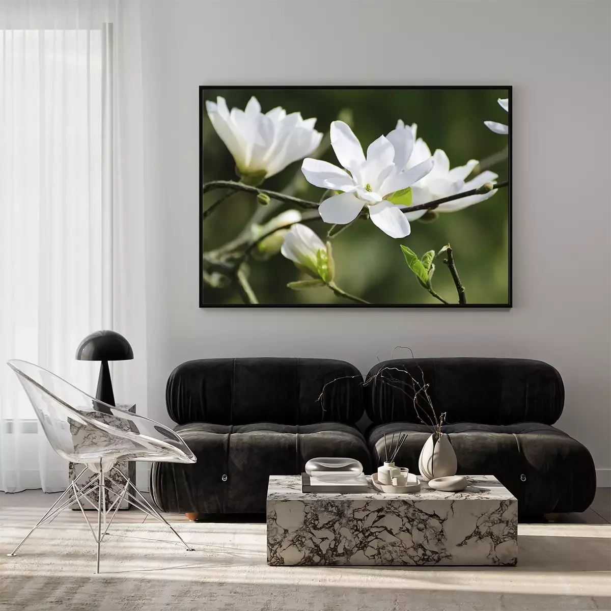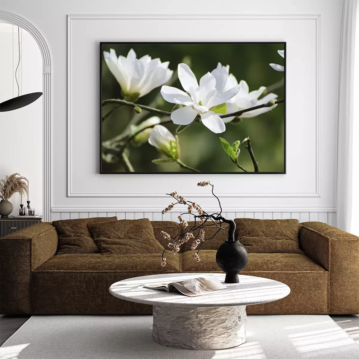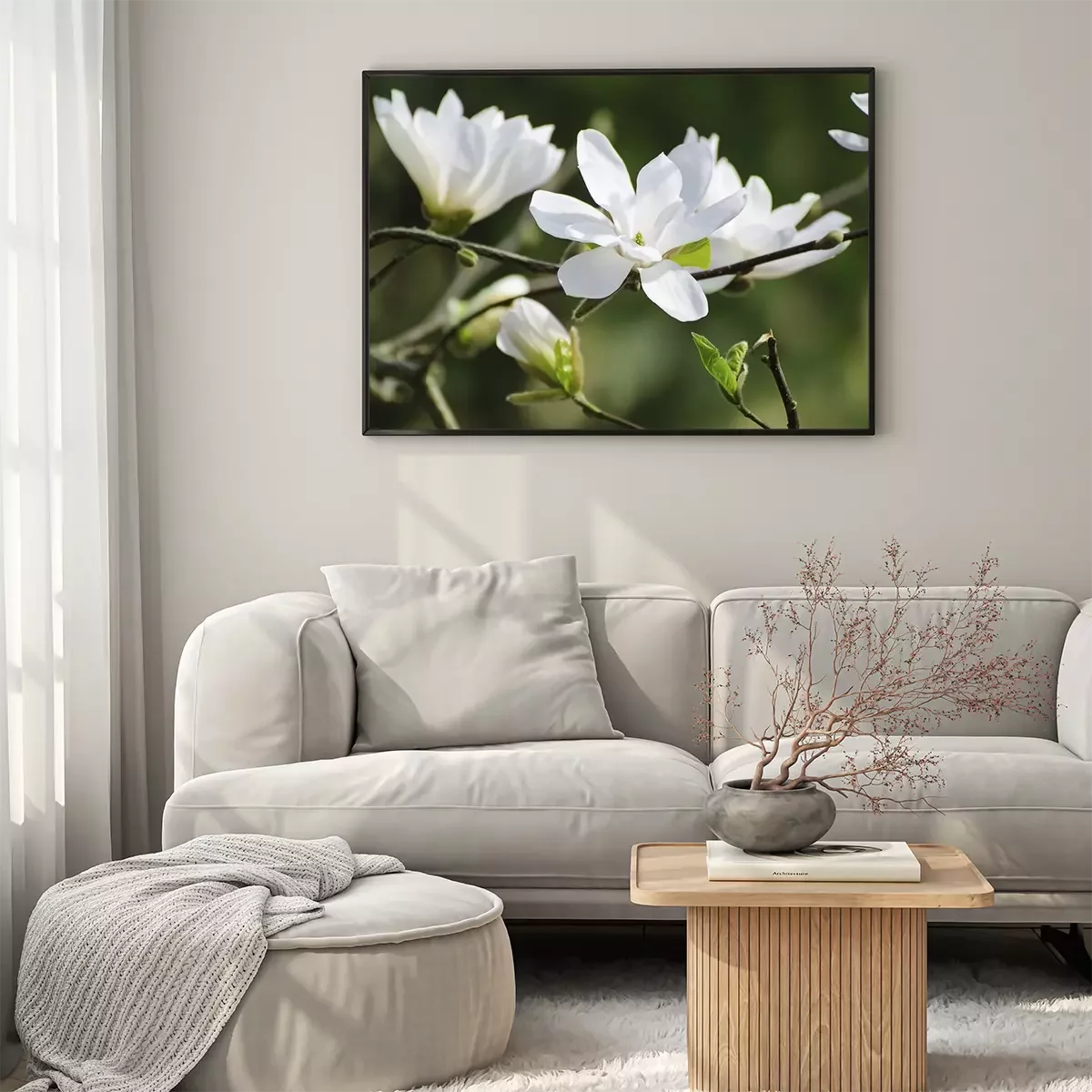 Poster Witte bloemen met opengevouwen bloemblaadjes