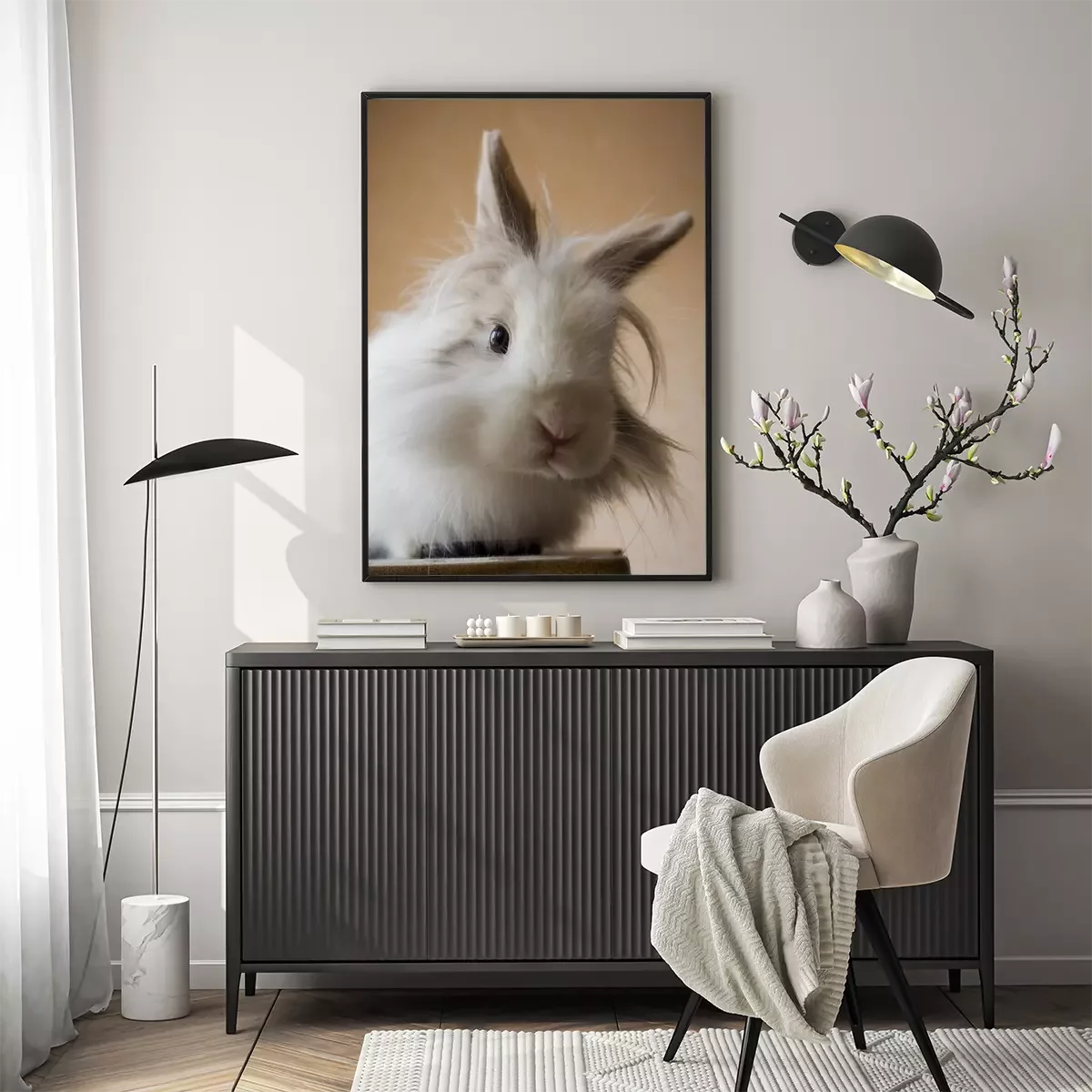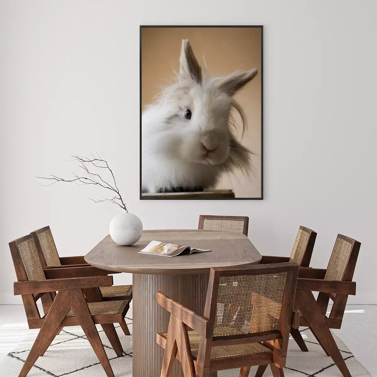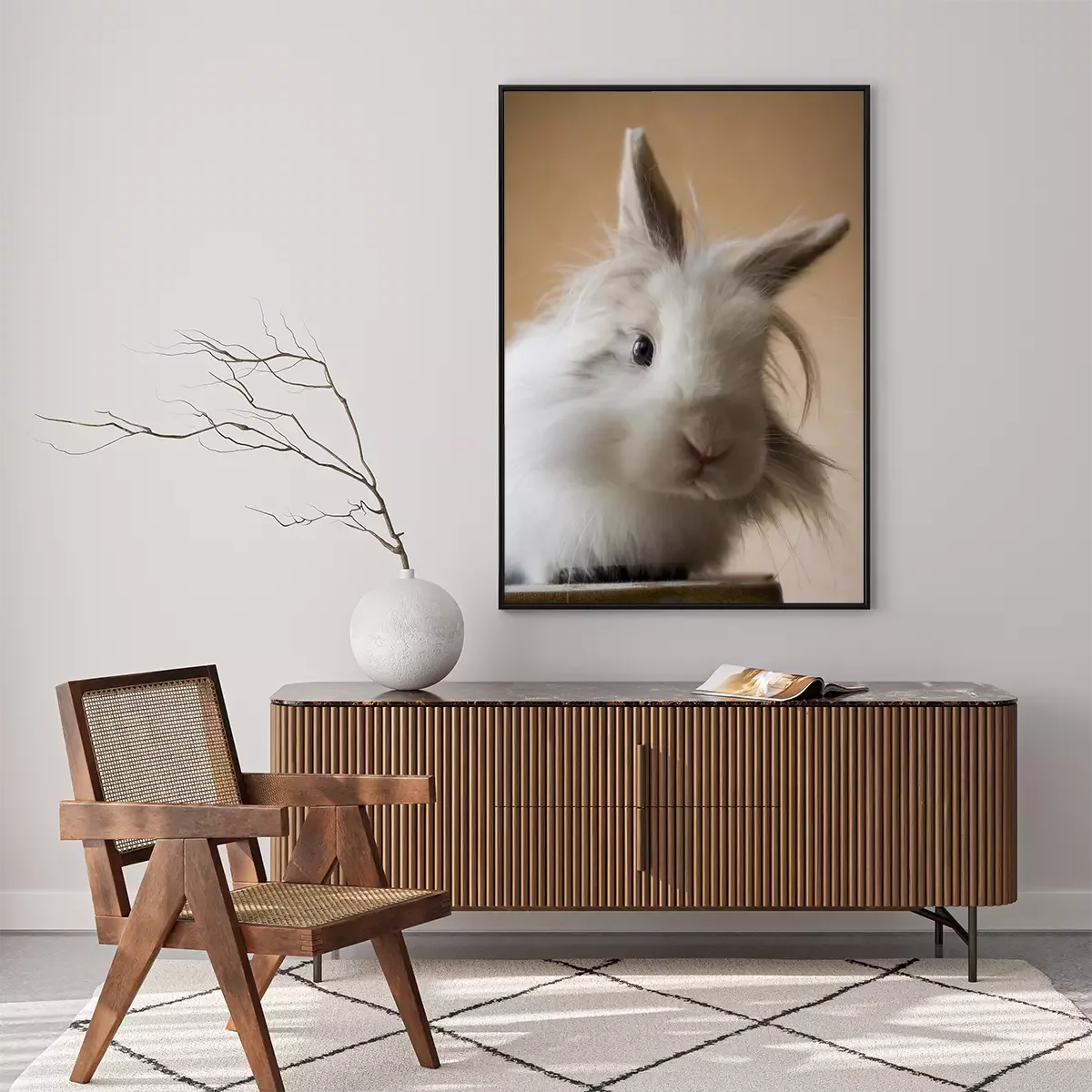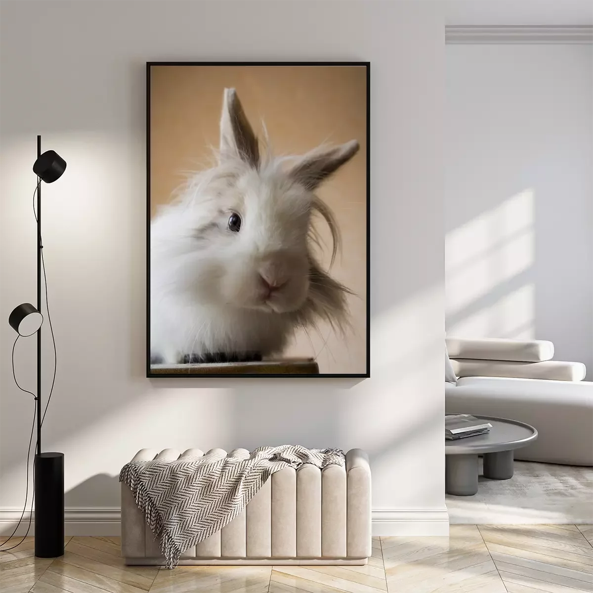 Poster Witte leeuwenkop konijn