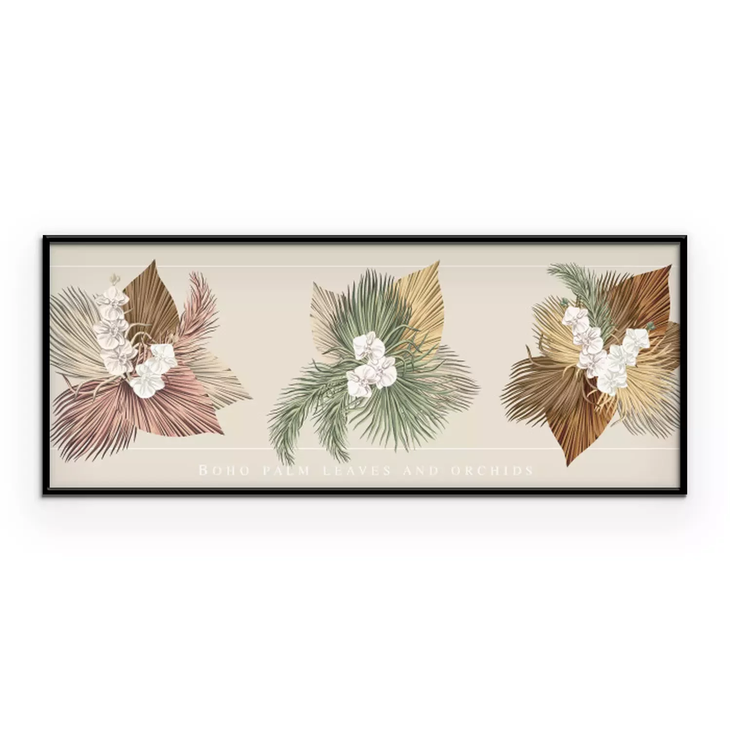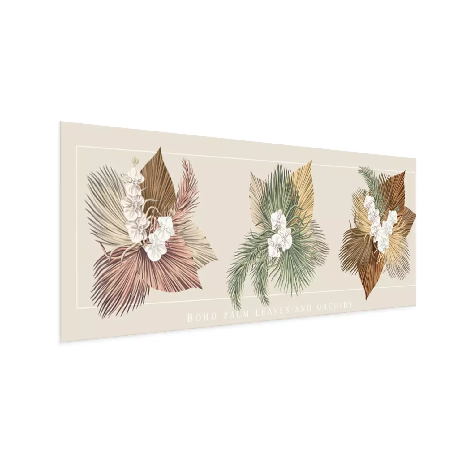 Poster: Witte orchidee en beige bladeren