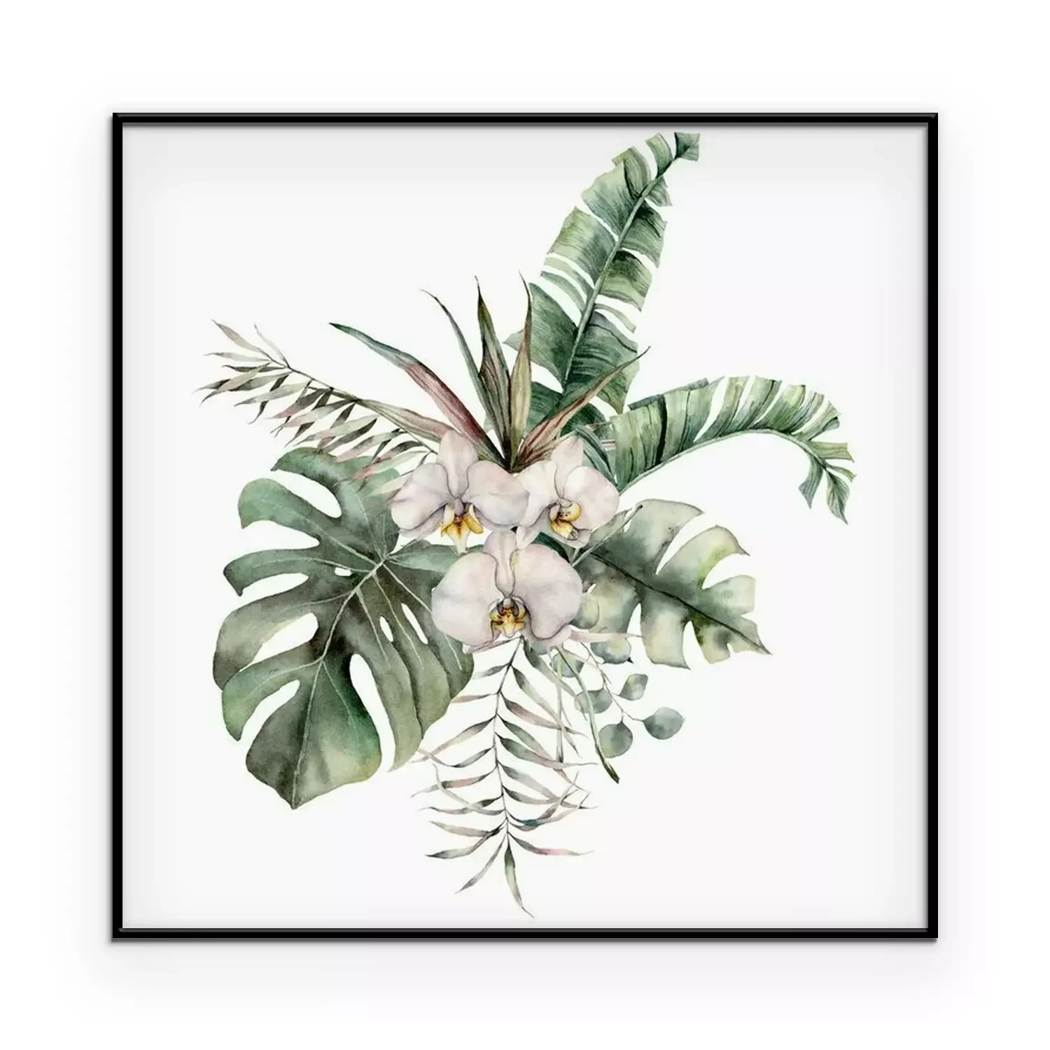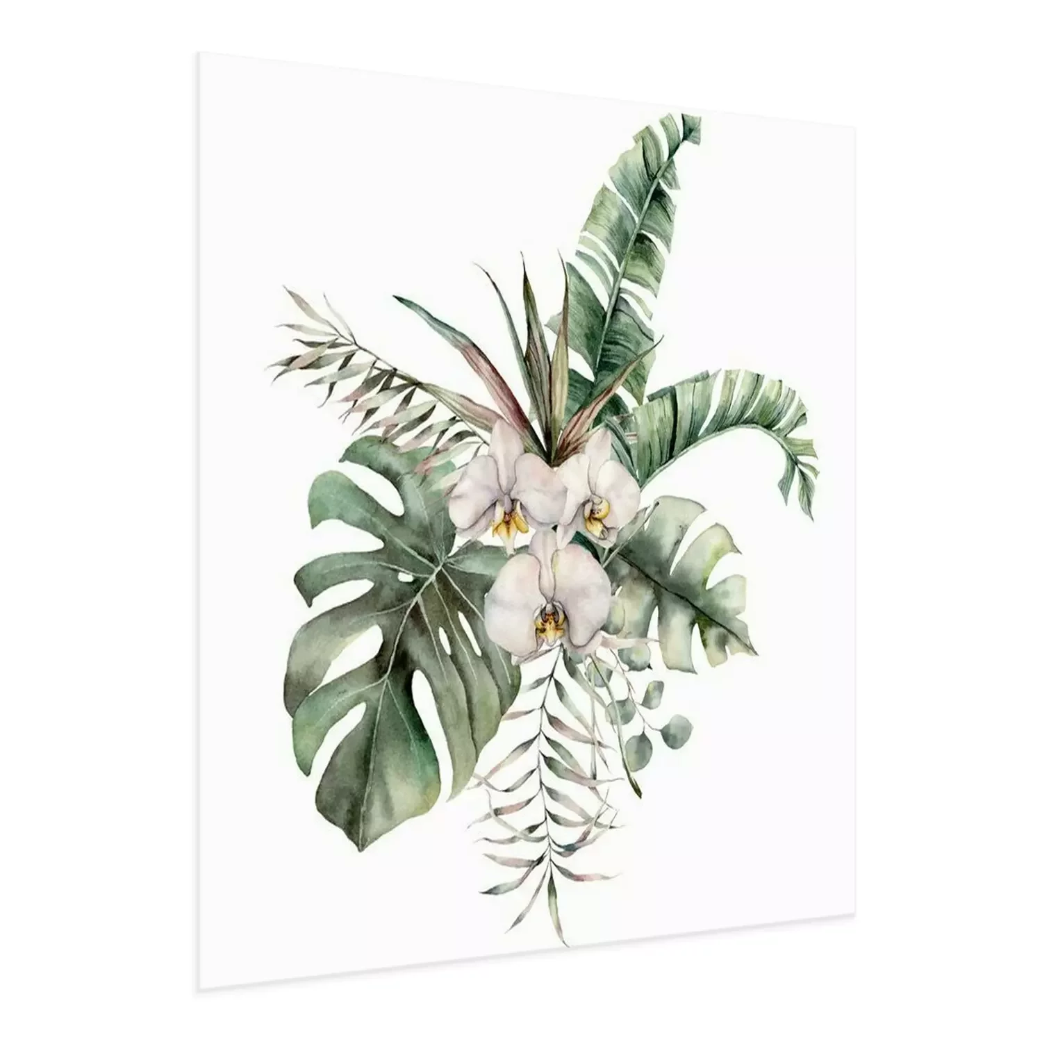 Poster: Witte orchidee op een achtergrond van exotische bladeren
