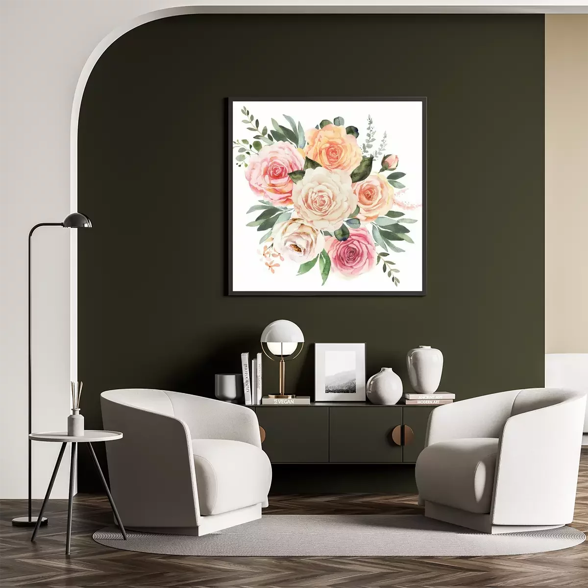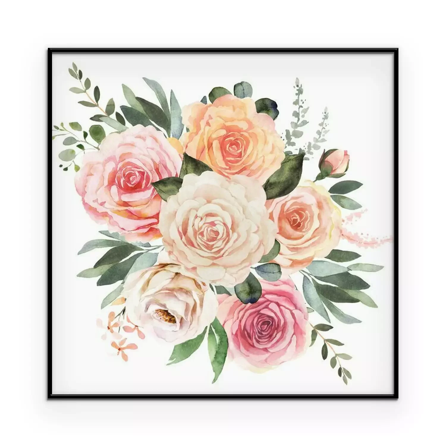 Poster: Witte rozen, thee en roze geschilderd met waterverf