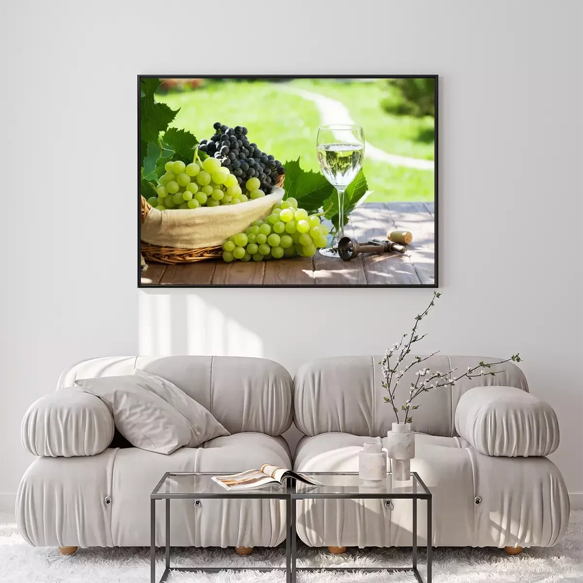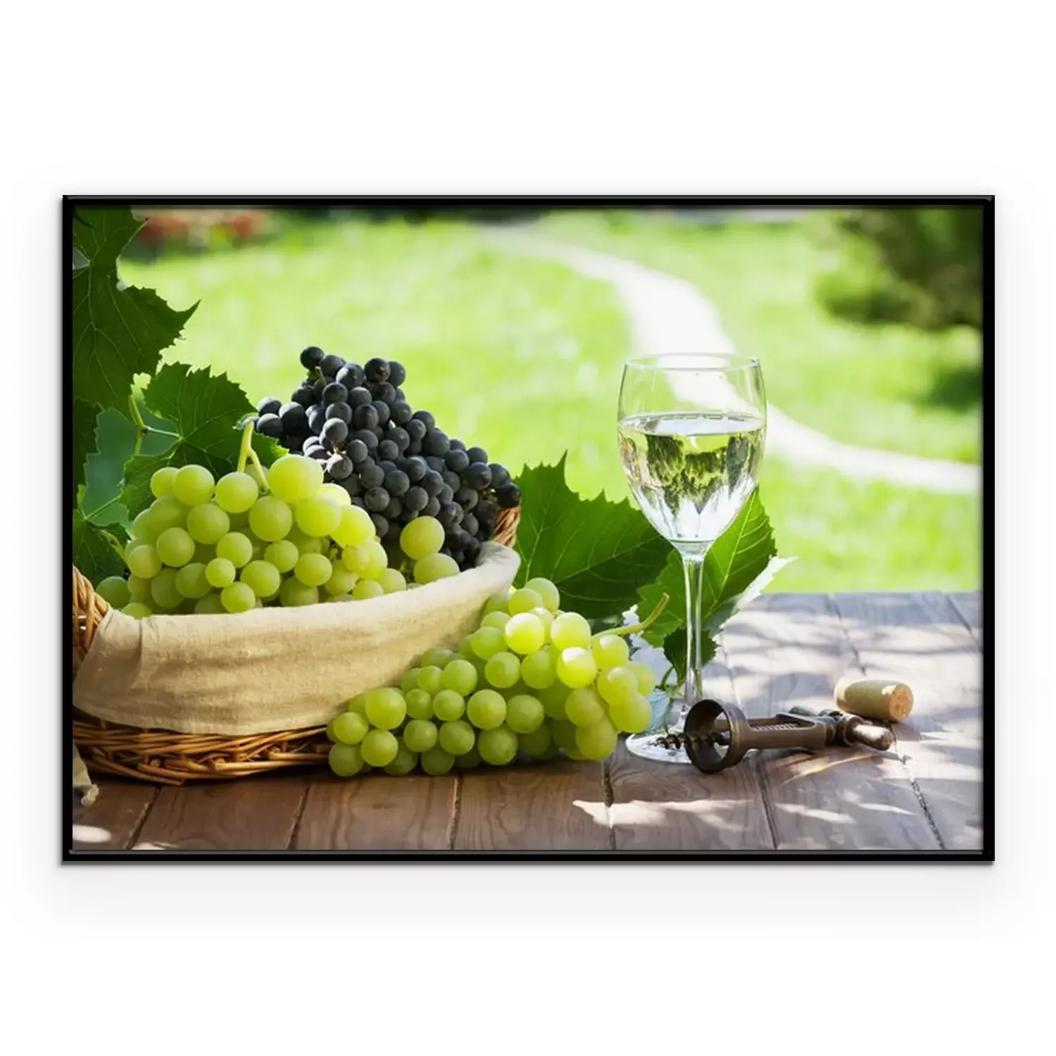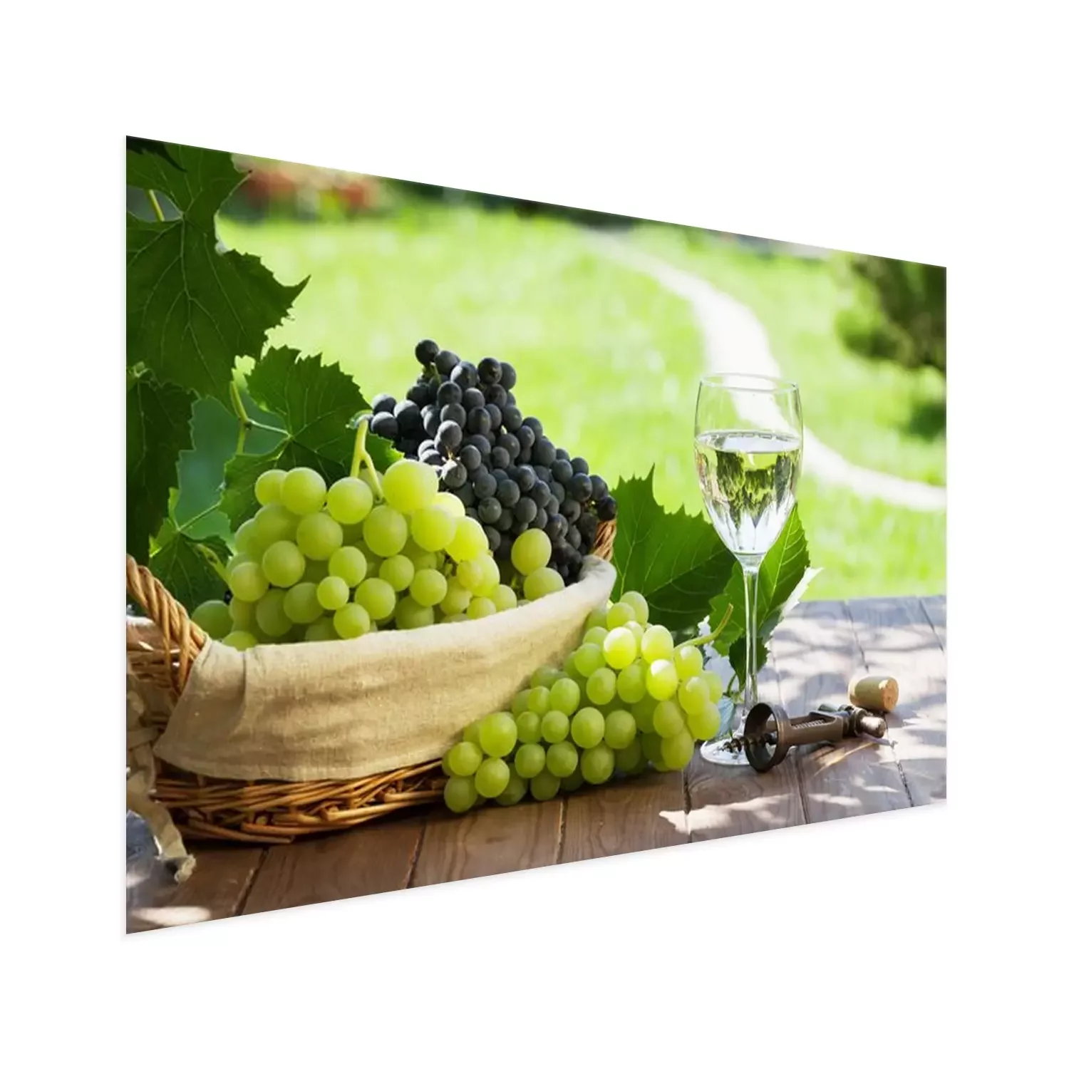 Poster Witte wijn glas, rode en witte druiven