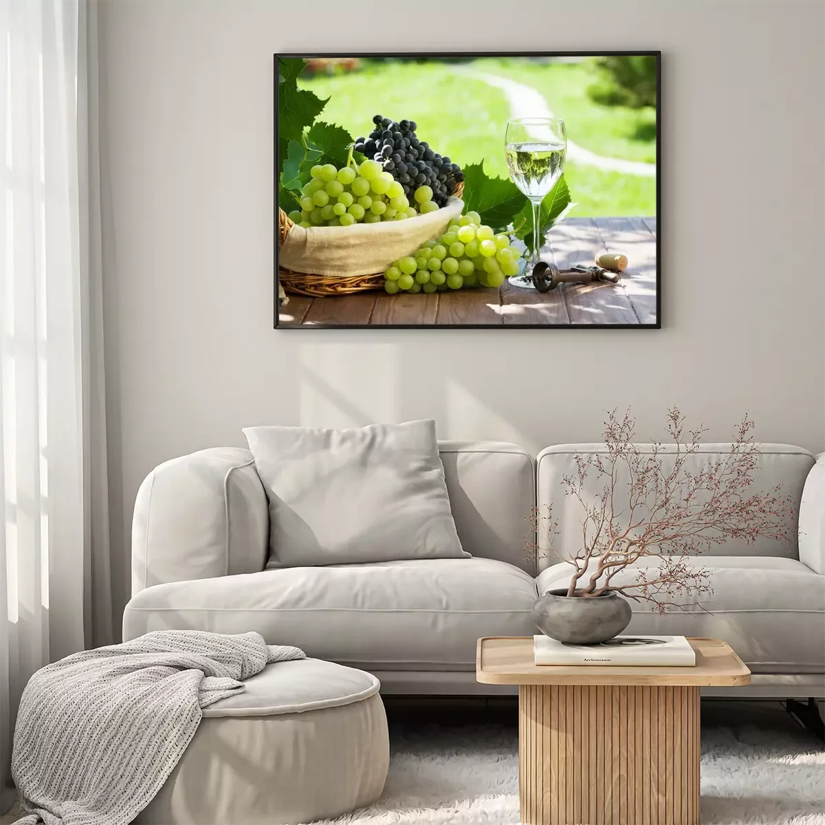 Poster: Witte wijn glas, rode en witte druiven