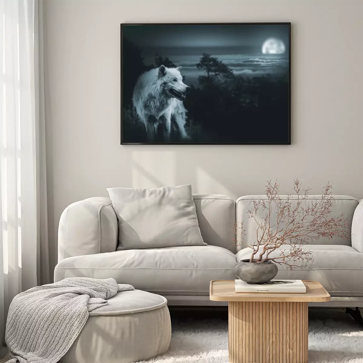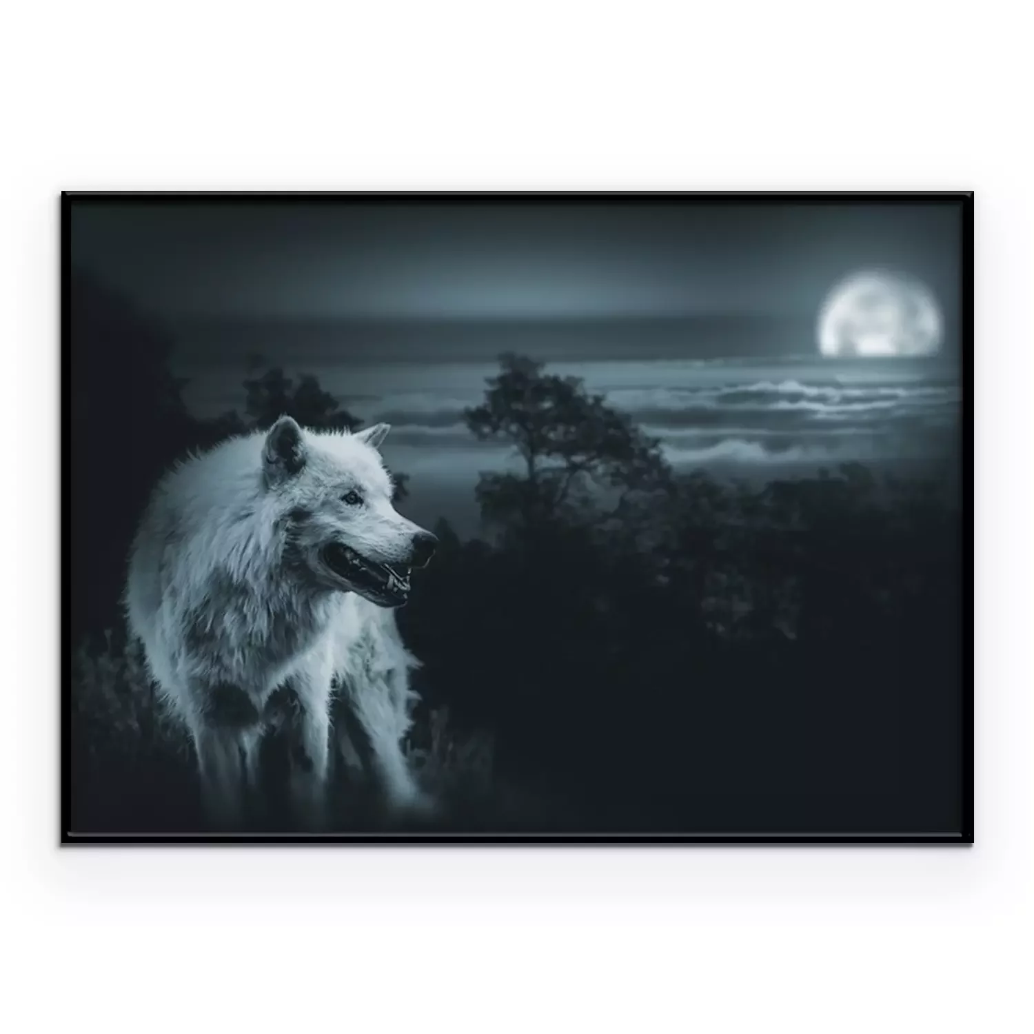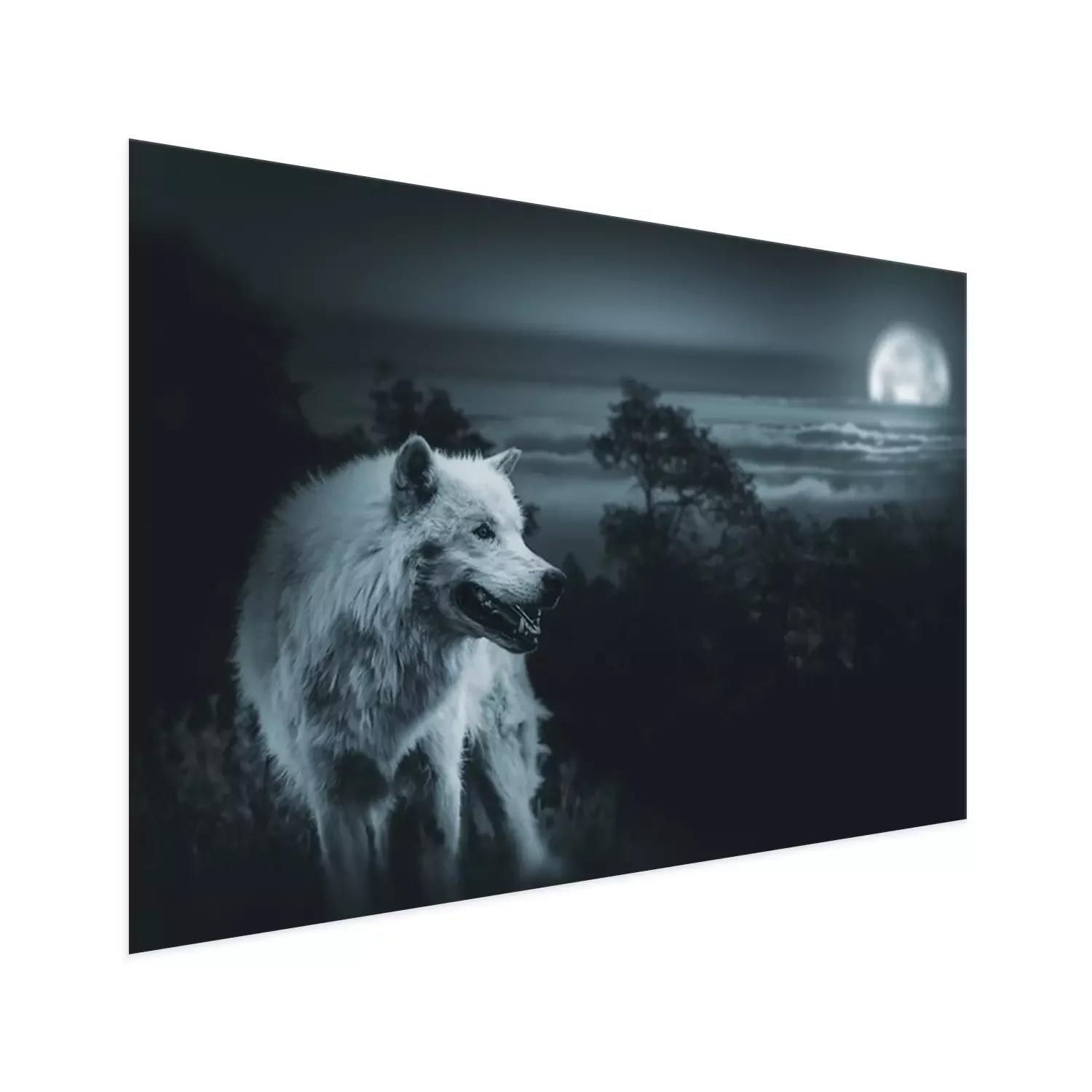 Poster: Witte wolf met de maan