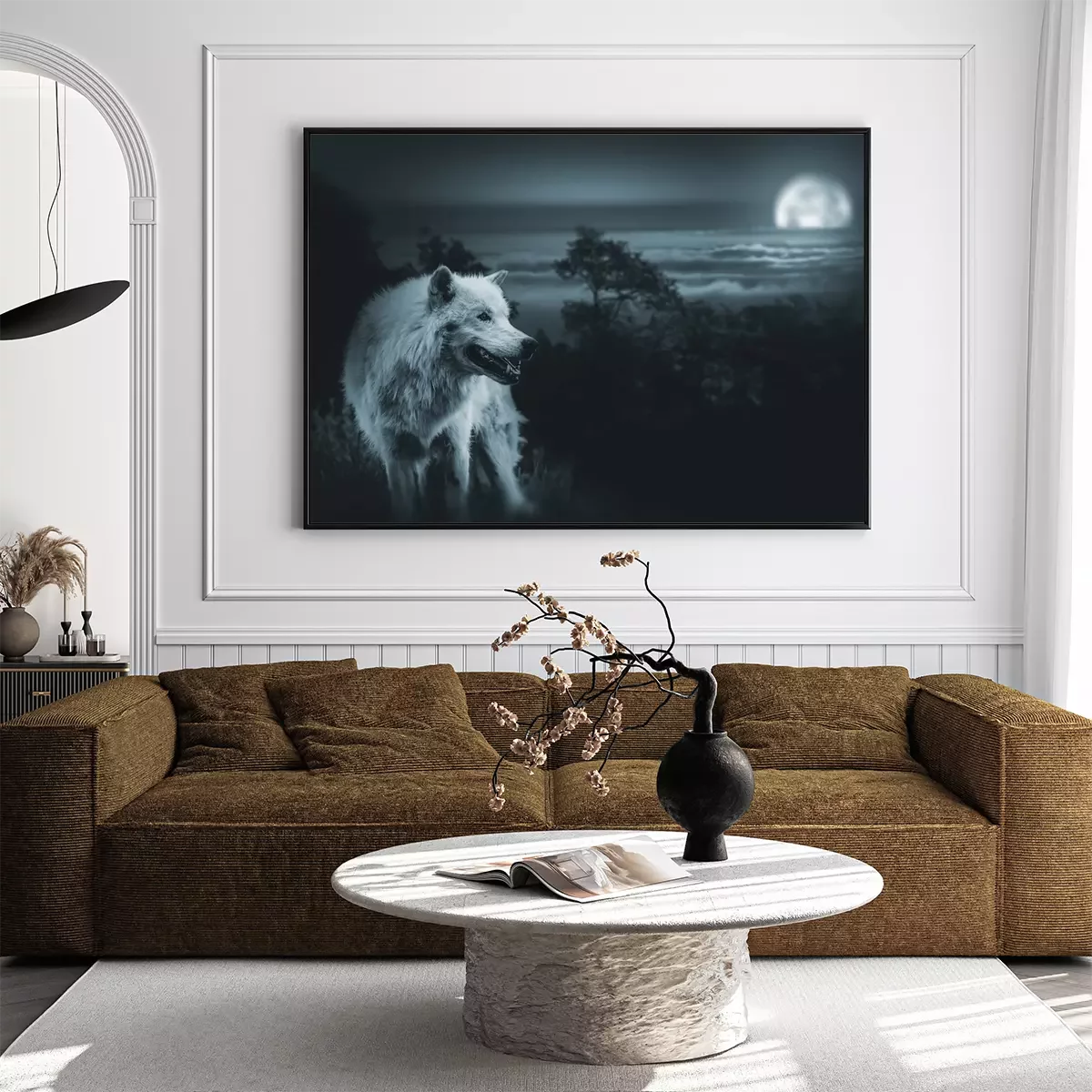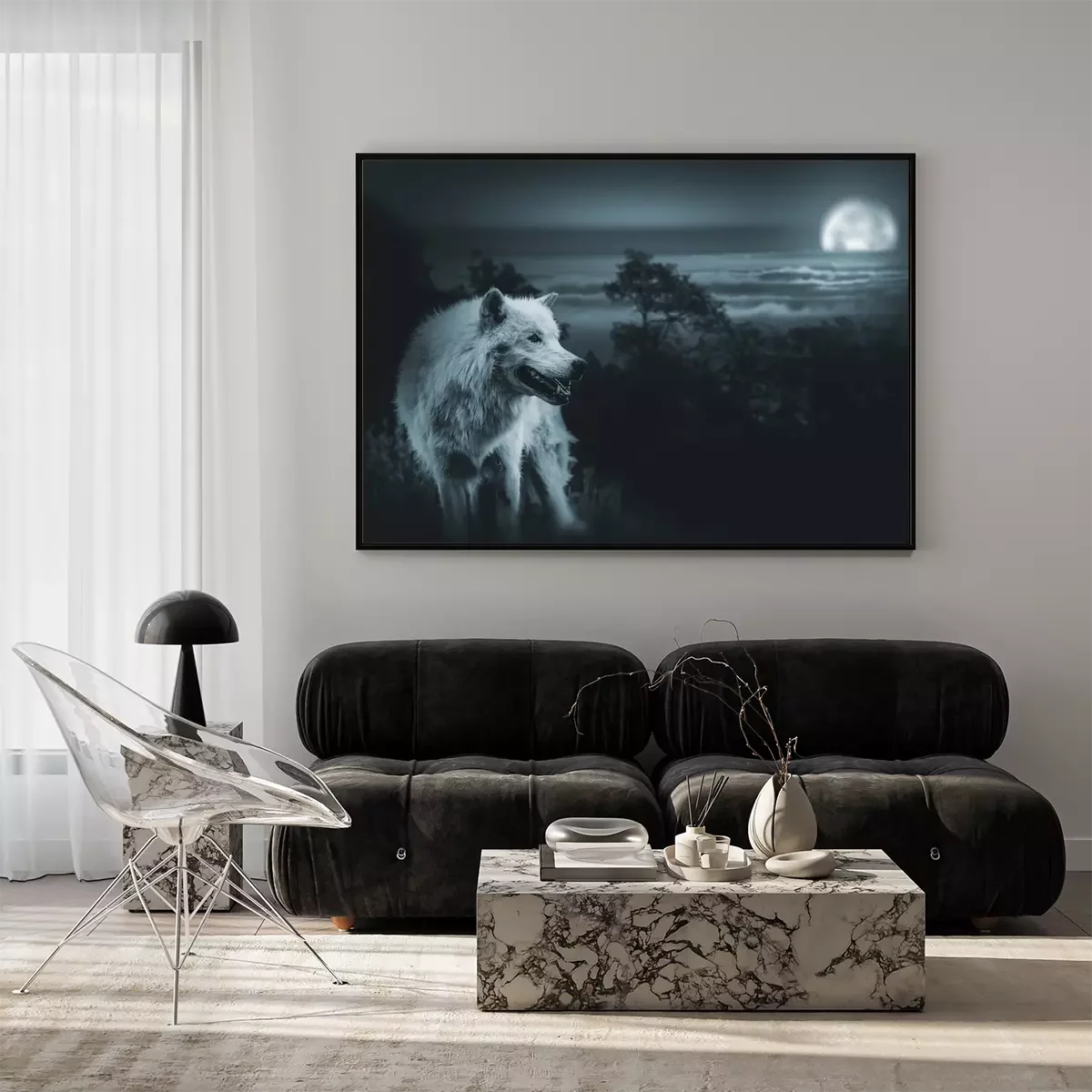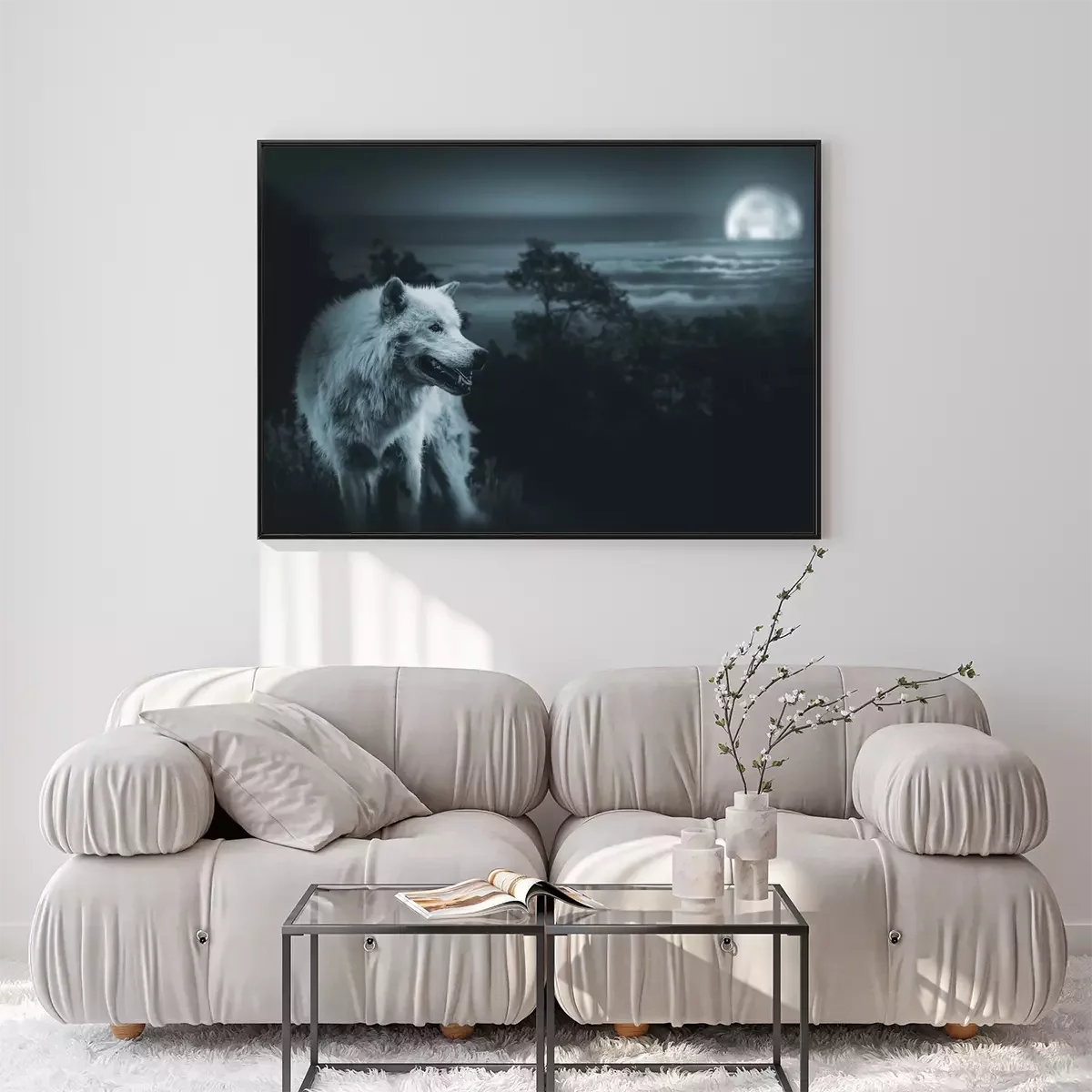 Poster: Witte wolf met de maan
