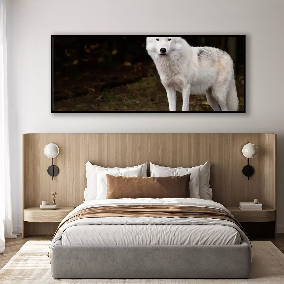 Poster: Witte wolf op de achtergrond van het bos
